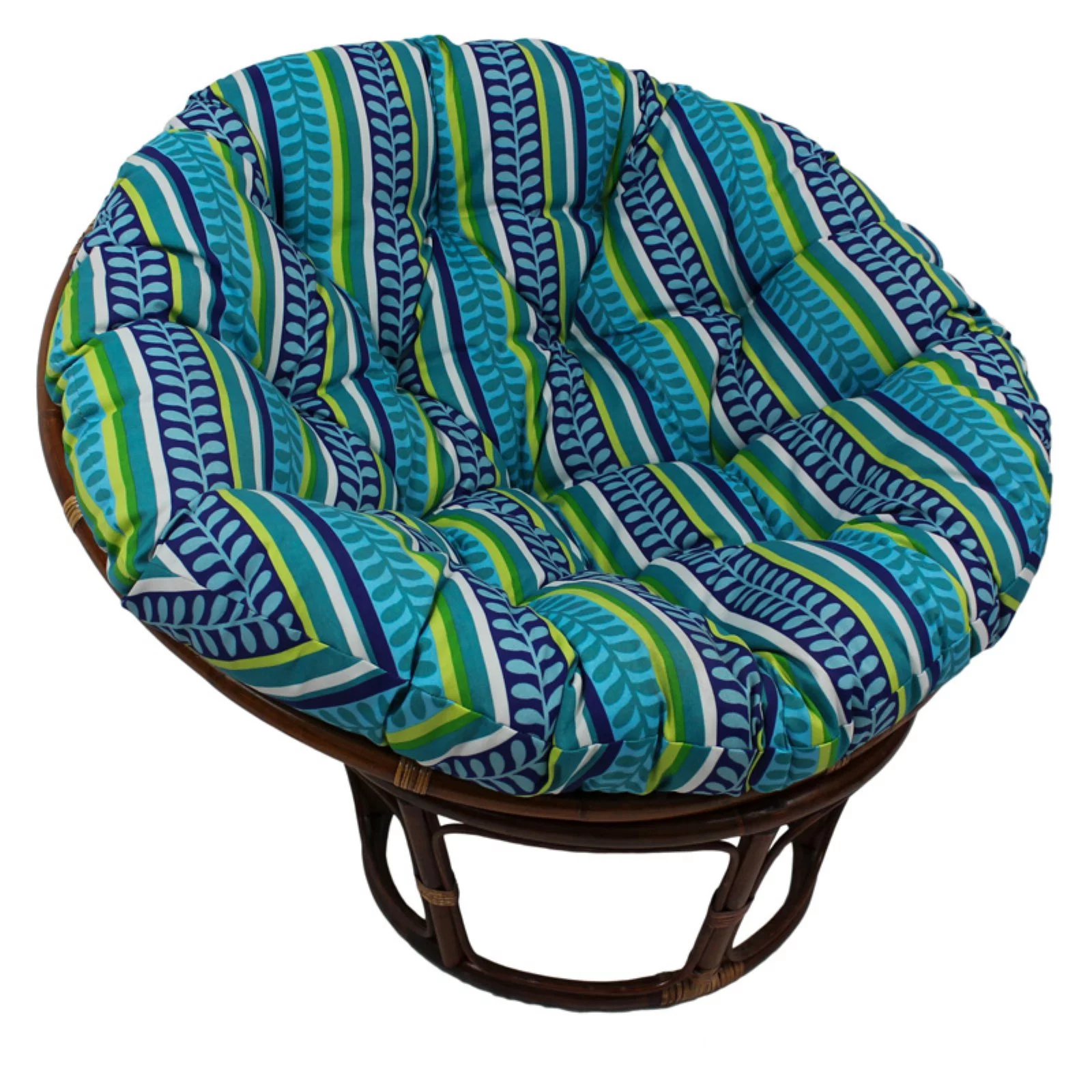 Blazing Needles 52 in. Patterned Outdoor Spun Polyester Papasan Cushion, Pike Azure