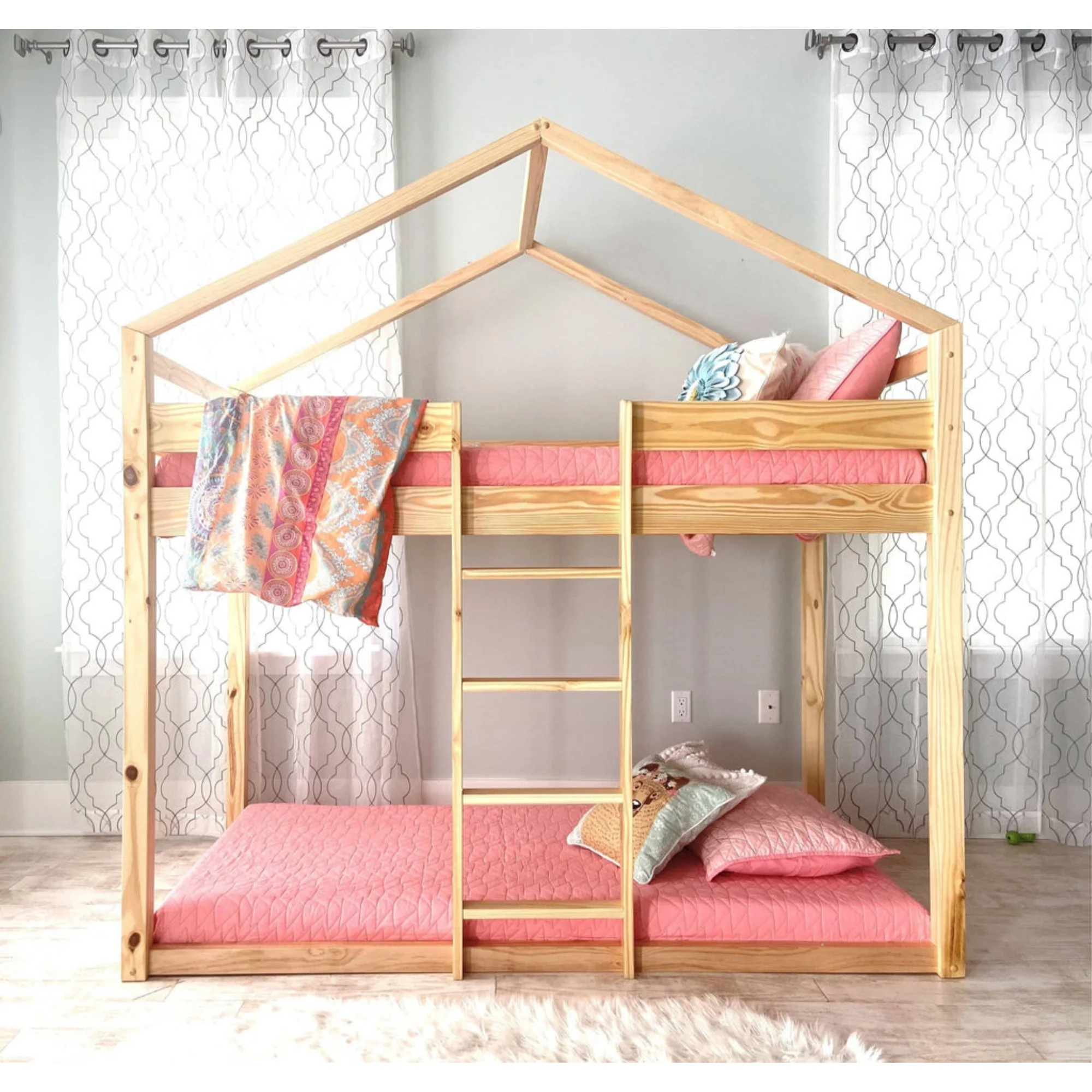 Cottage Kids Furniture Kids Bunk Bed with Slide and Bottom Guard Rail