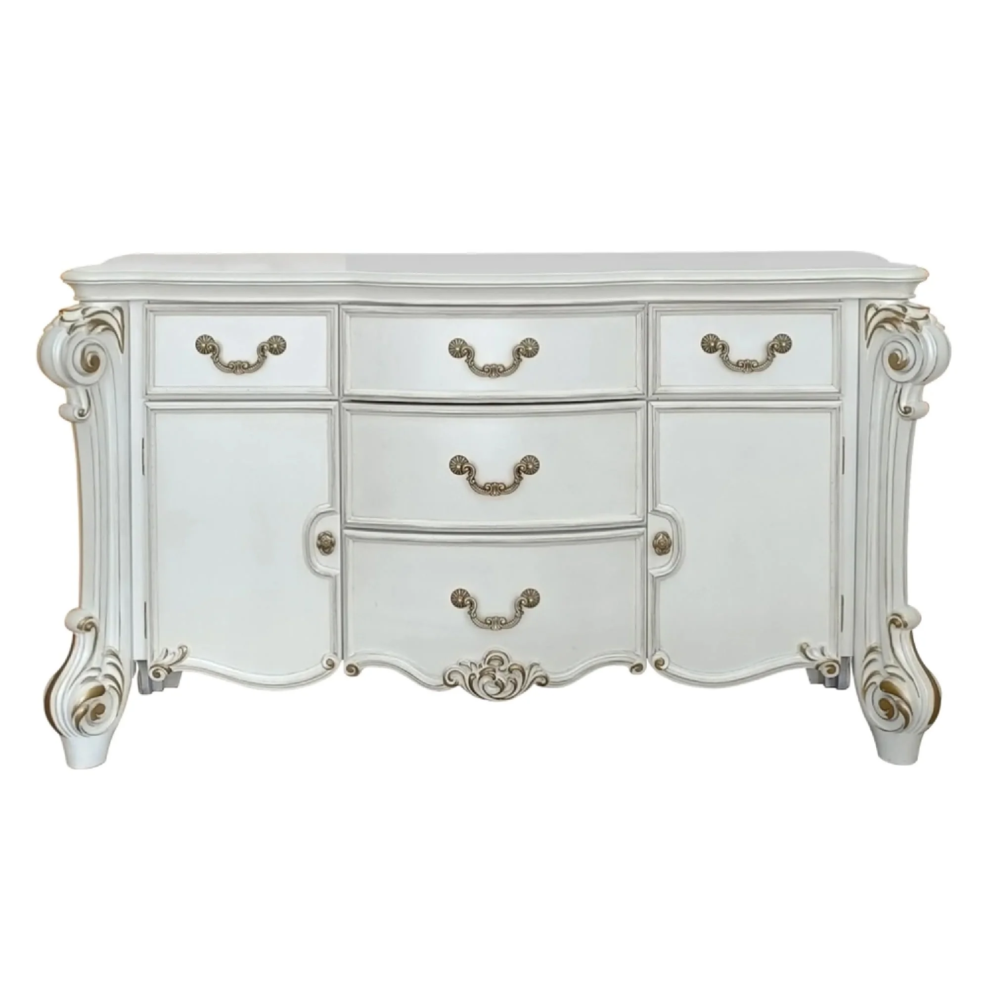 Jess 71 Inch Classic Wood Dresser 5 Drawers Metal Drop Handles White