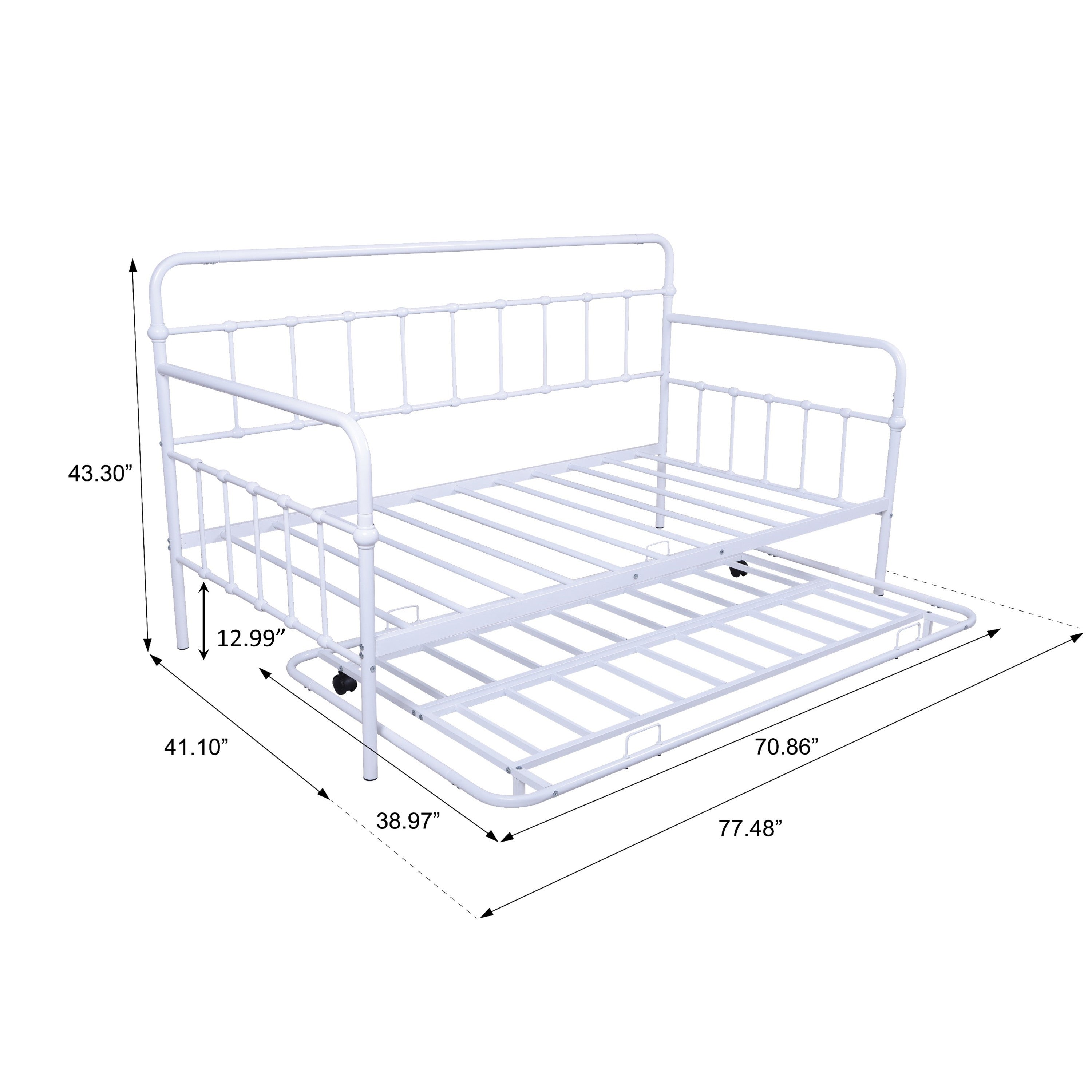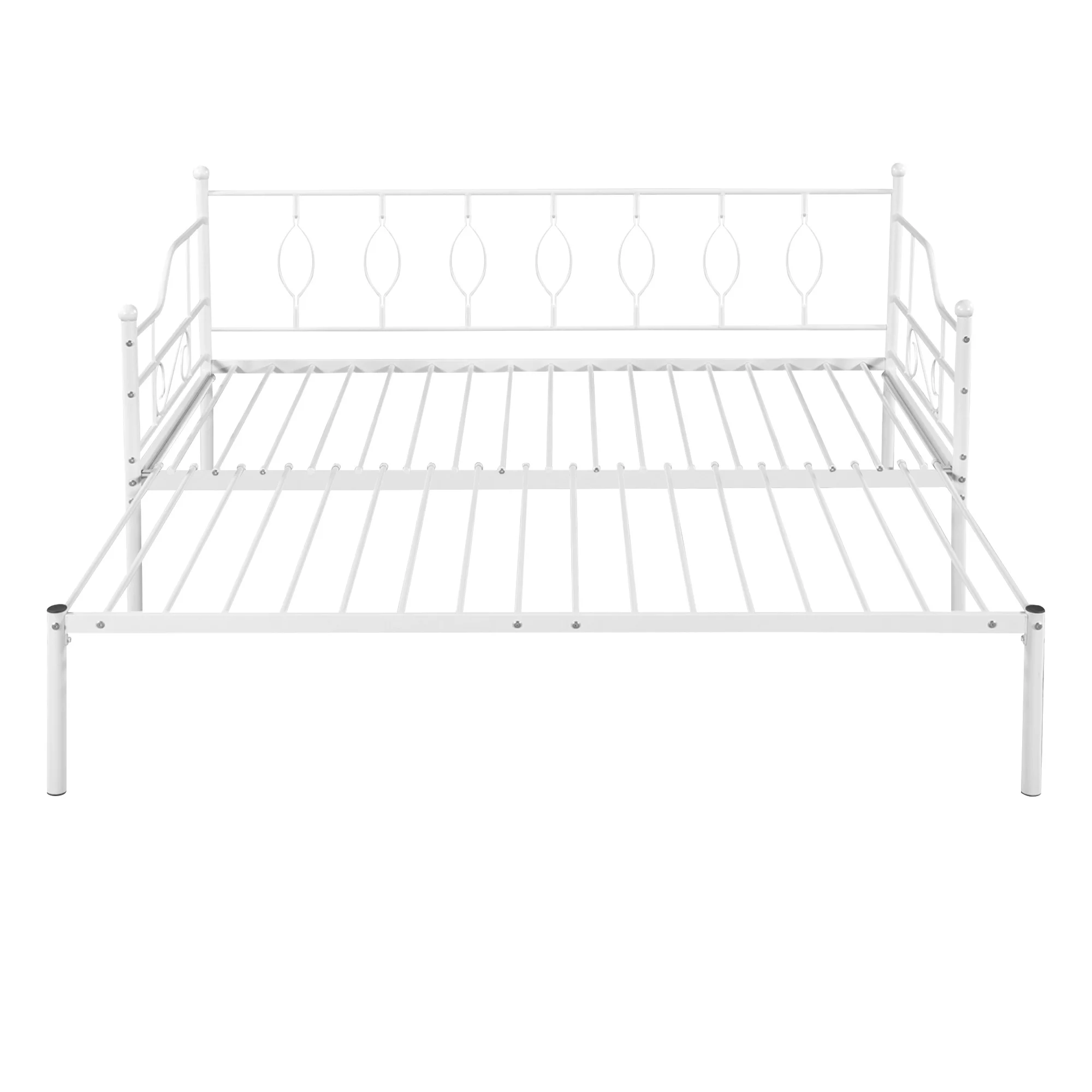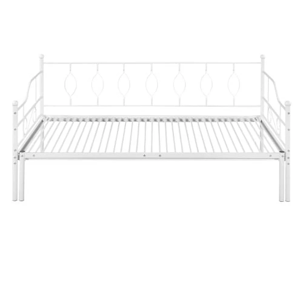 Twin Size Metal Daybed with Trundle, Daybed with Slat No Box required White