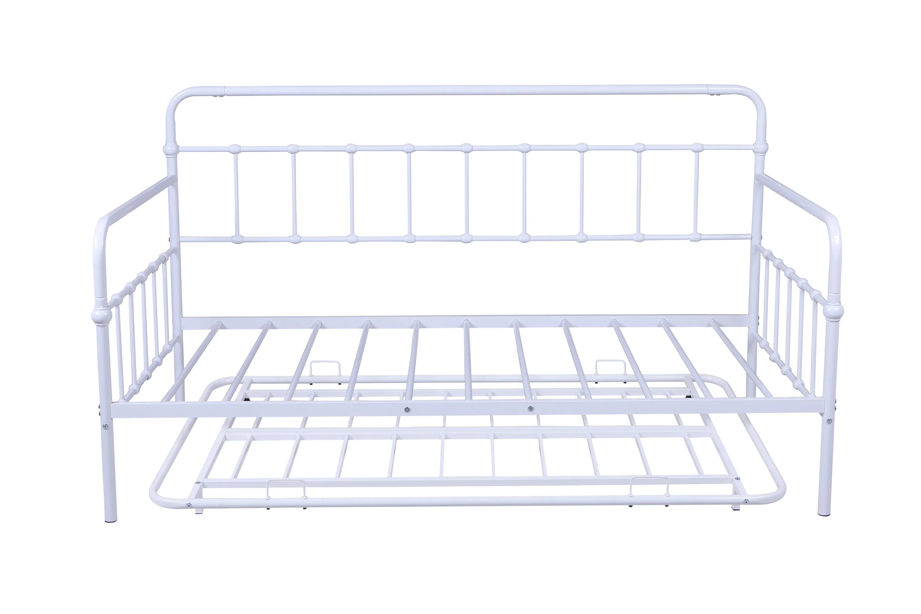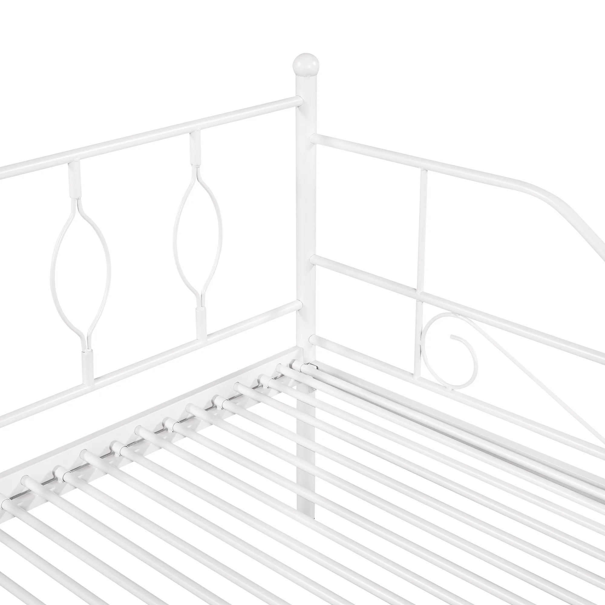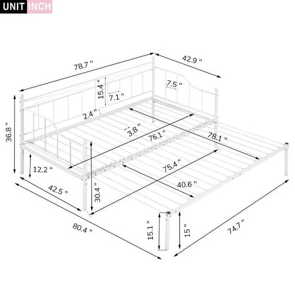 Twin Size Metal Daybed with Trundle, Daybed with Slat No Box required White