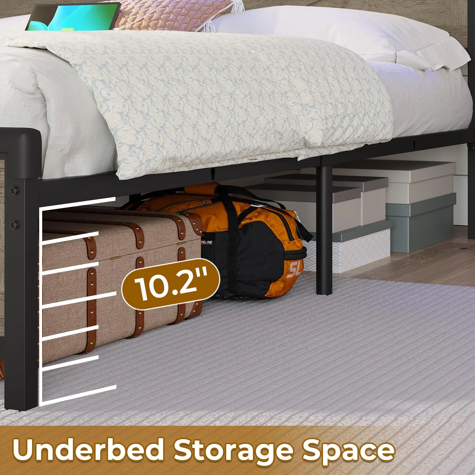 LANTRO JS Twin Size Metal Daybed with Trundle, Daybed with Slat No Box required White