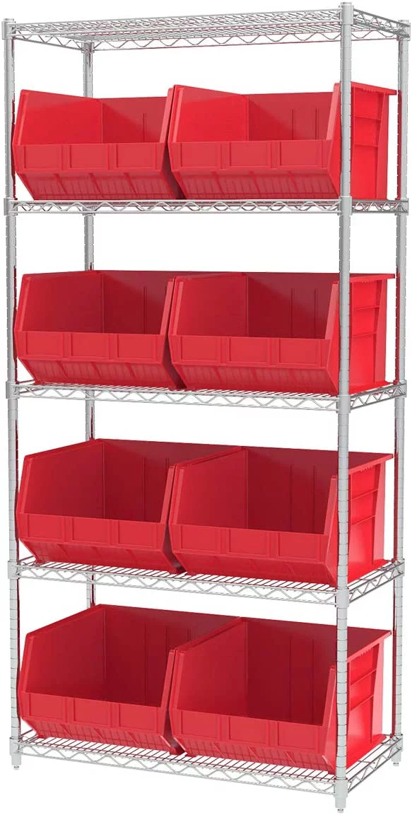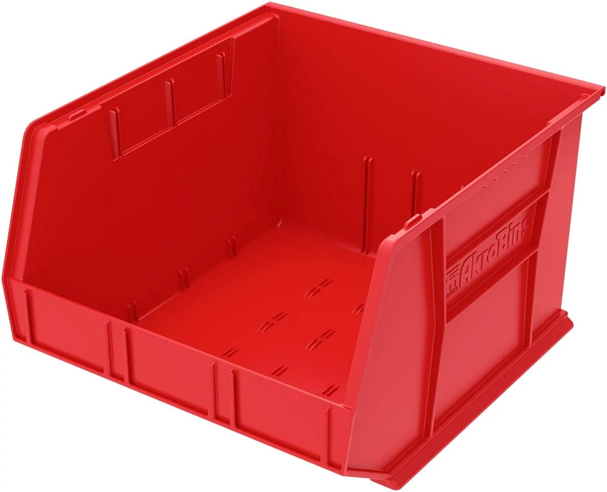 Akro-Mils Stackable Storage Bins, AkroBins 30270 Stacking Organizer, 18"x16"x11", Red, 3-Pack