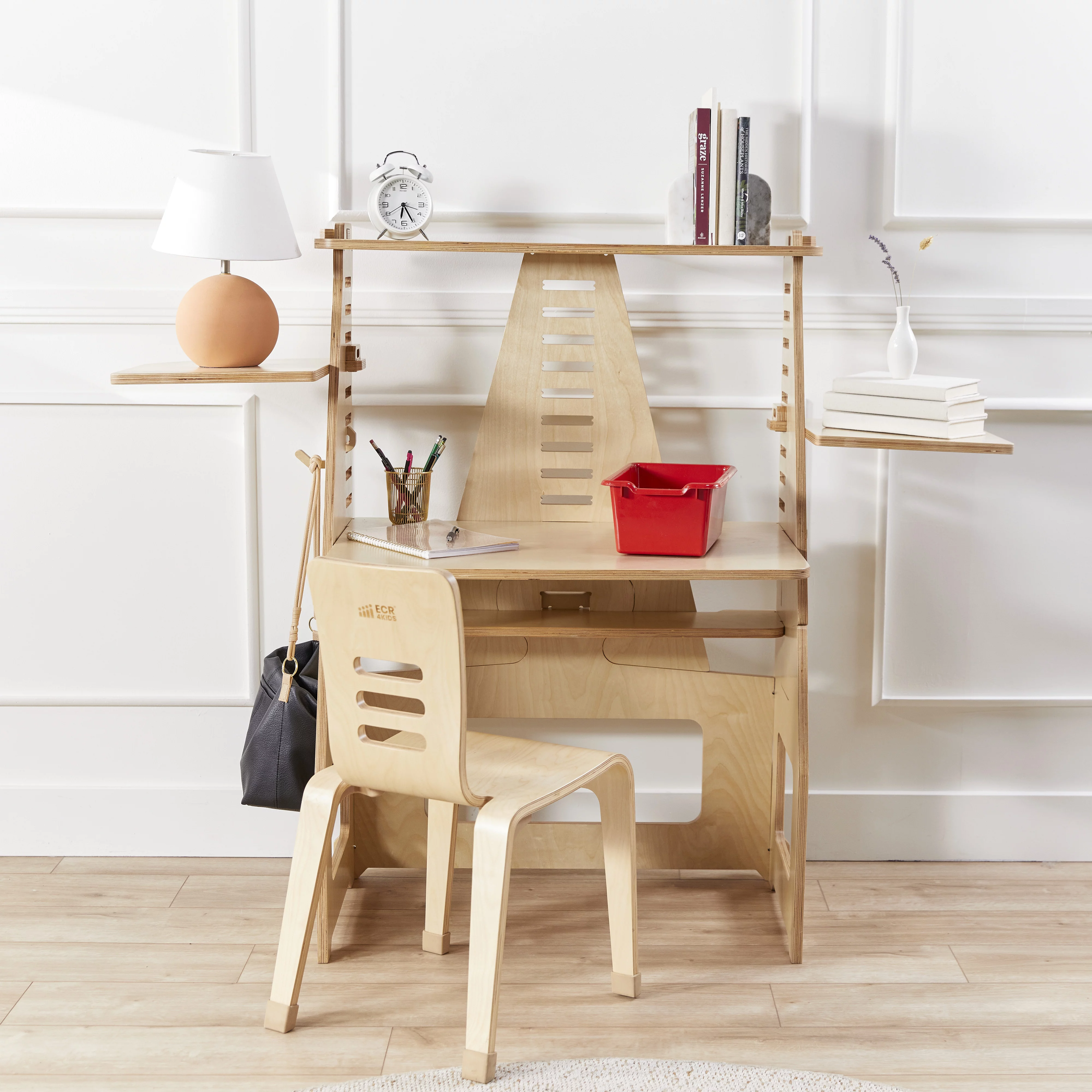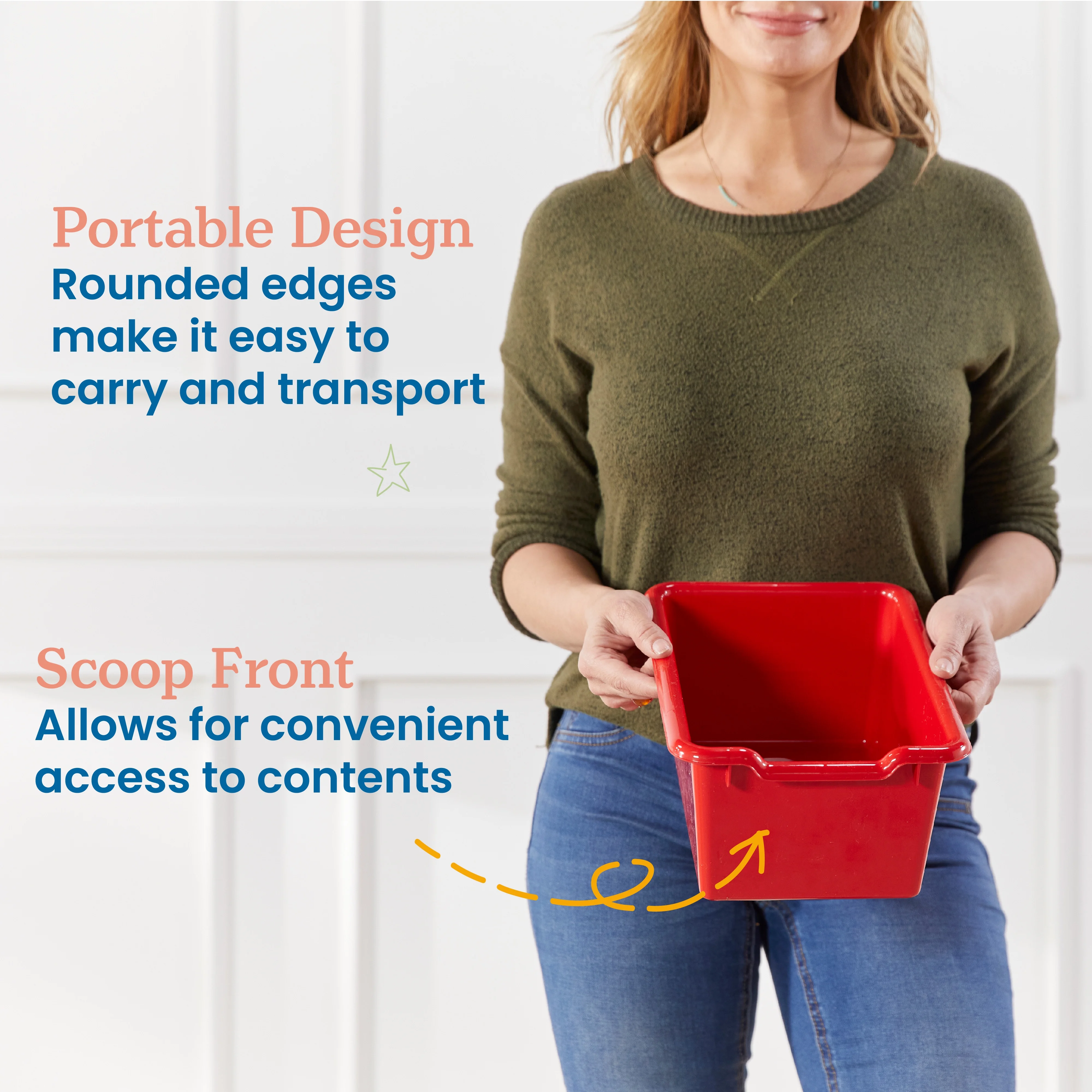ECR4Kids Scoop Front Storage Bins, Multipurpose Organization, Red, 25-Piece