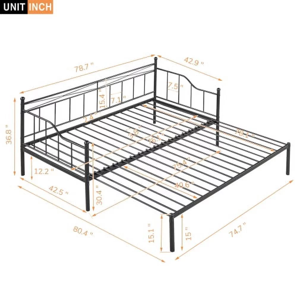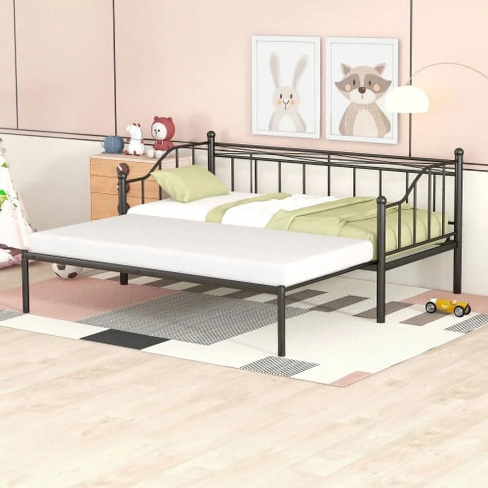 Twin Size Metal Daybed With Trundle, Daybed With Slat No Box Required Black