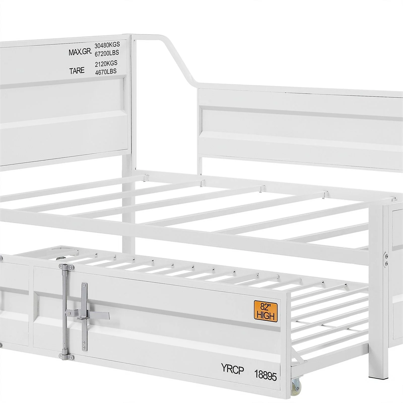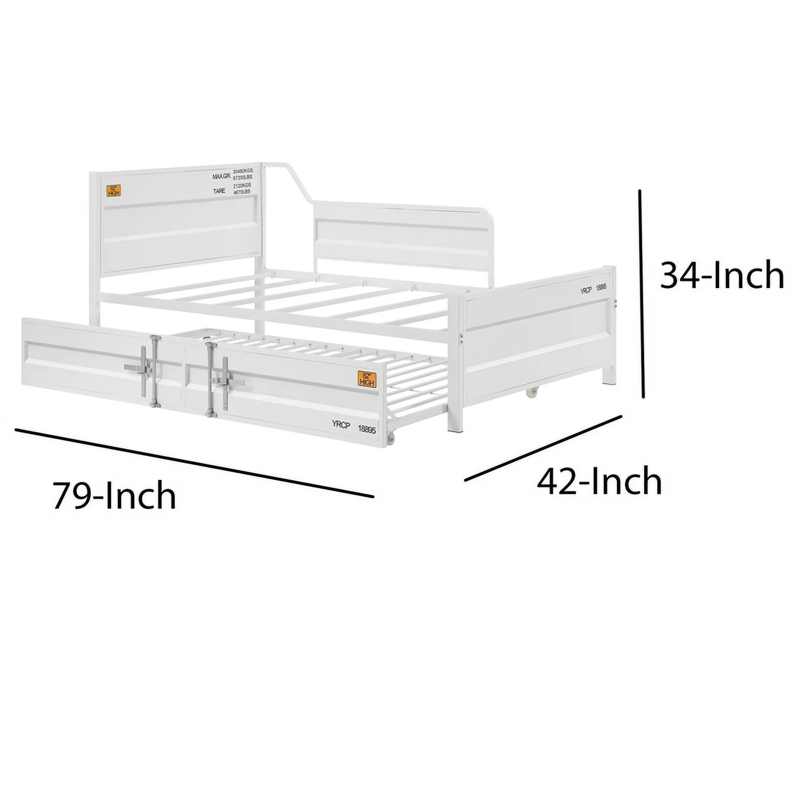 Benzara Metal Twin Size Daybed and Trundle with Recessed Panels in White