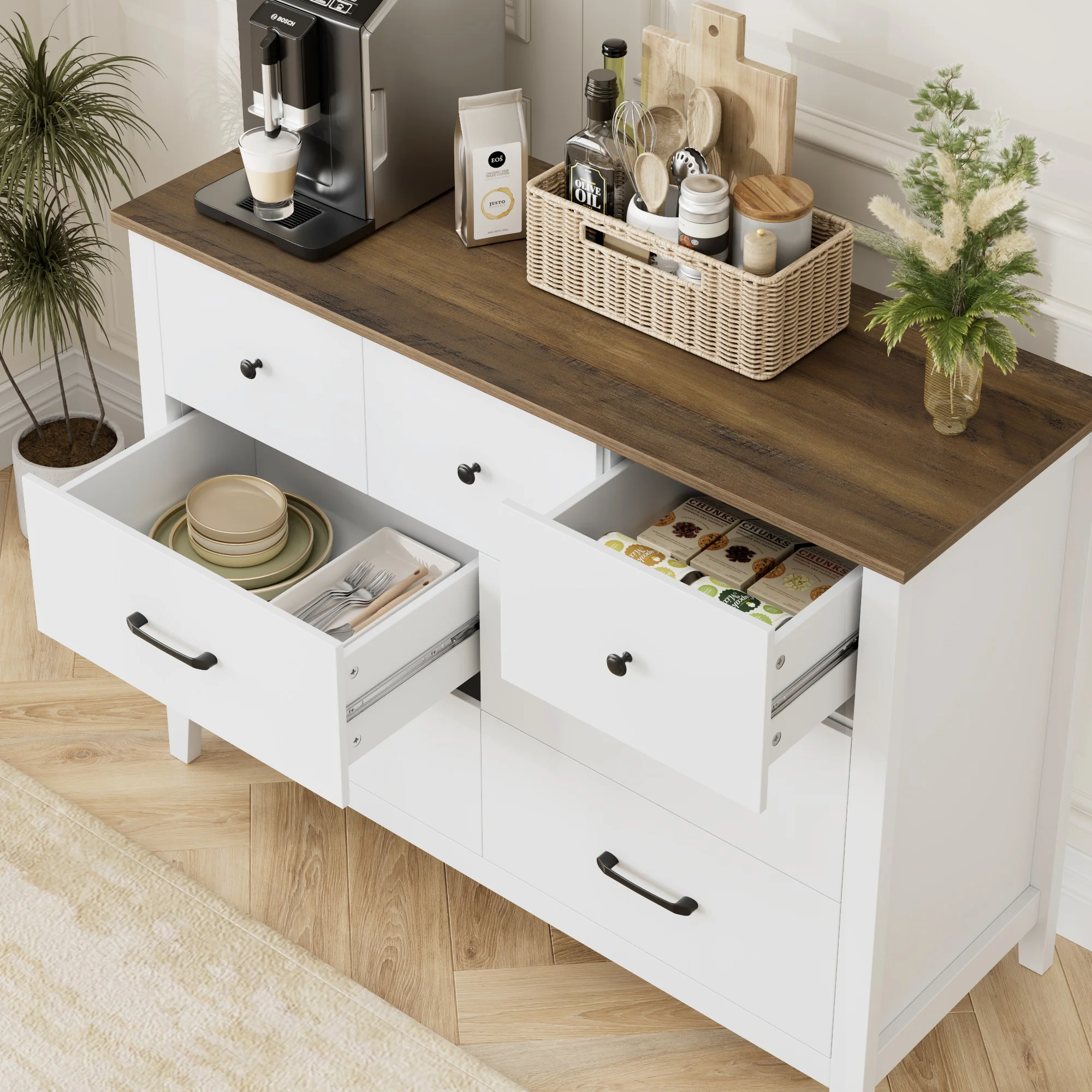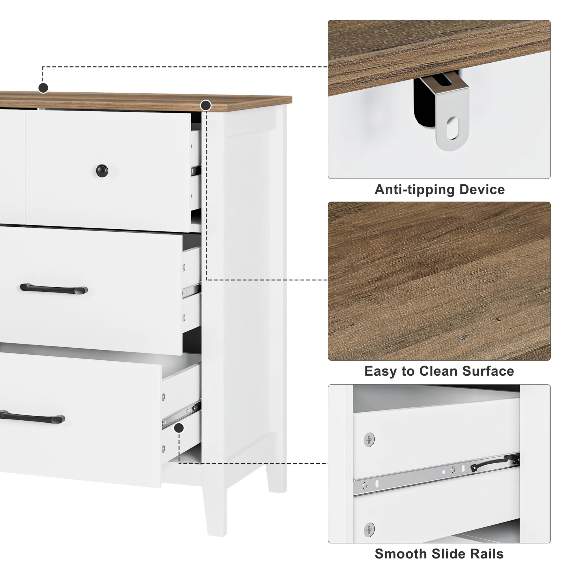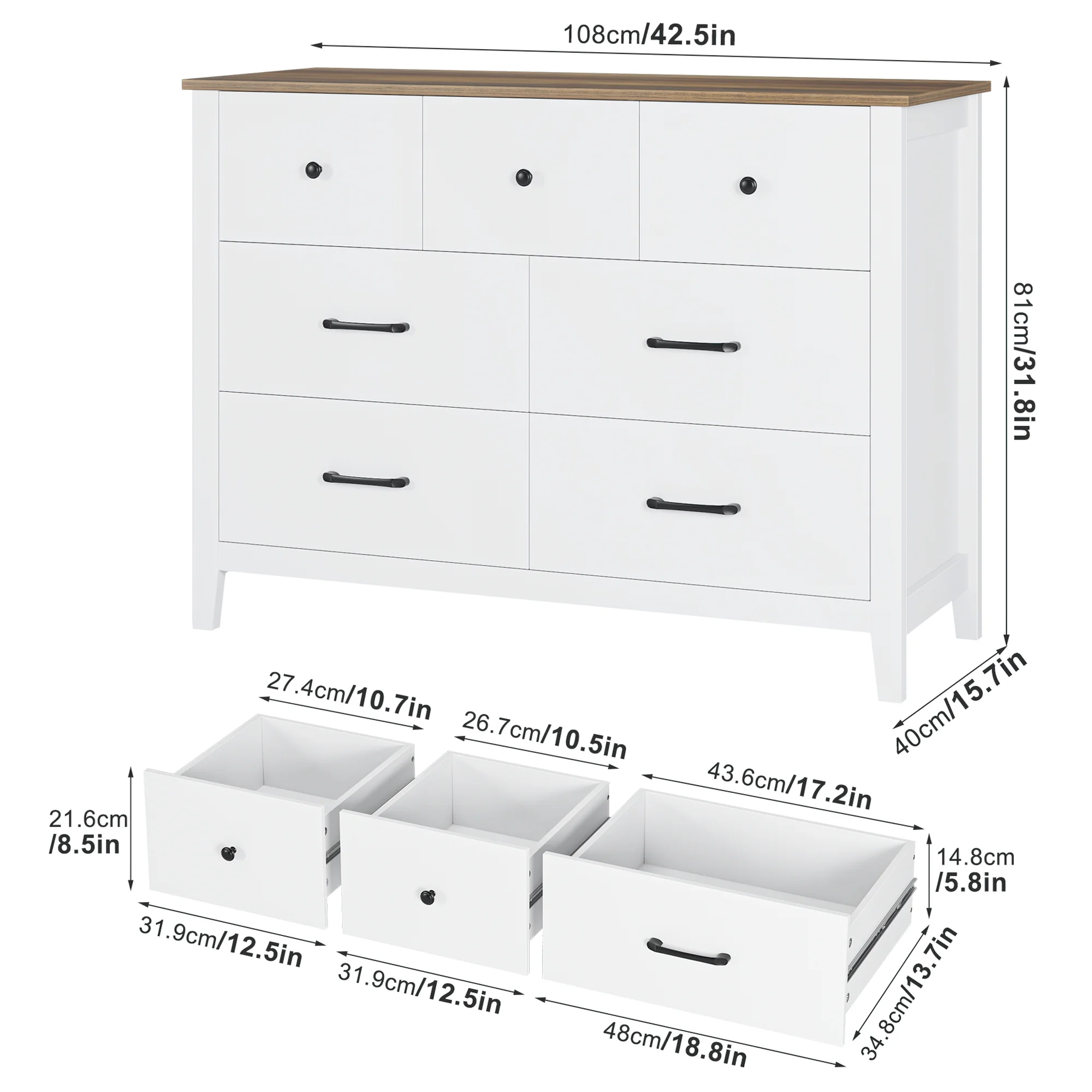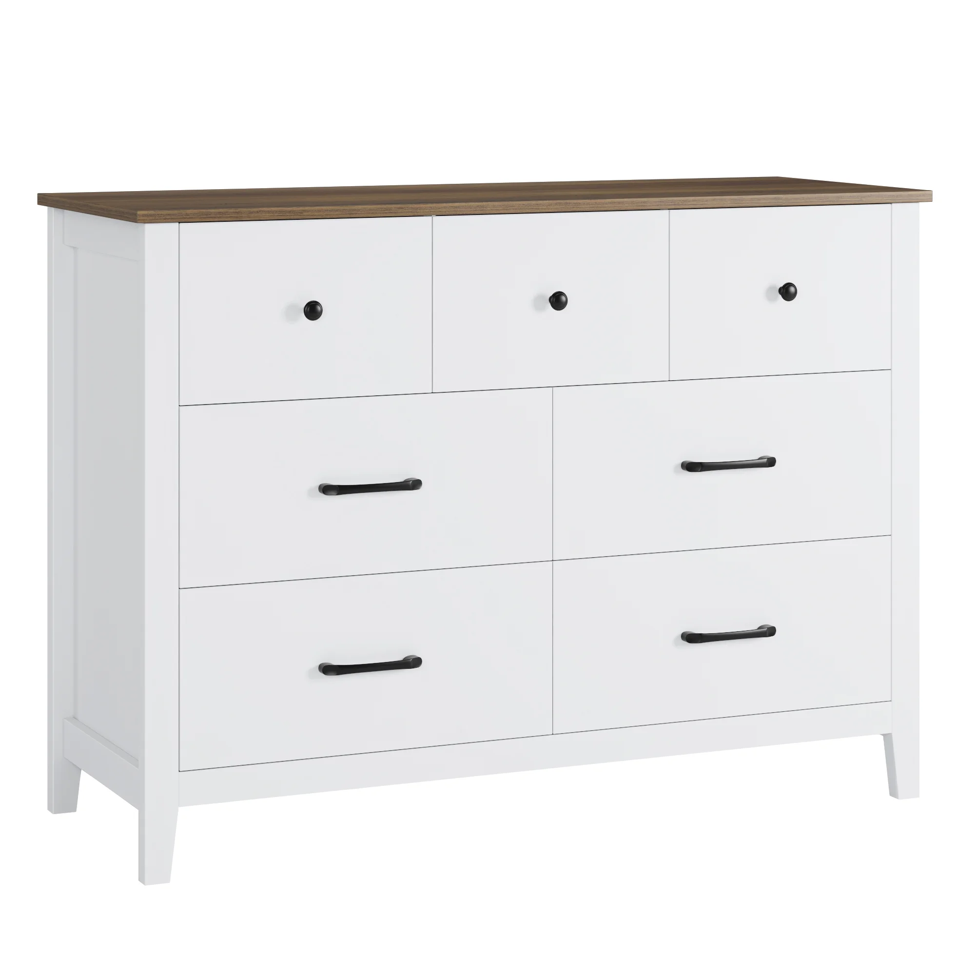 Homfa 7 Drawer Dresser for Bedroom, Modern Wood Storage Cabinet for Living Room Hallway, White