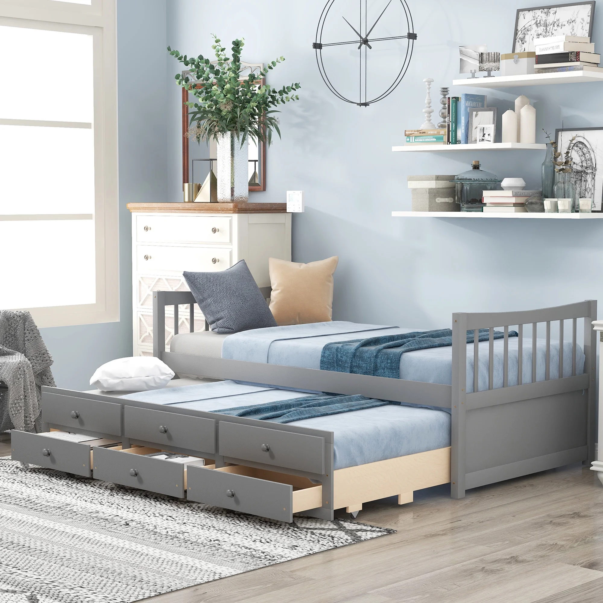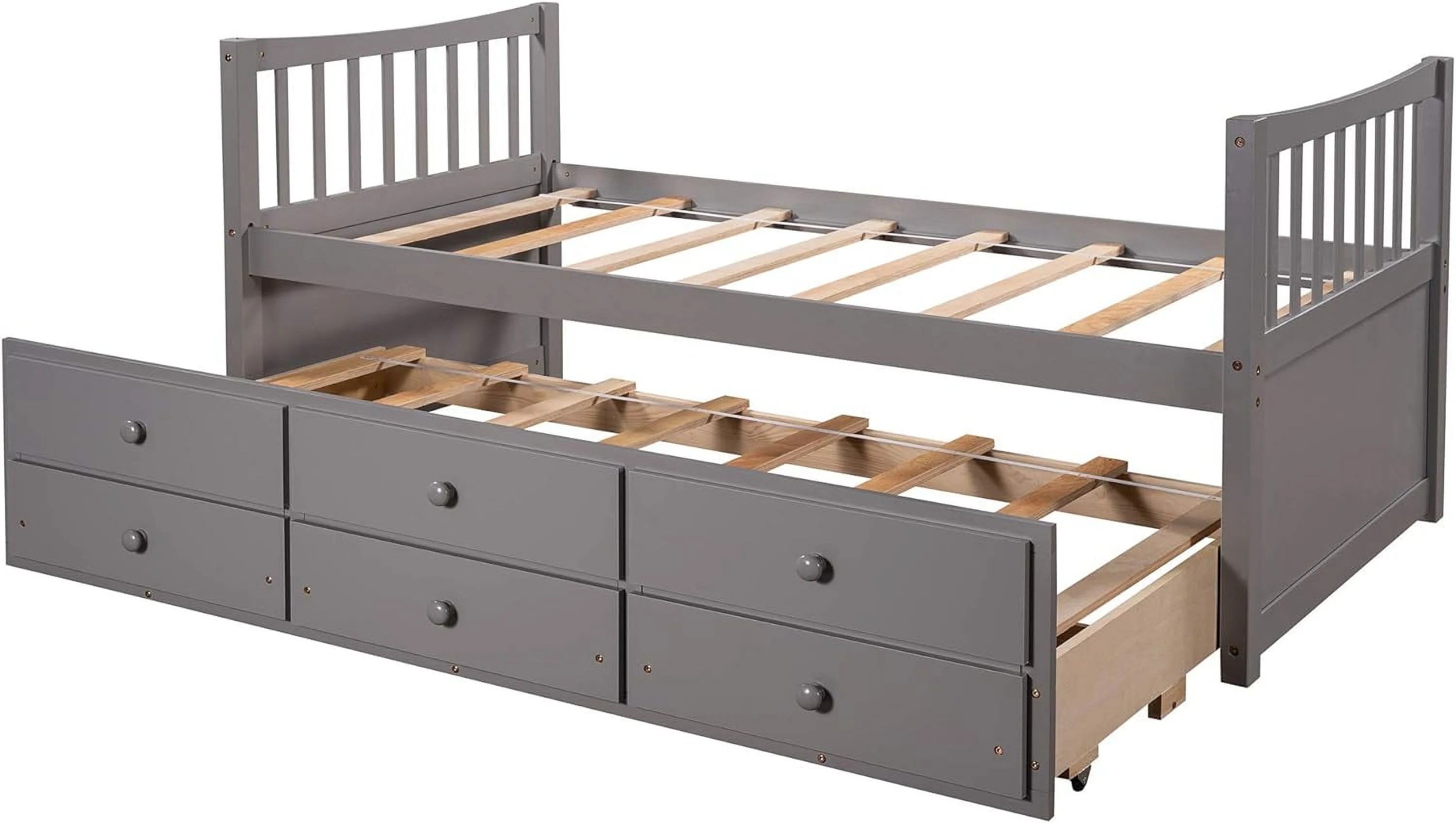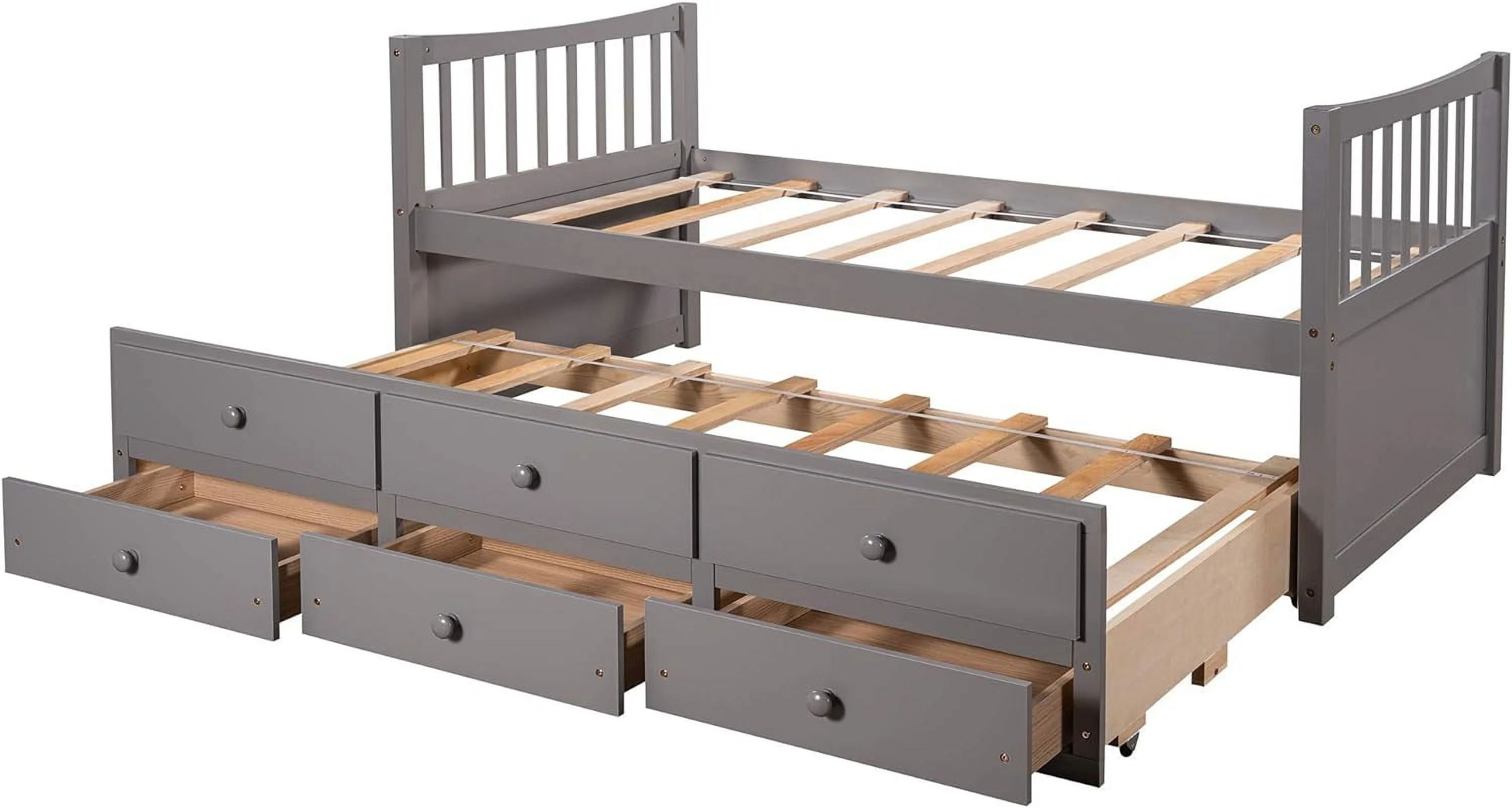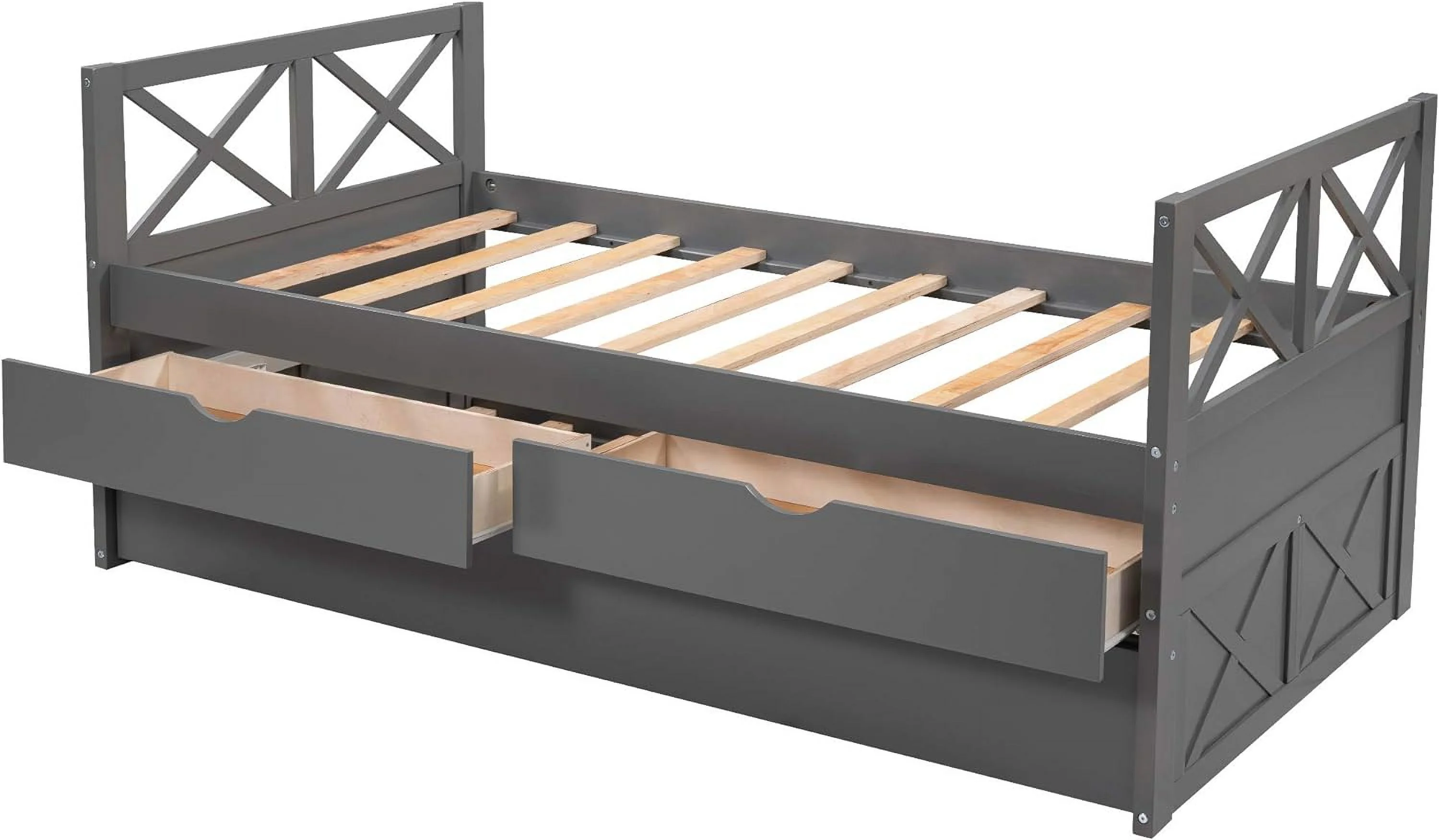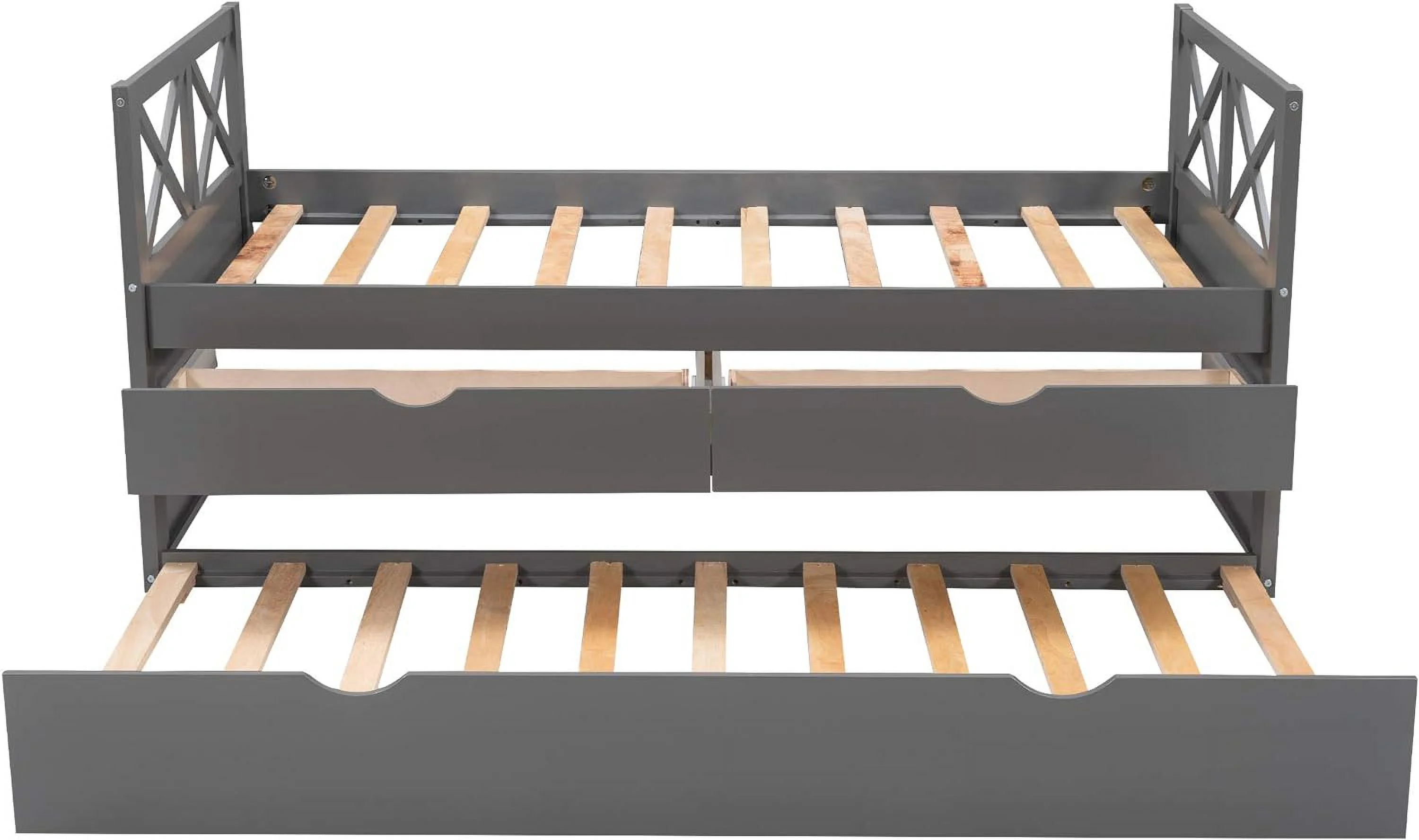 Kuurfuurdo Daybed with Trundle and Storage Drawers, Twin Size Solid Wood Platform Bed Frame,Gray