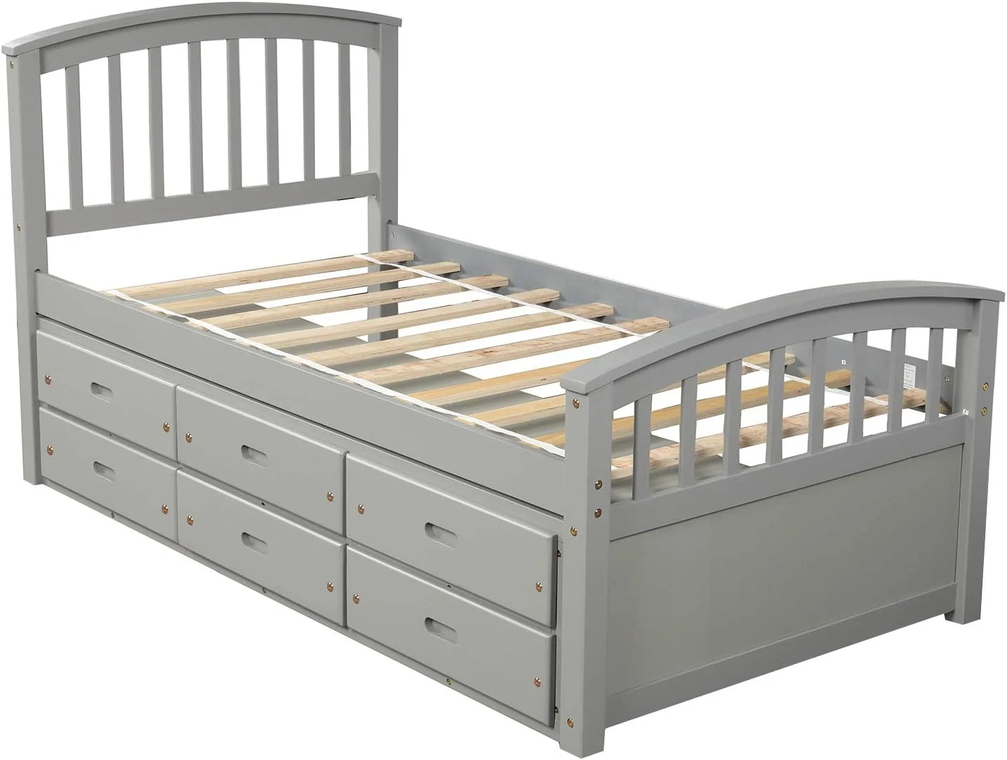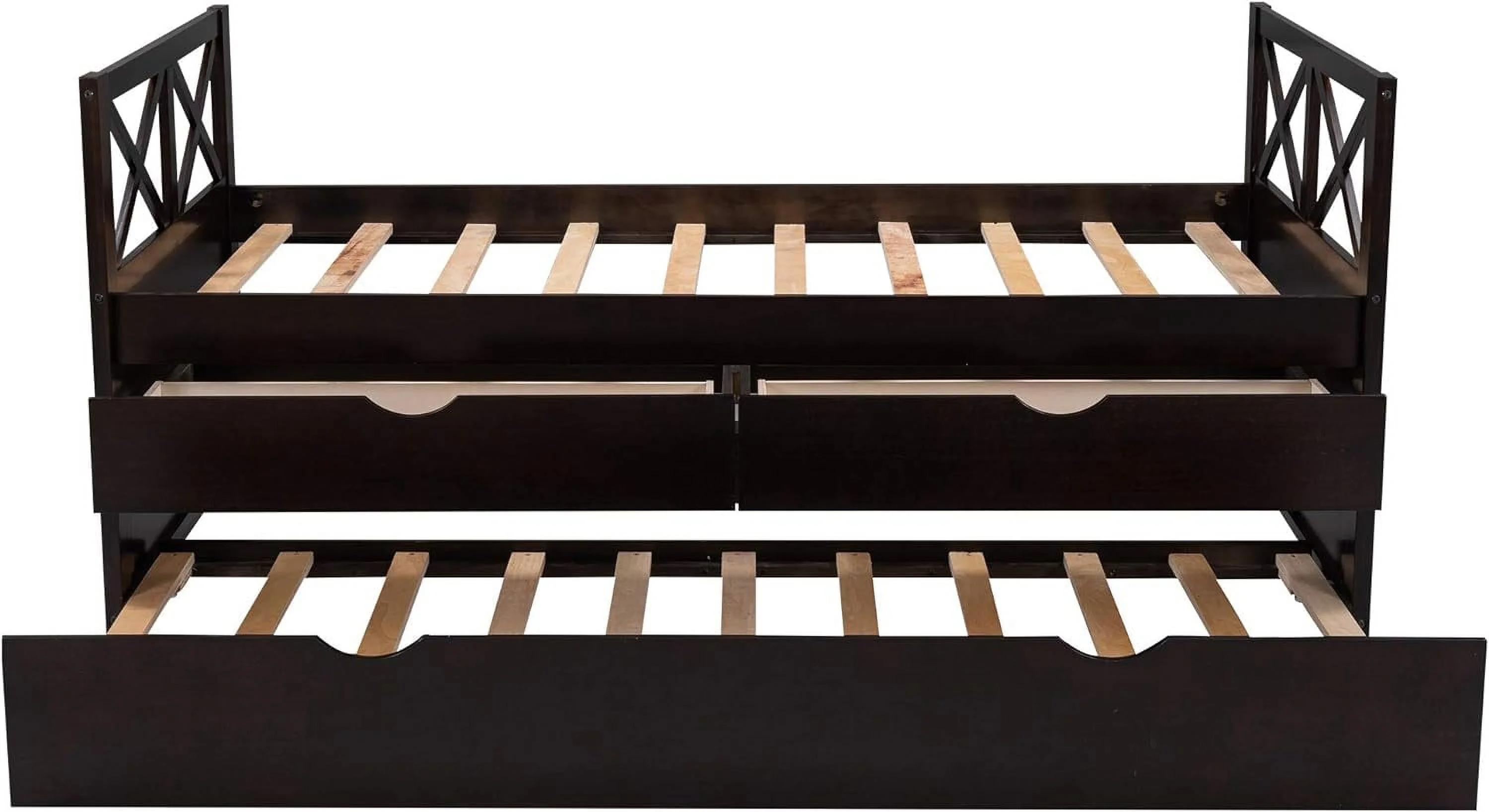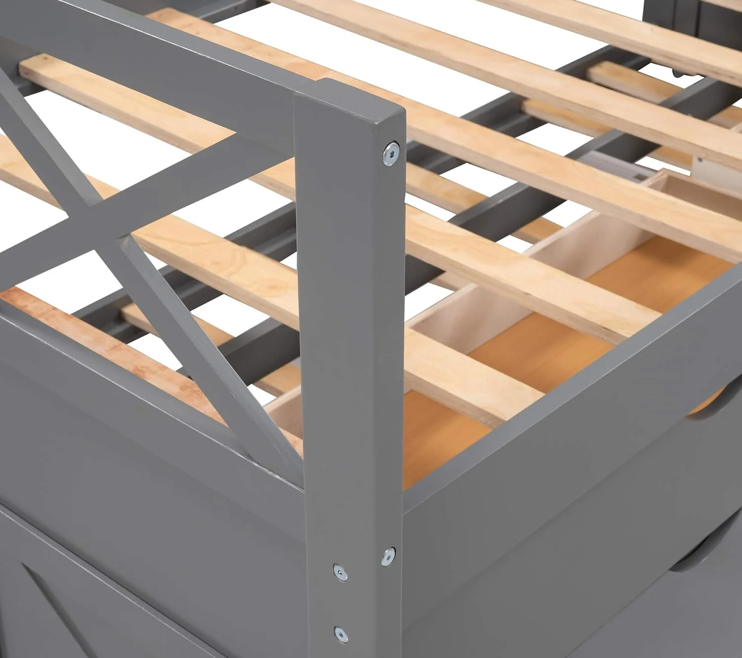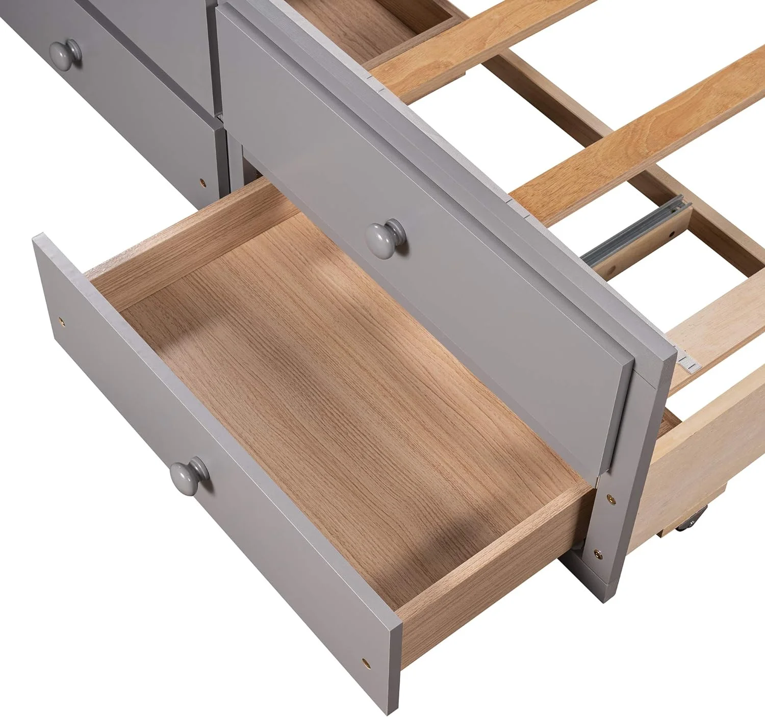 Kuurfuurdo Daybed with Trundle and Storage Drawers, Twin Size Solid Wood Platform Bed Frame,Gray