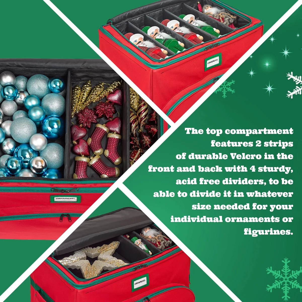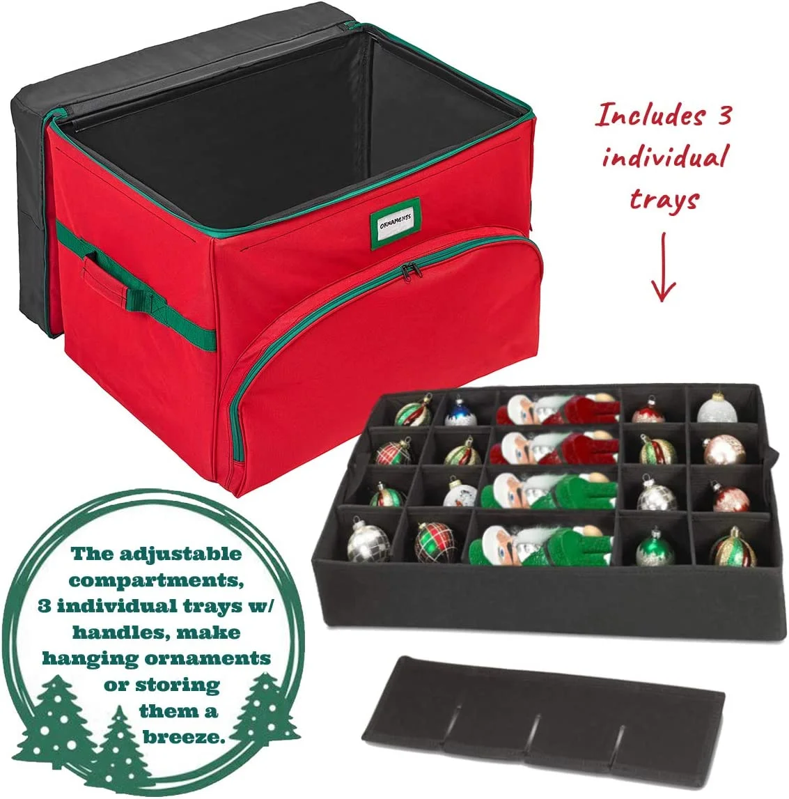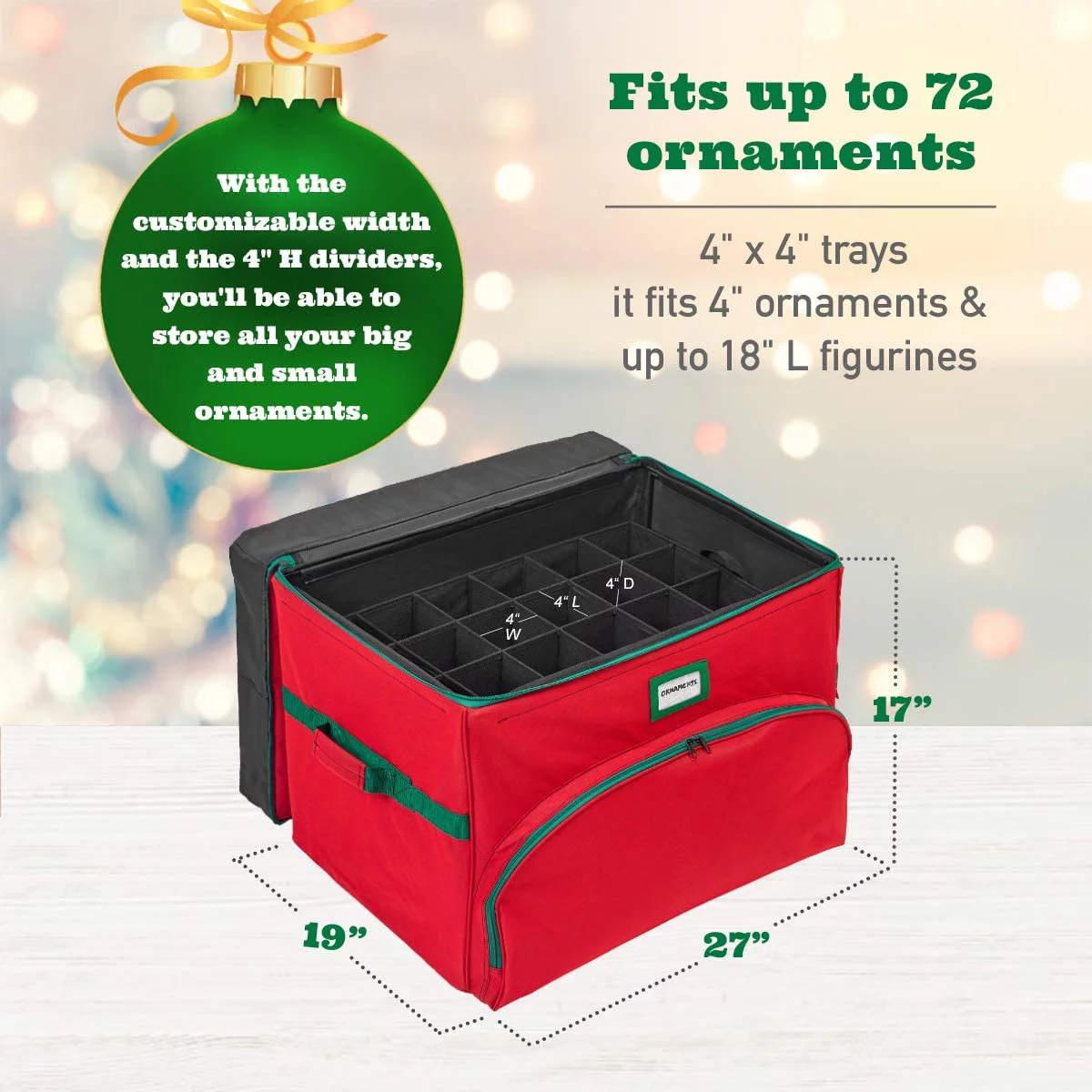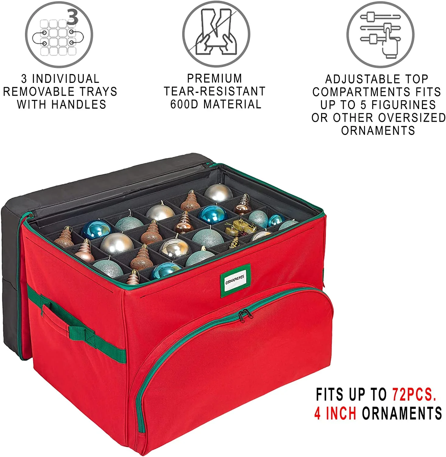 Christmas Ornament Storage Box - Holds Up to 72 4"-Ornaments, 600D Material