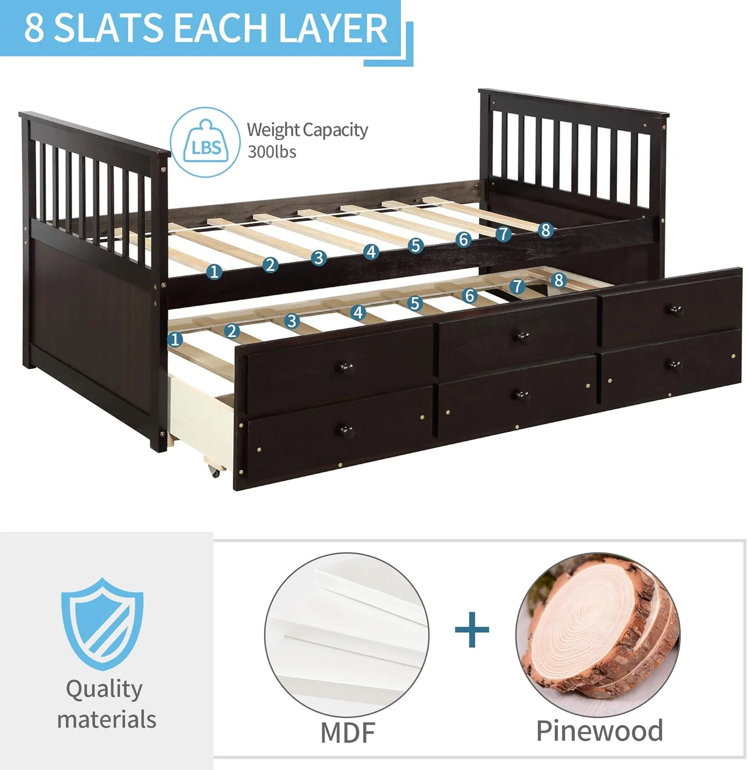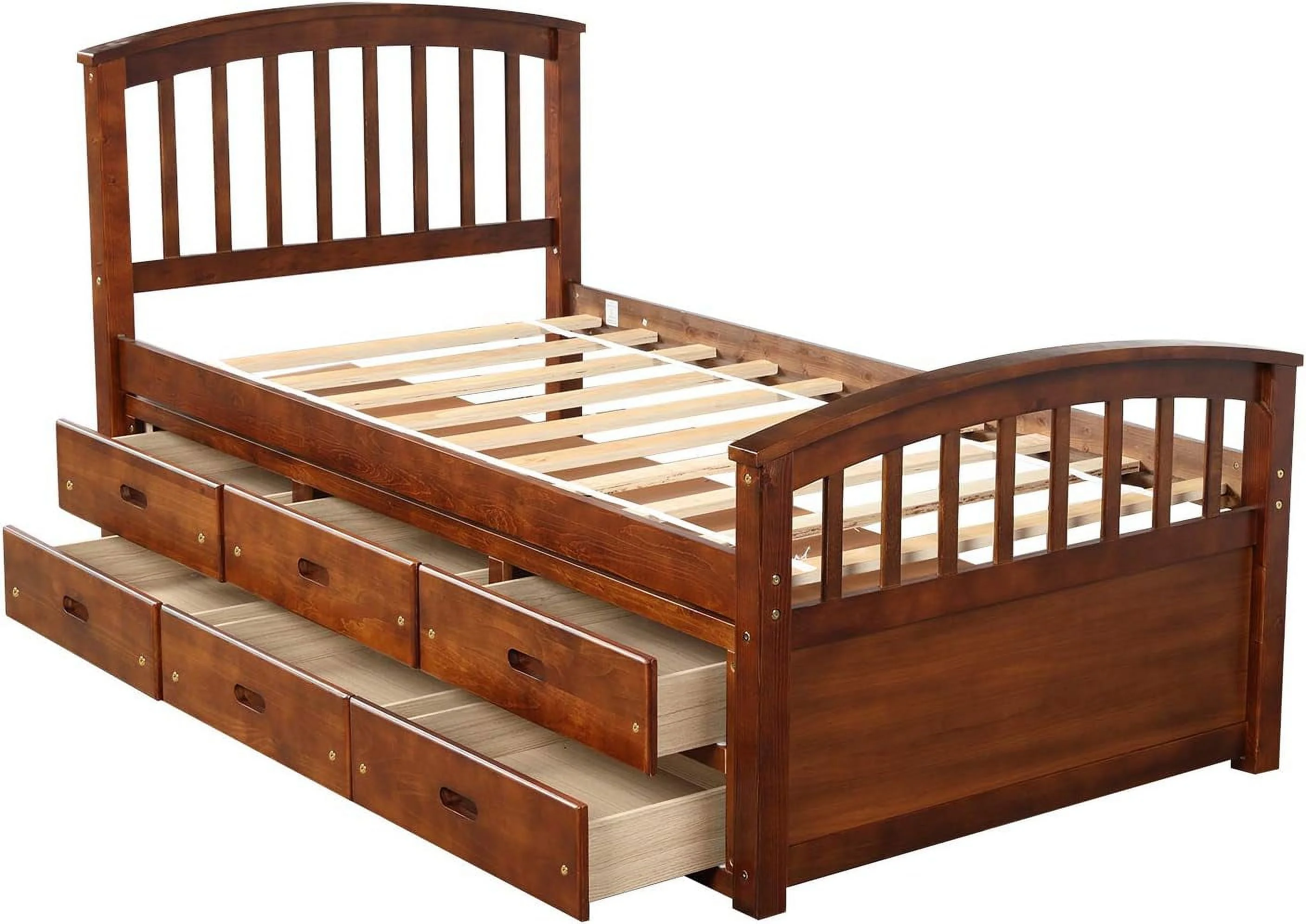 QCAI Wood Captain's Platform Storage Bed with 3 Drawers,Classic Bed Frame No Box Spring Needed Twin, Oak
