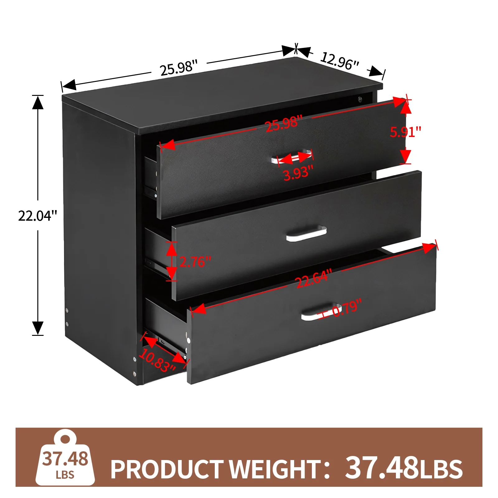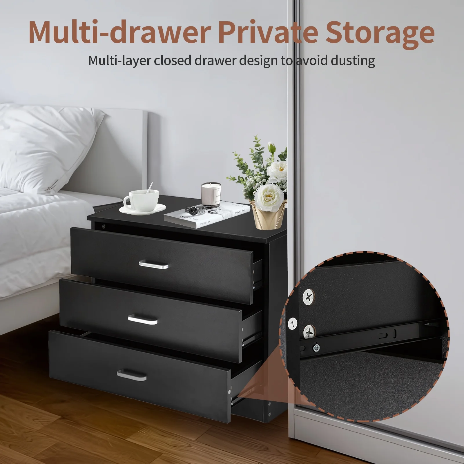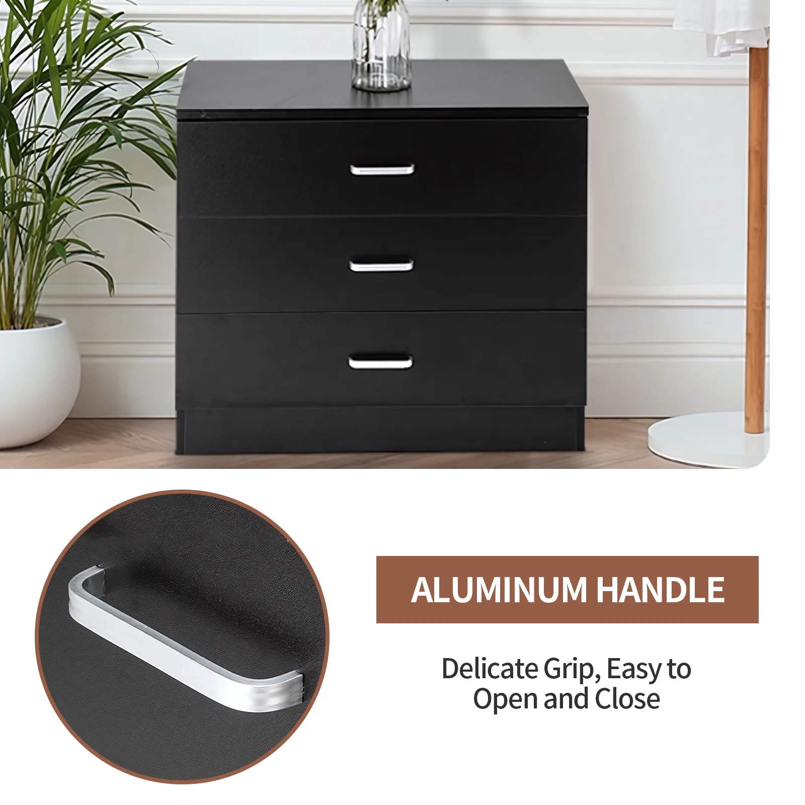 SYTHERS 3-Drawer Dresser for Bedroom, 26W×13D×22H Modern Storage Chest of Drawers, Black
