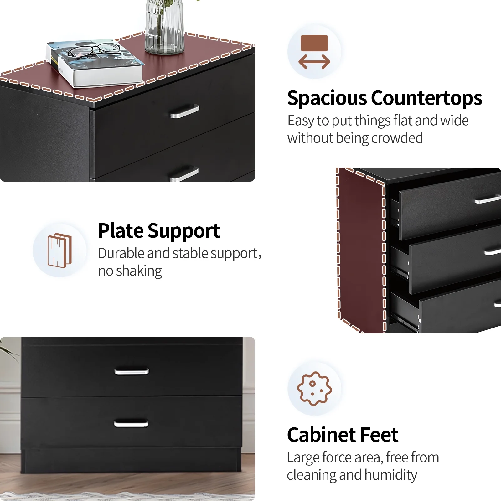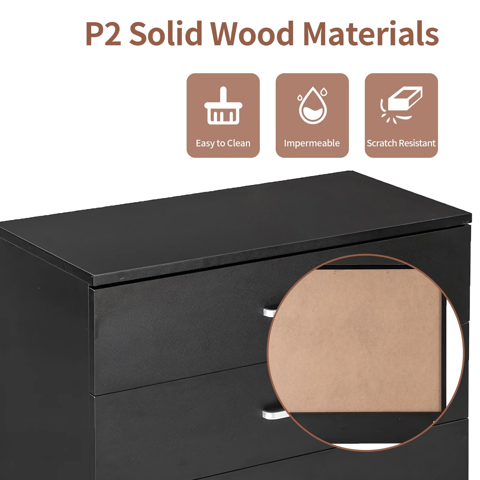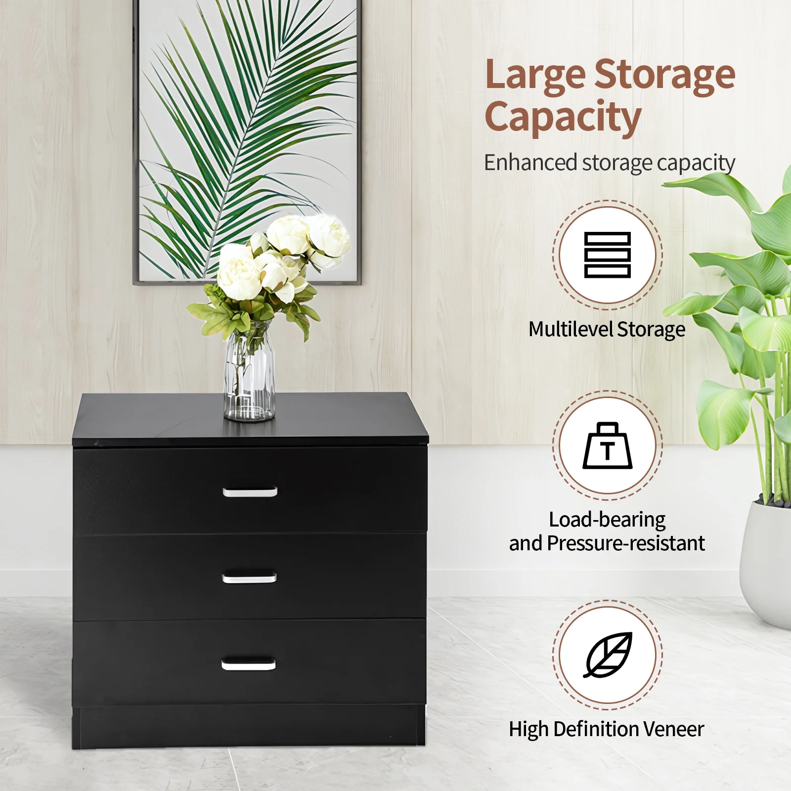 SYTHERS 3-Drawer Dresser for Bedroom, 26W×13D×22H Modern Storage Chest of Drawers, Black
