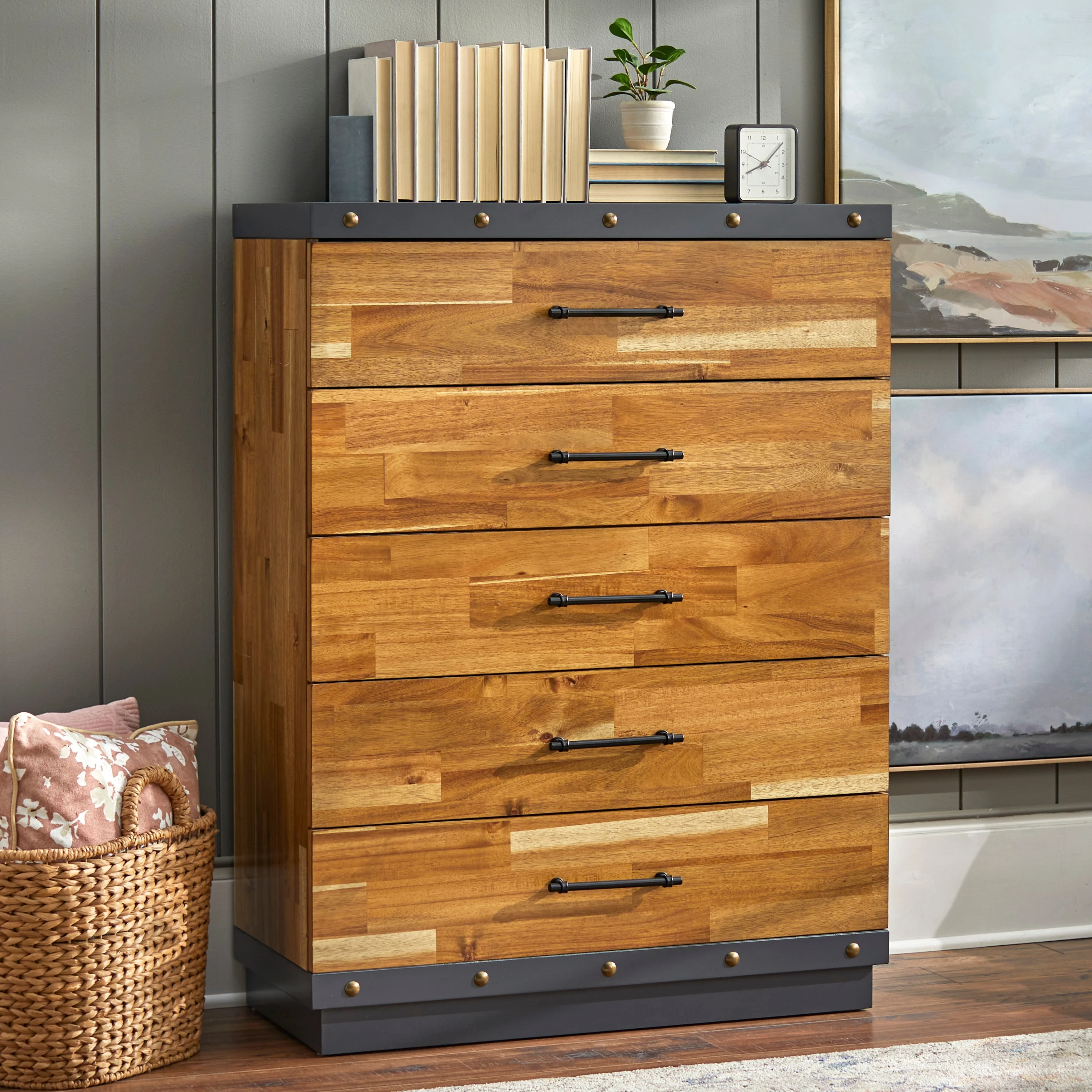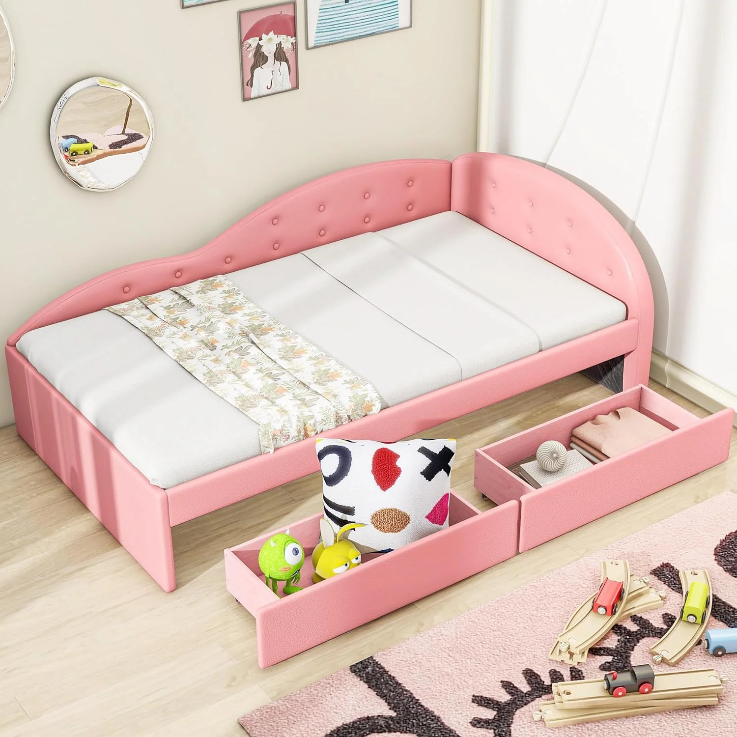 OUWI Wood Captain's Platform Storage Bed with 3 Drawers,Classic Bed Frame No Box Spring Needed Twin, Oak