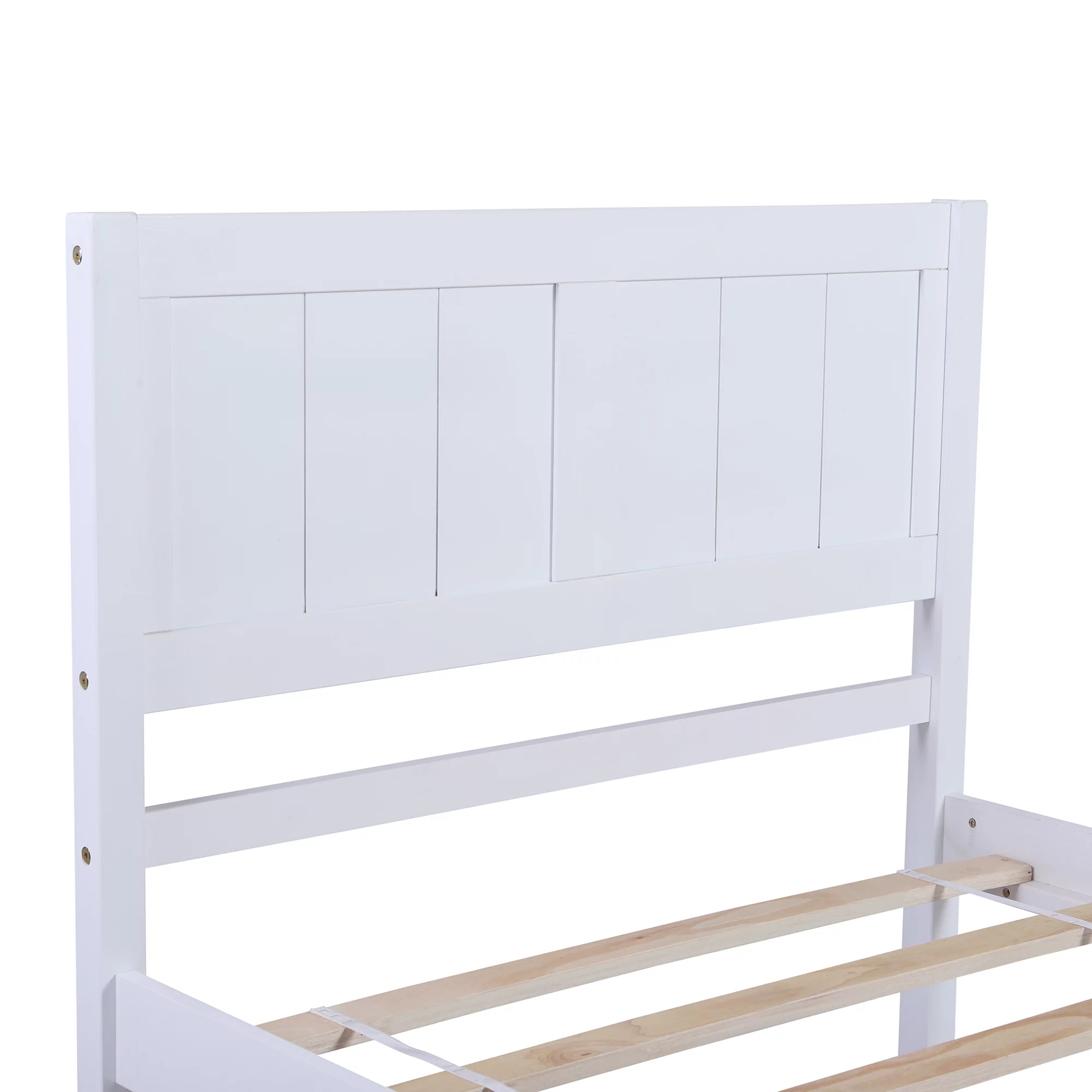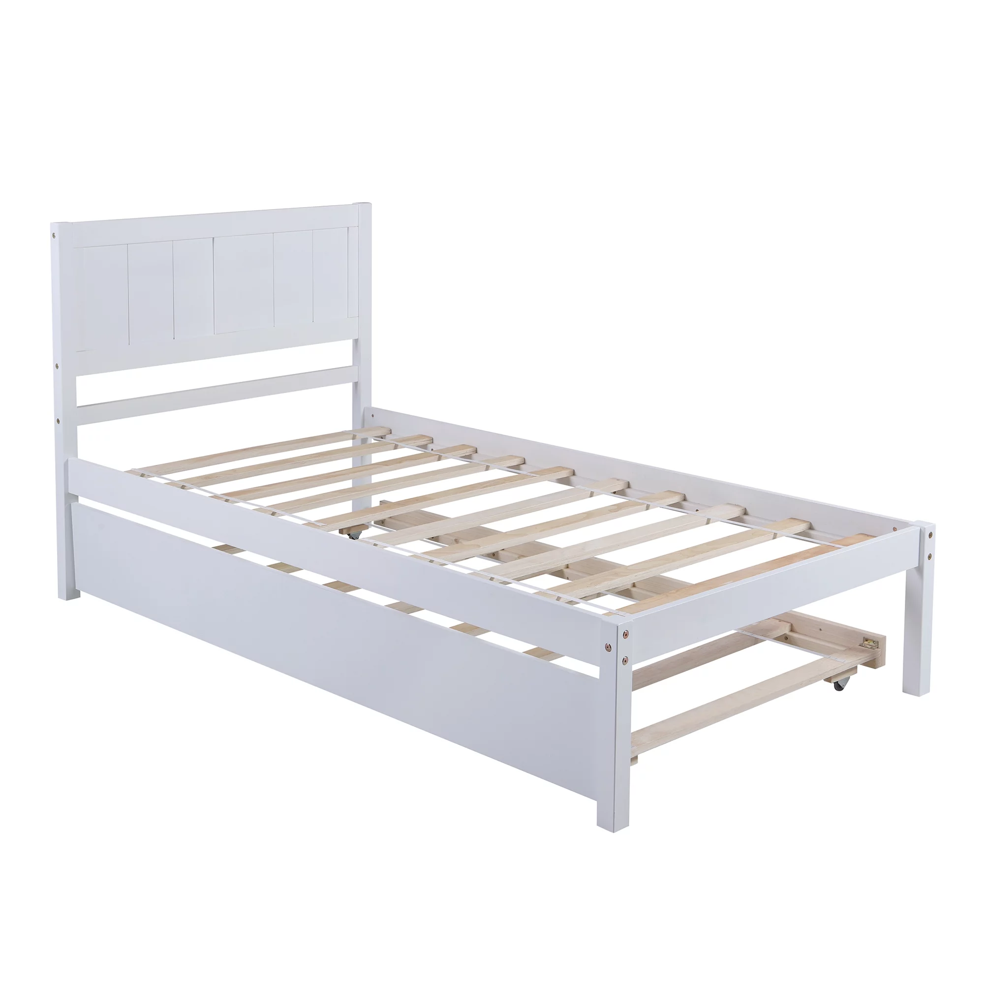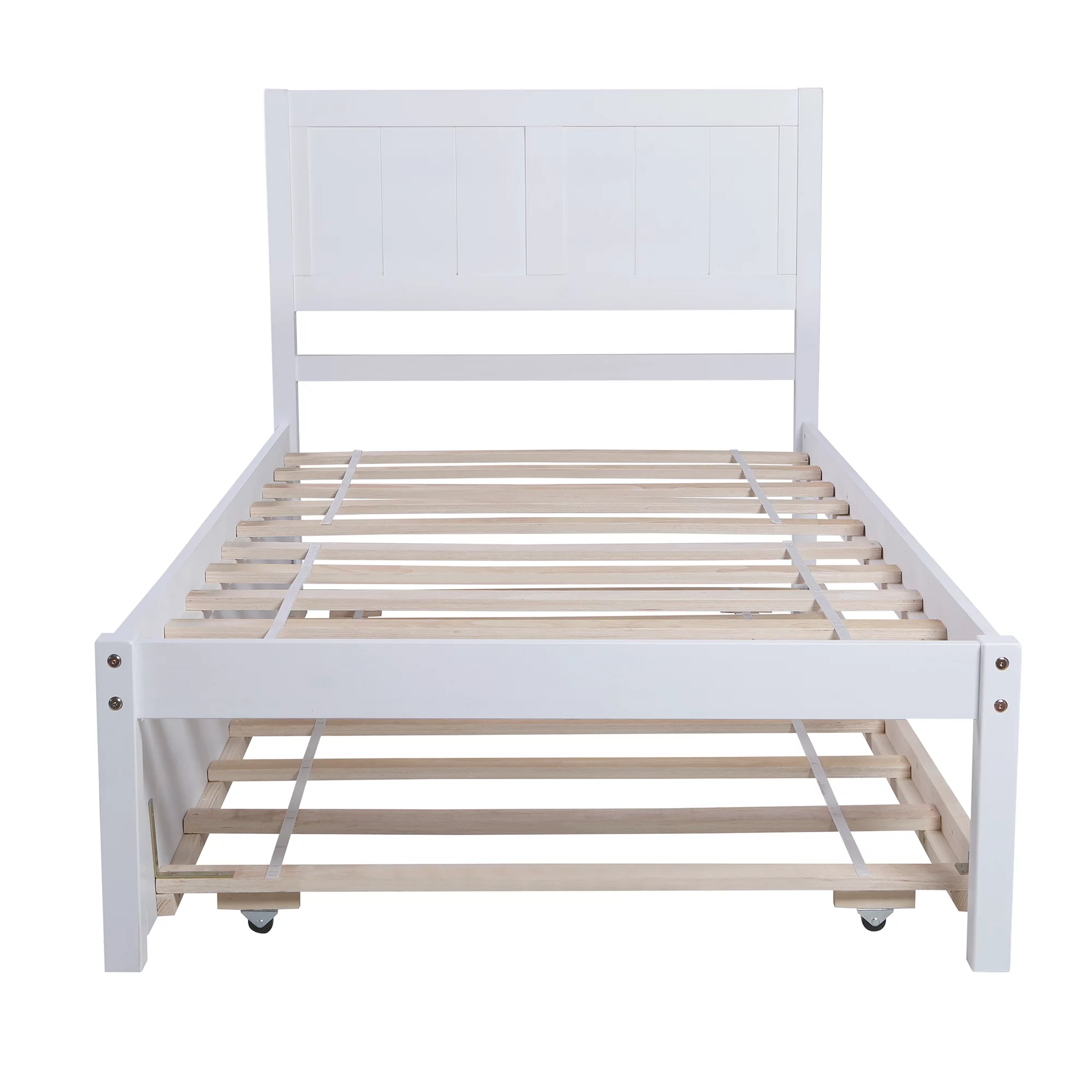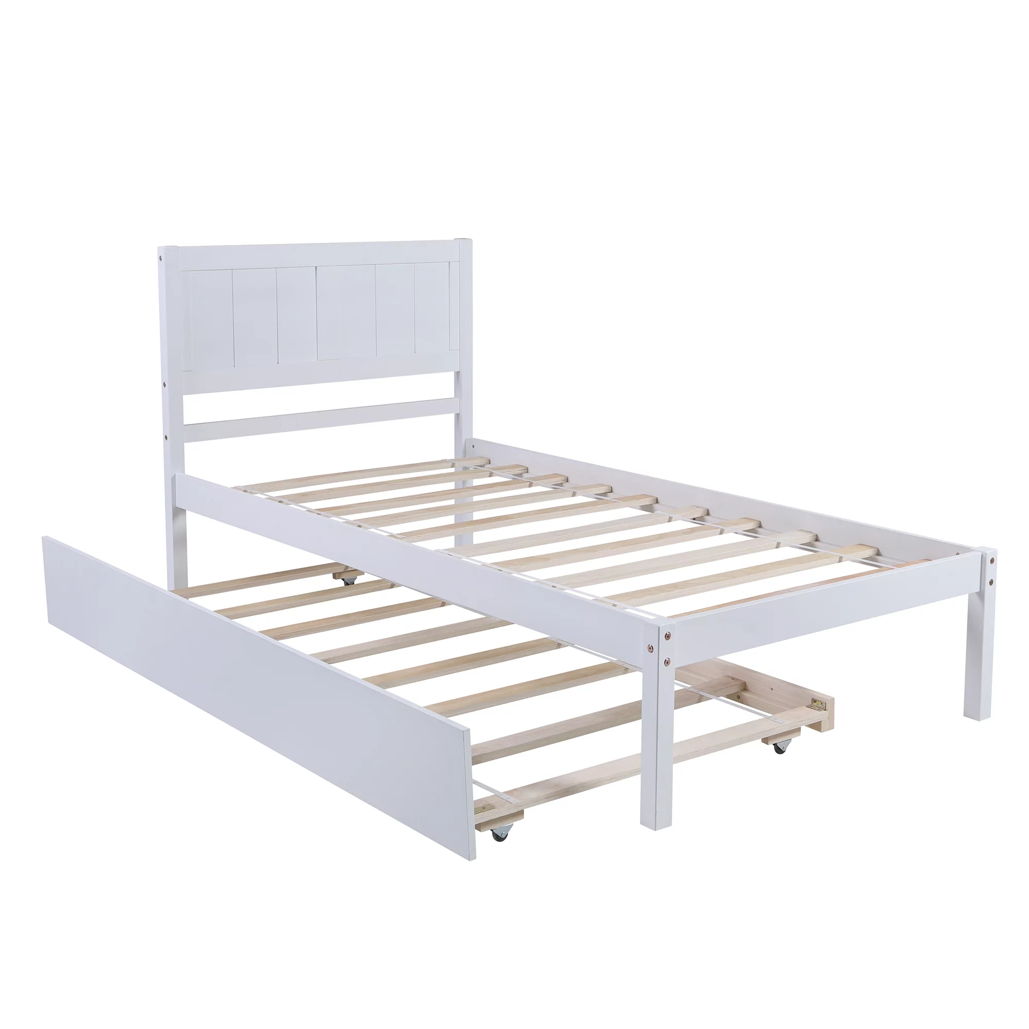 Aukfa Twin Platform Bed with Trundle Bed, Wood Bed Frame for Kids - White