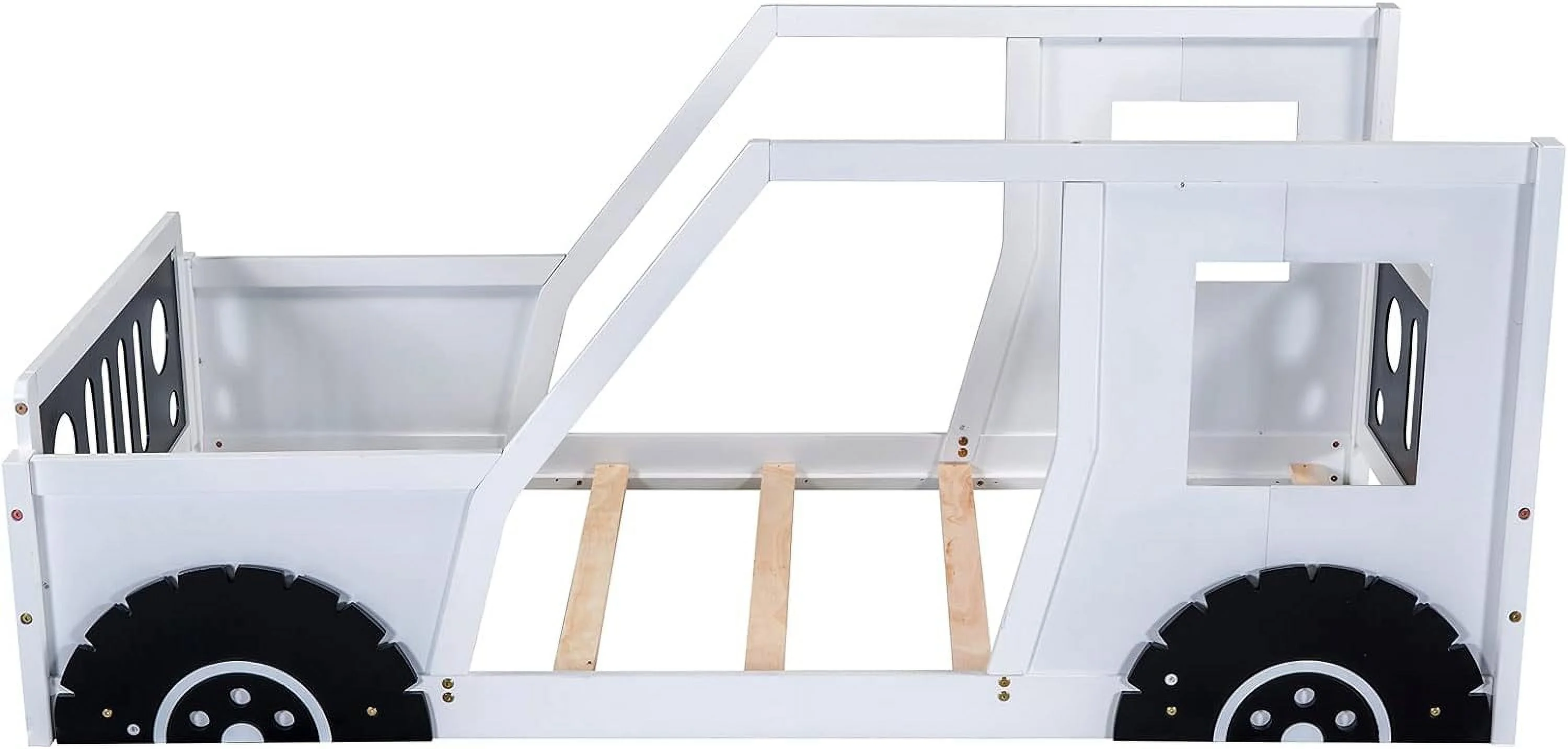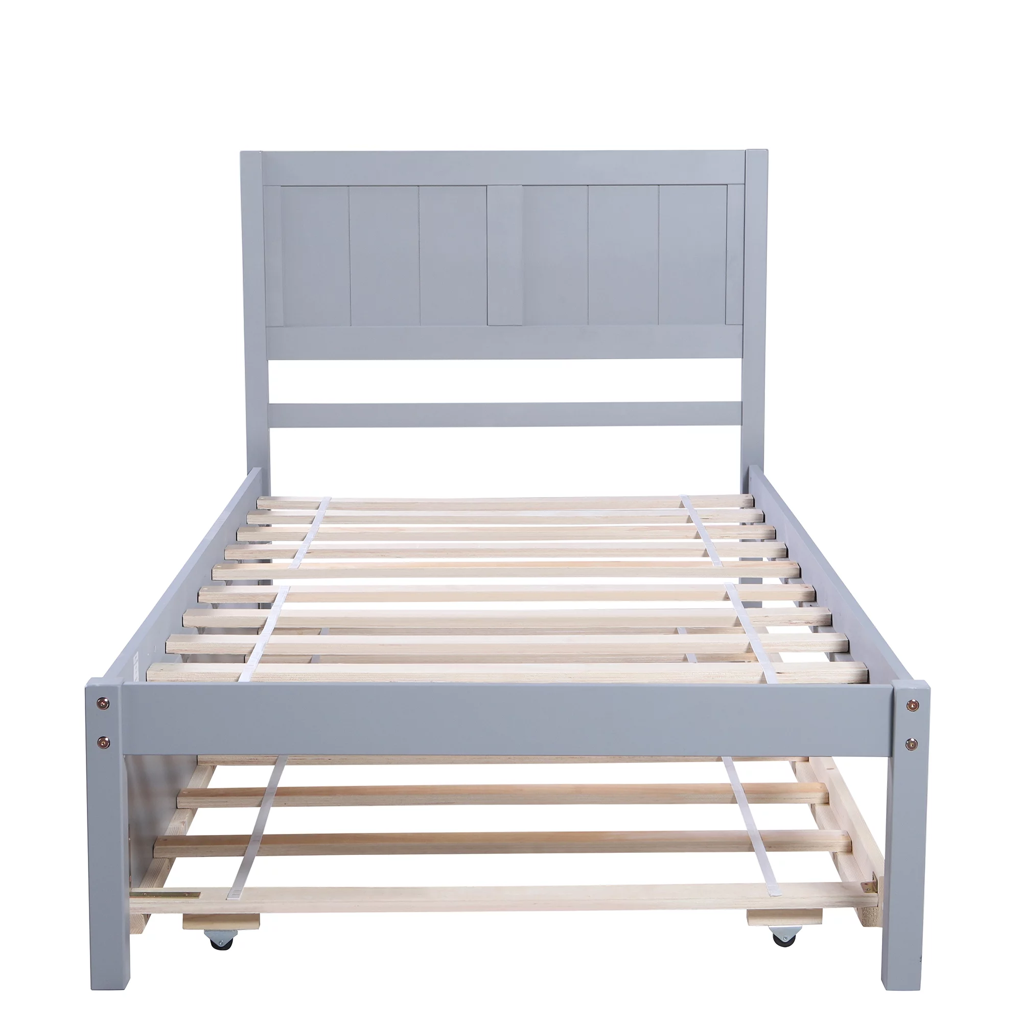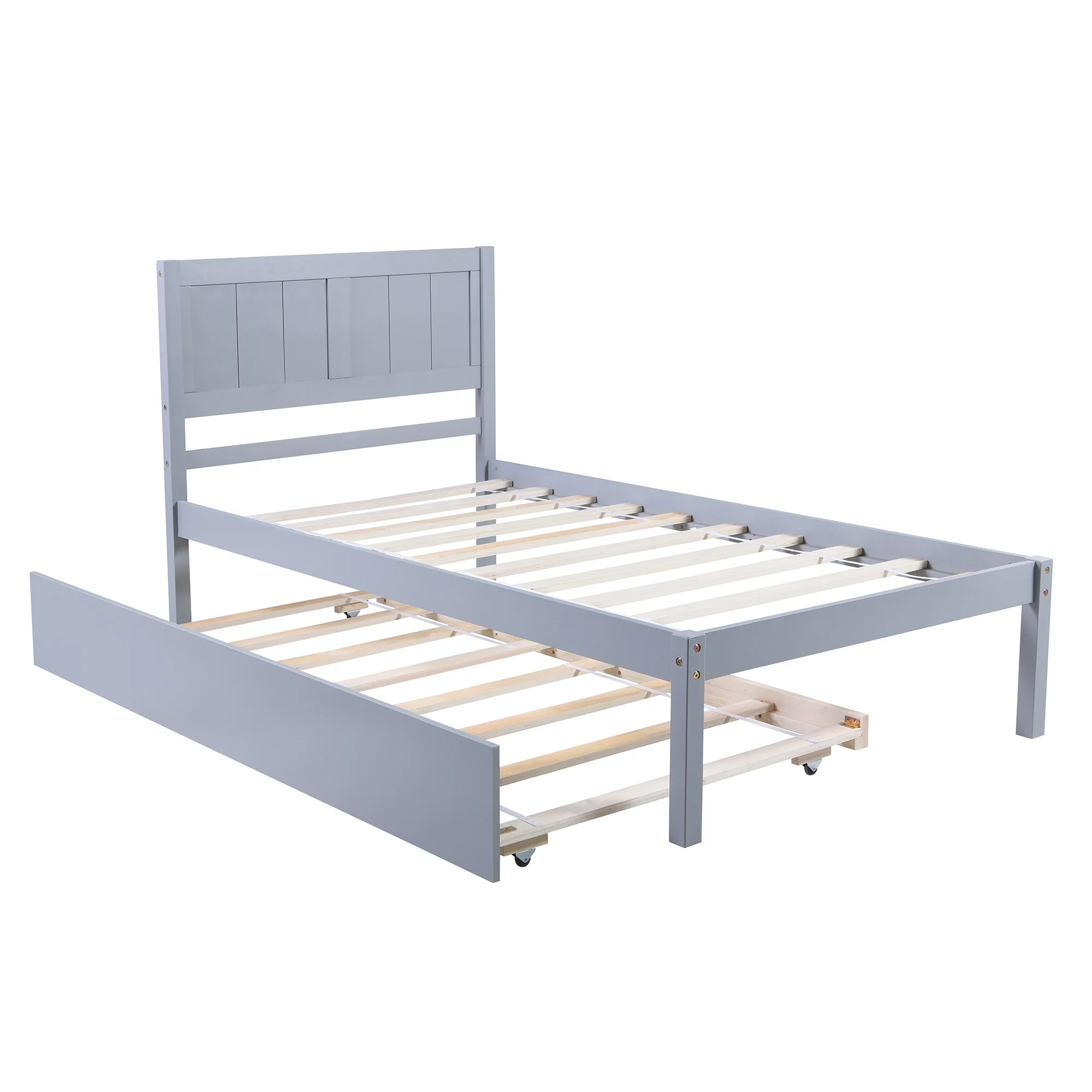 Aukfa Twin Platform Bed with Trundle Bed, Wood Bed Frame for Kids - White