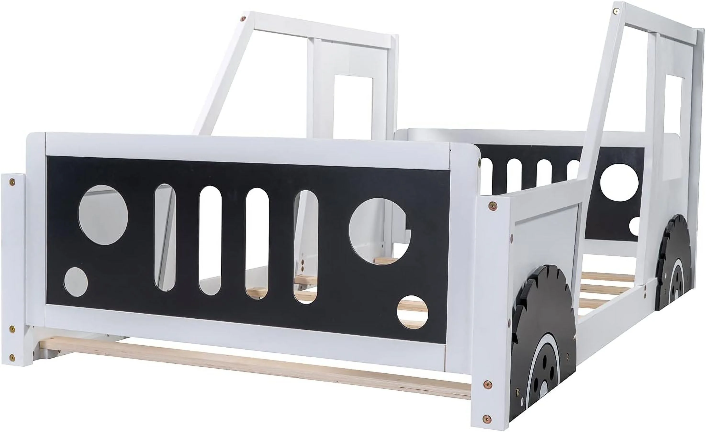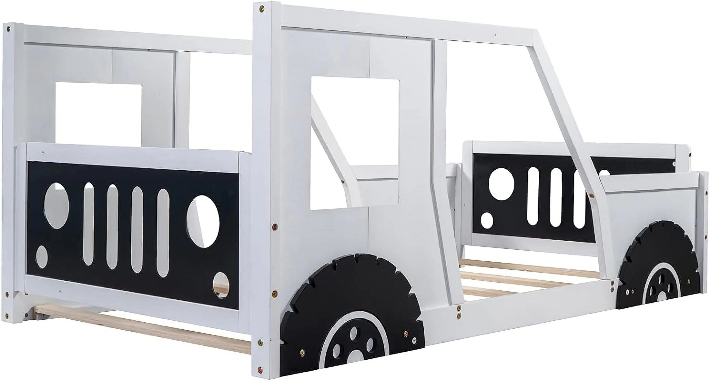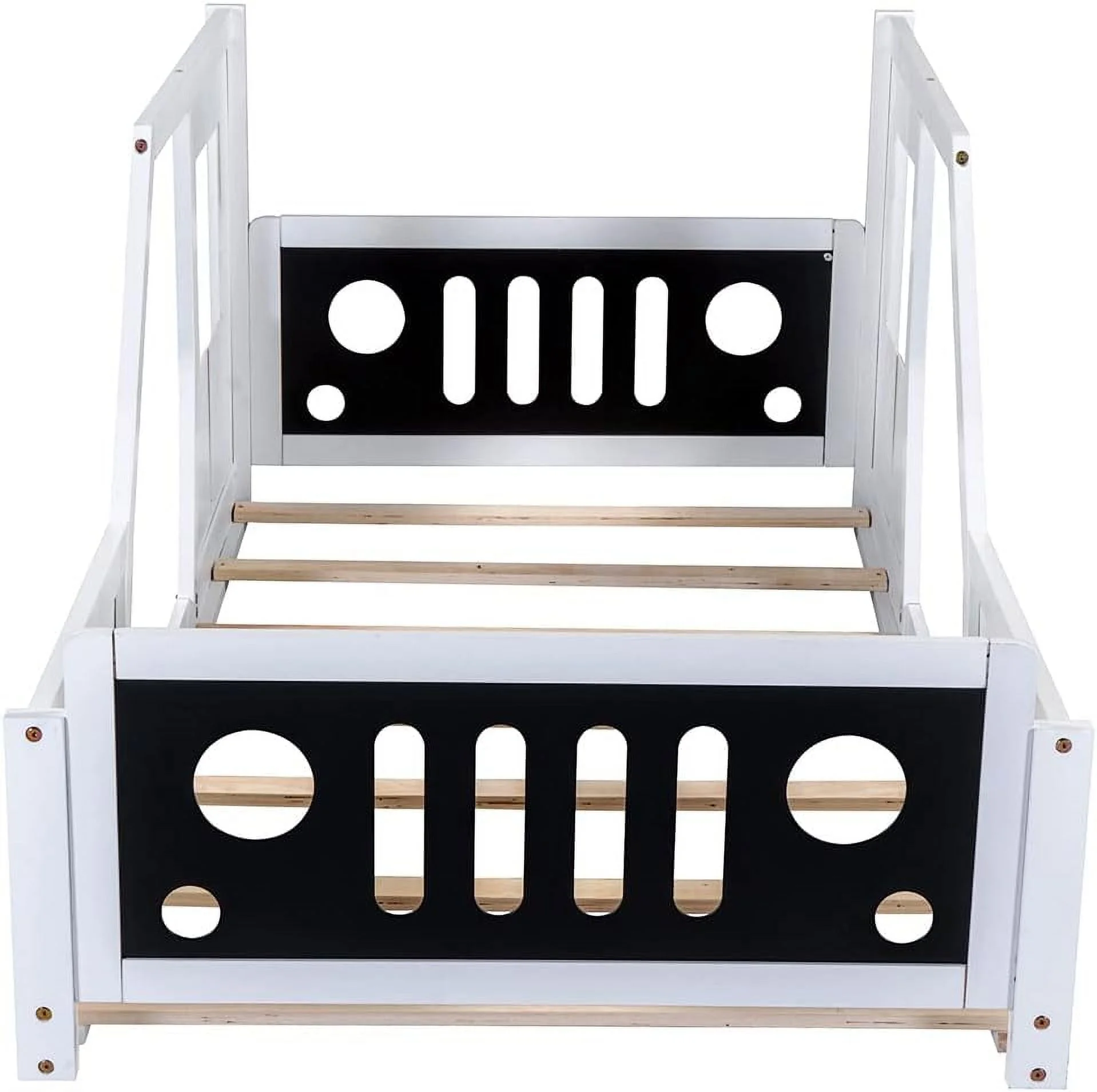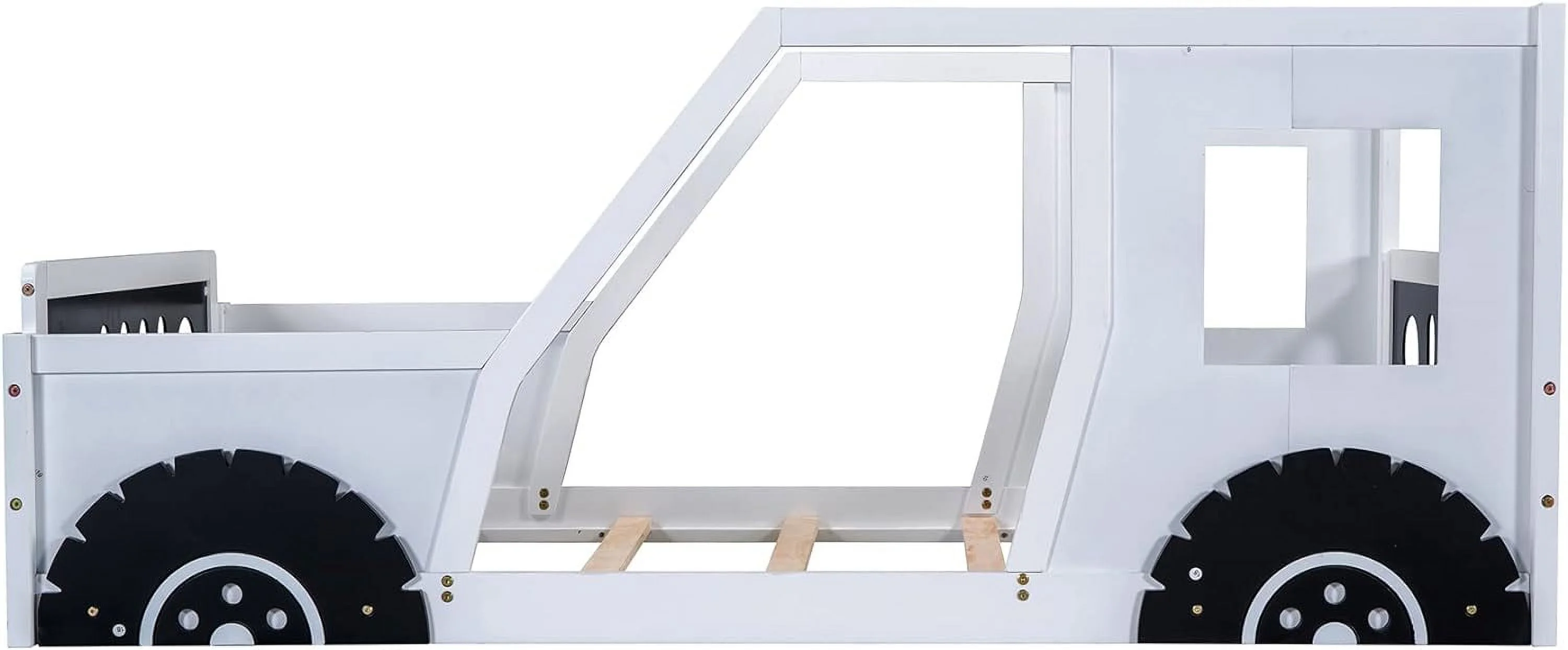 Aukfa Twin Platform Bed with Trundle Bed, Wood Bed Frame for Kids - White