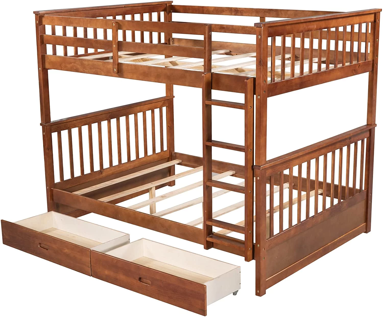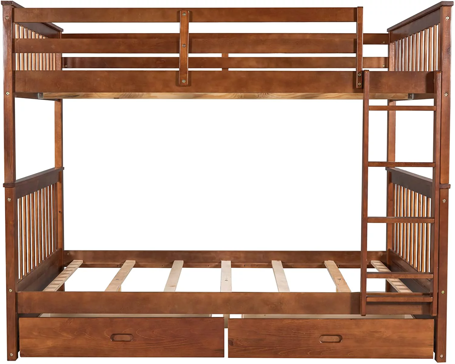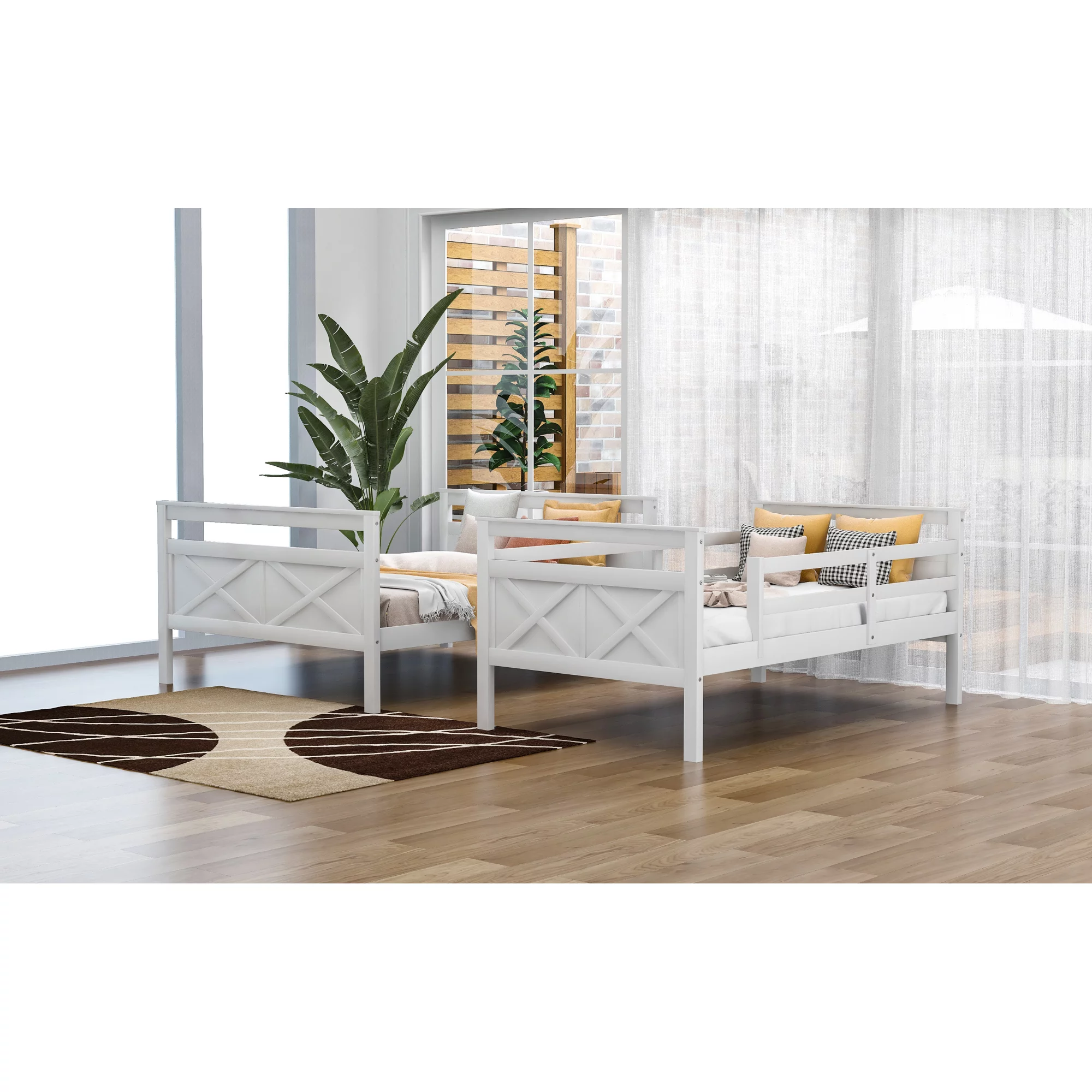Twin over Full Bunk Bed: Ladder, Safety Guardrail, Ideal for Bedroom, White