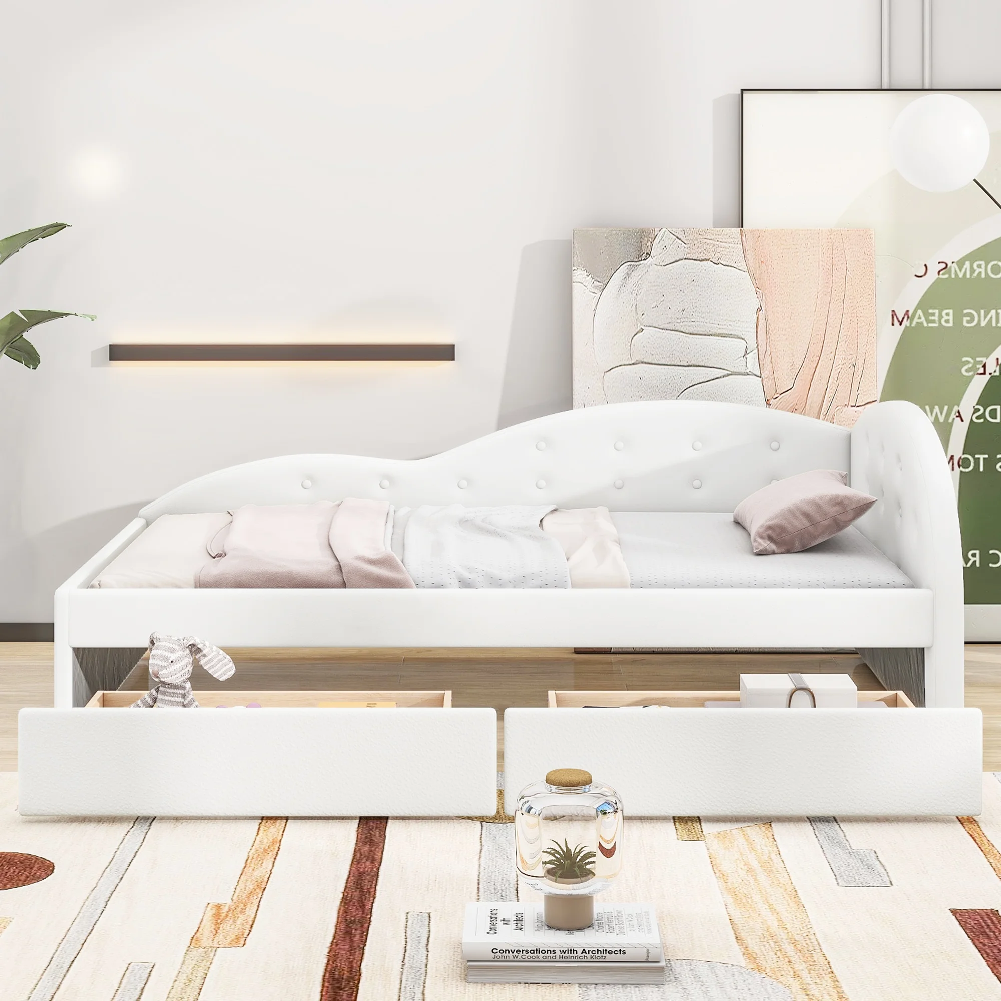 CoSoTower Twin Size PU Upholstered Tufted Daybed with Two Drawers and Cloud Shaped Guardrail, White