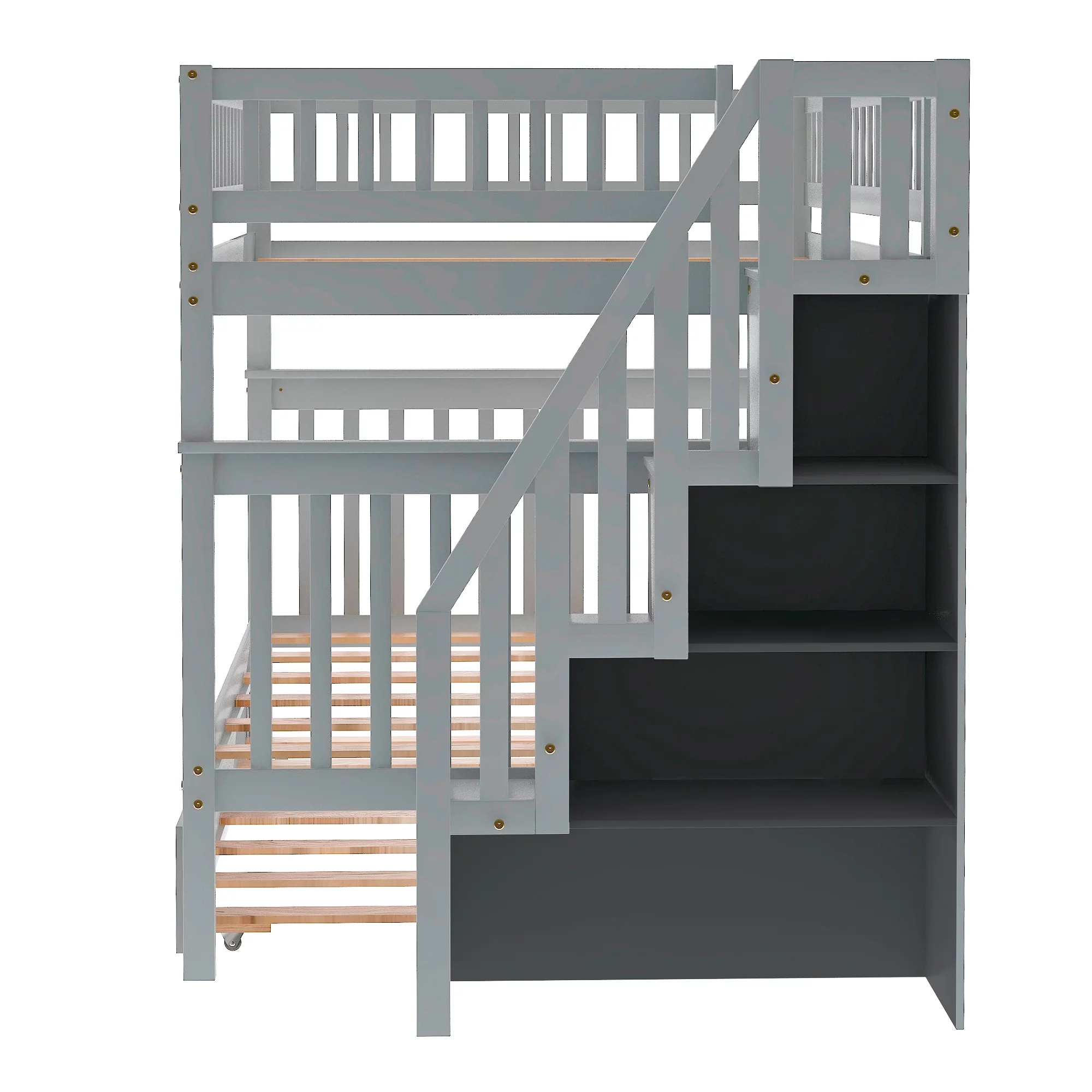 Churanty L-Shaped Bunk Bed for 4 Kids,Full and Twin Size Bunk Bedframe with Slide and Short Ladder for Teens Bedroom,White