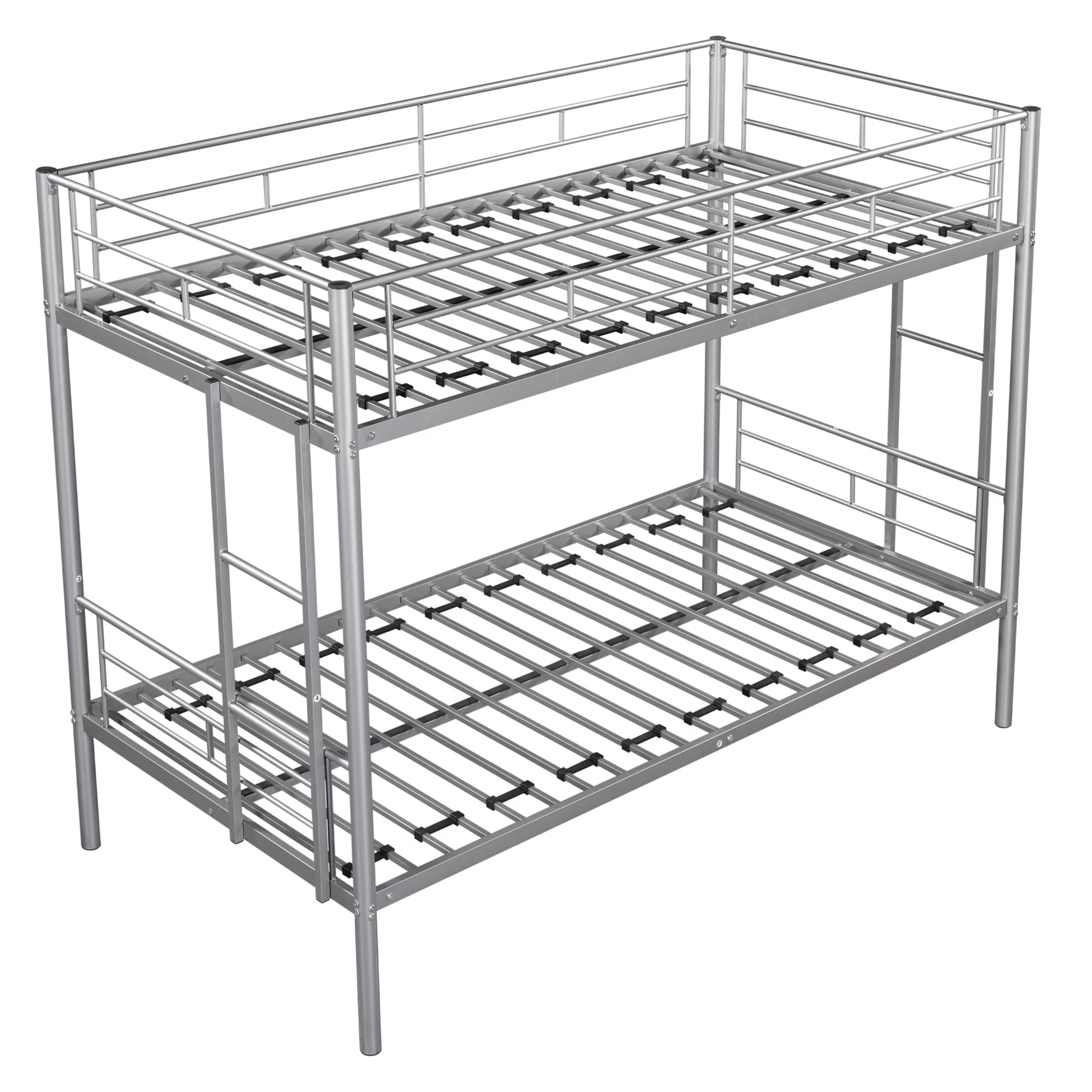 KAMIDA Metal Bunk Bed for Kids, Twin Over Twin Convertible Bunk Bed with Ladder and Safety Fence, Silver