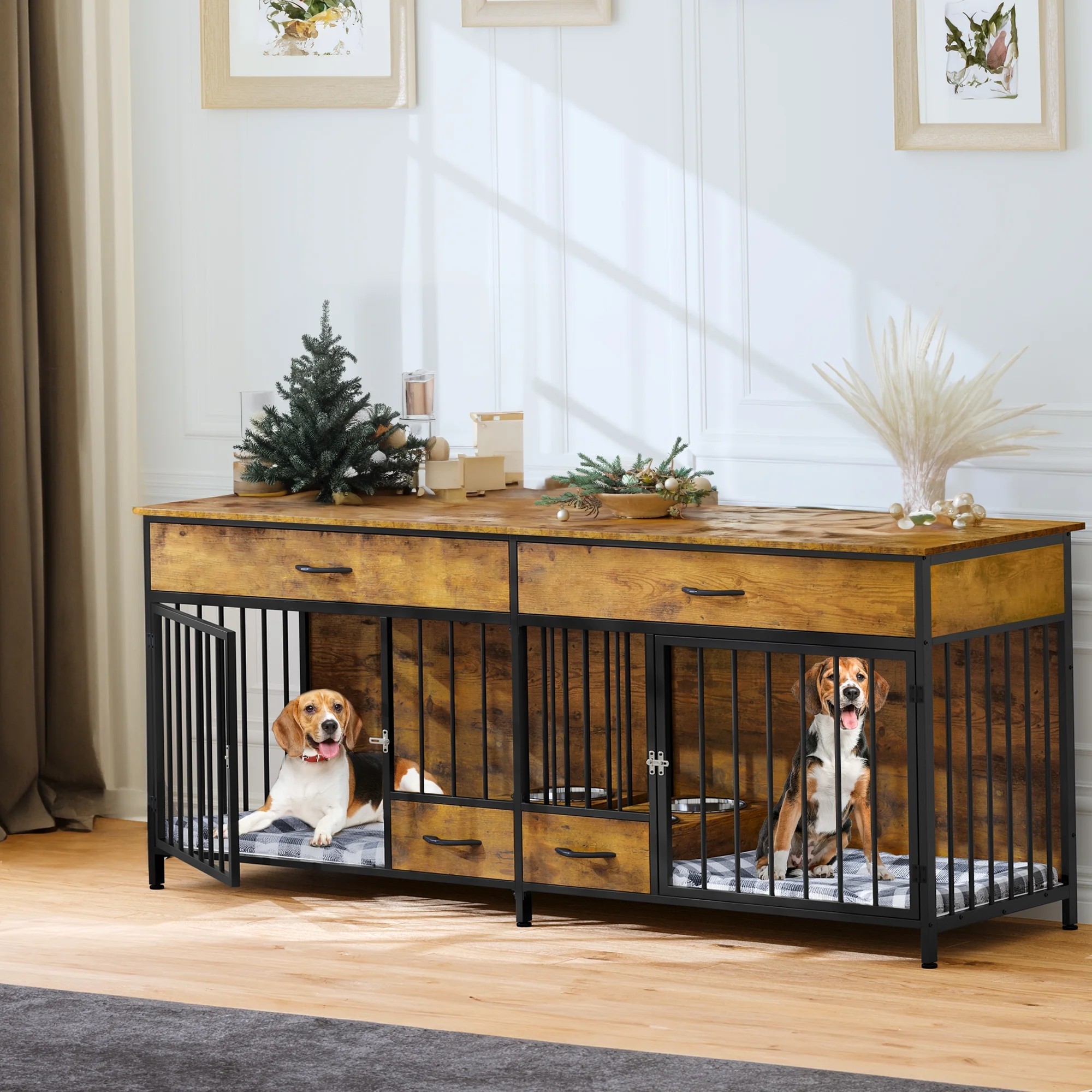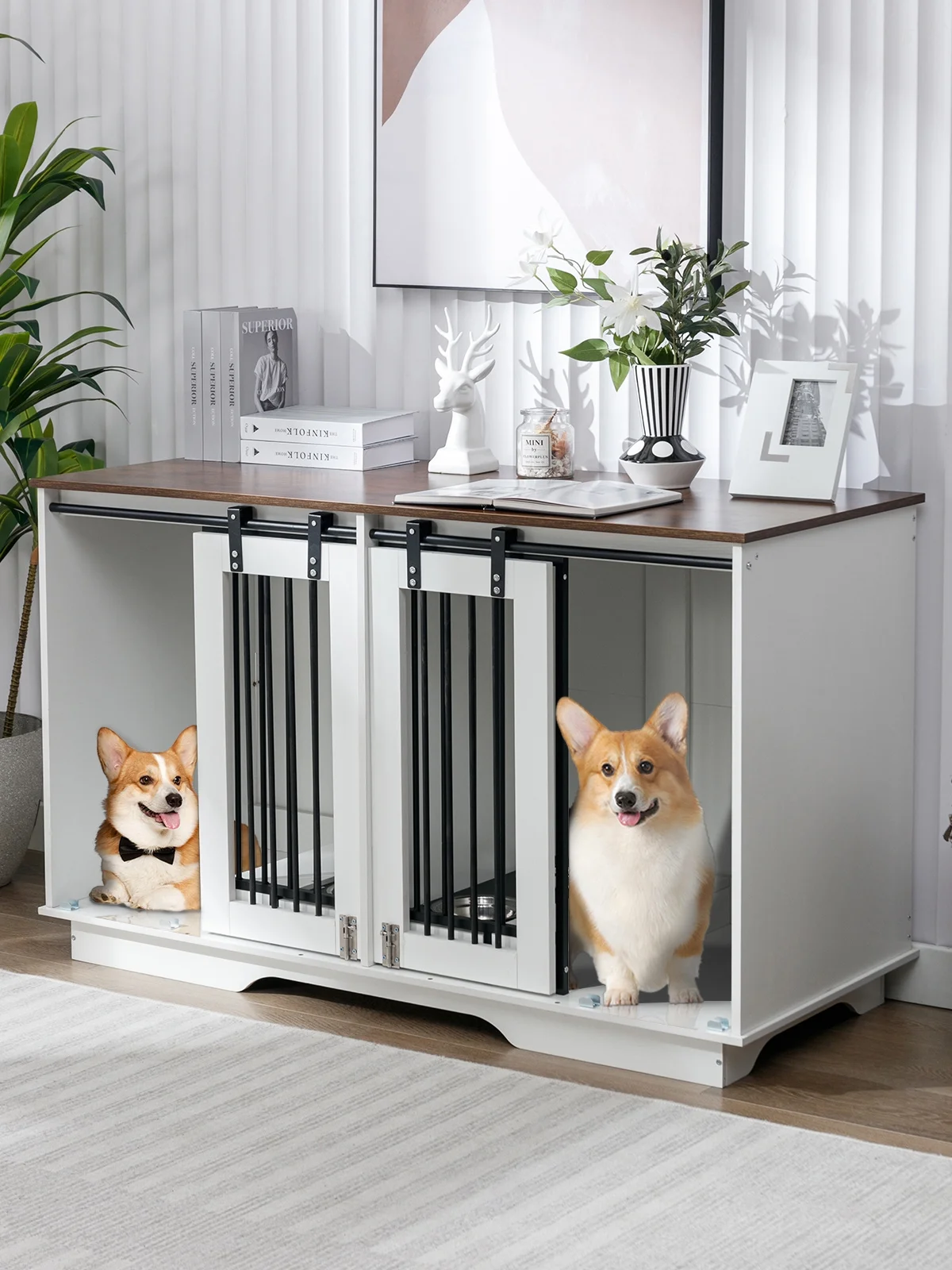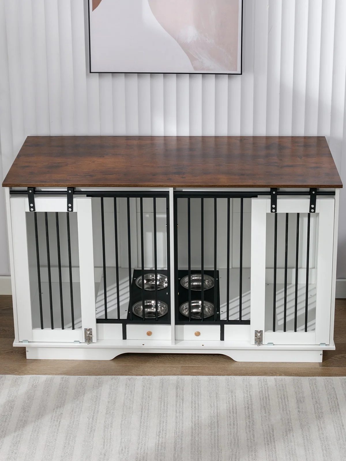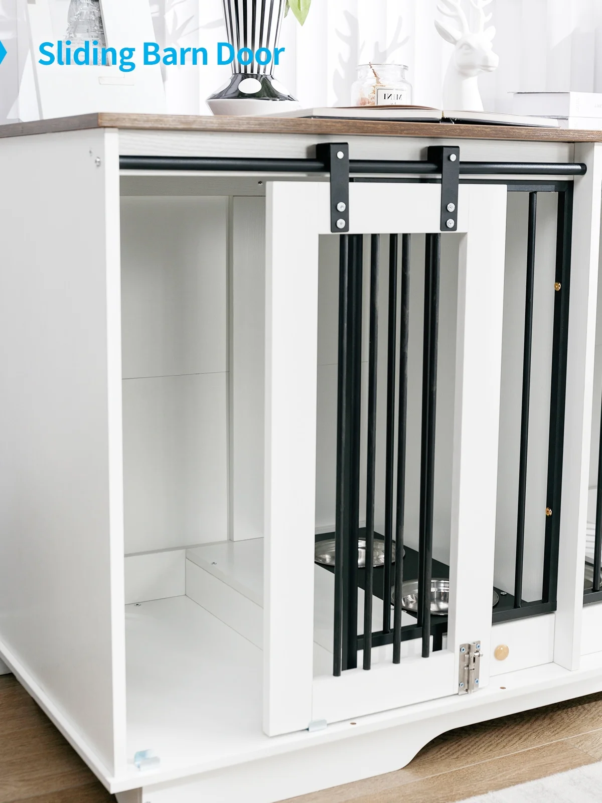 TABU 66" Large Dog Crate Furniture, Wooden Dog Crate for 2 Small or Medium Dogs,Indoor, Chew Resistant,White
