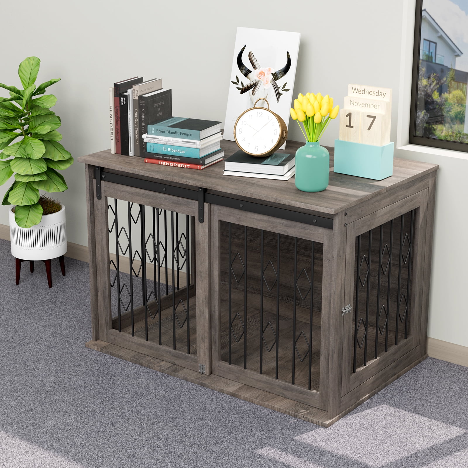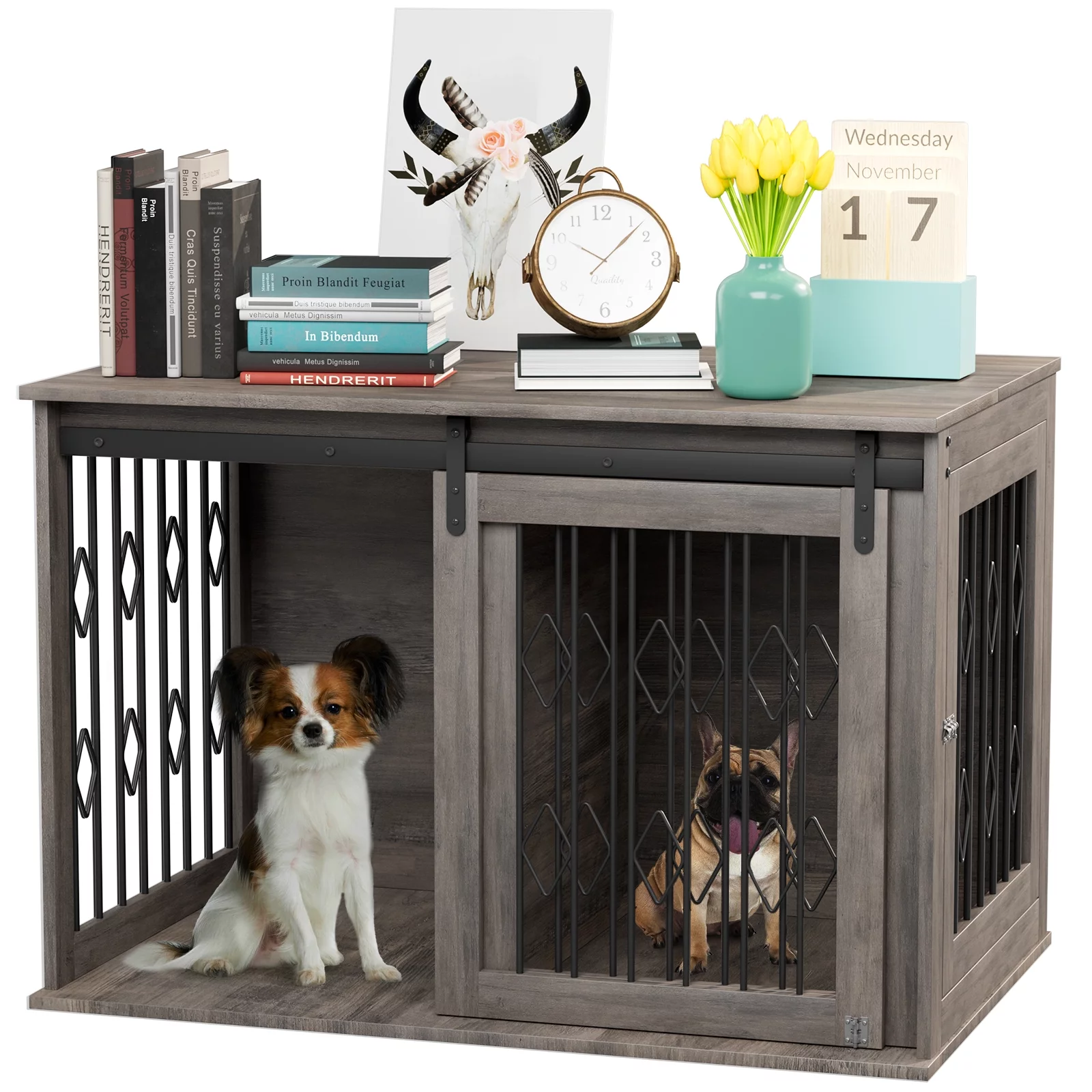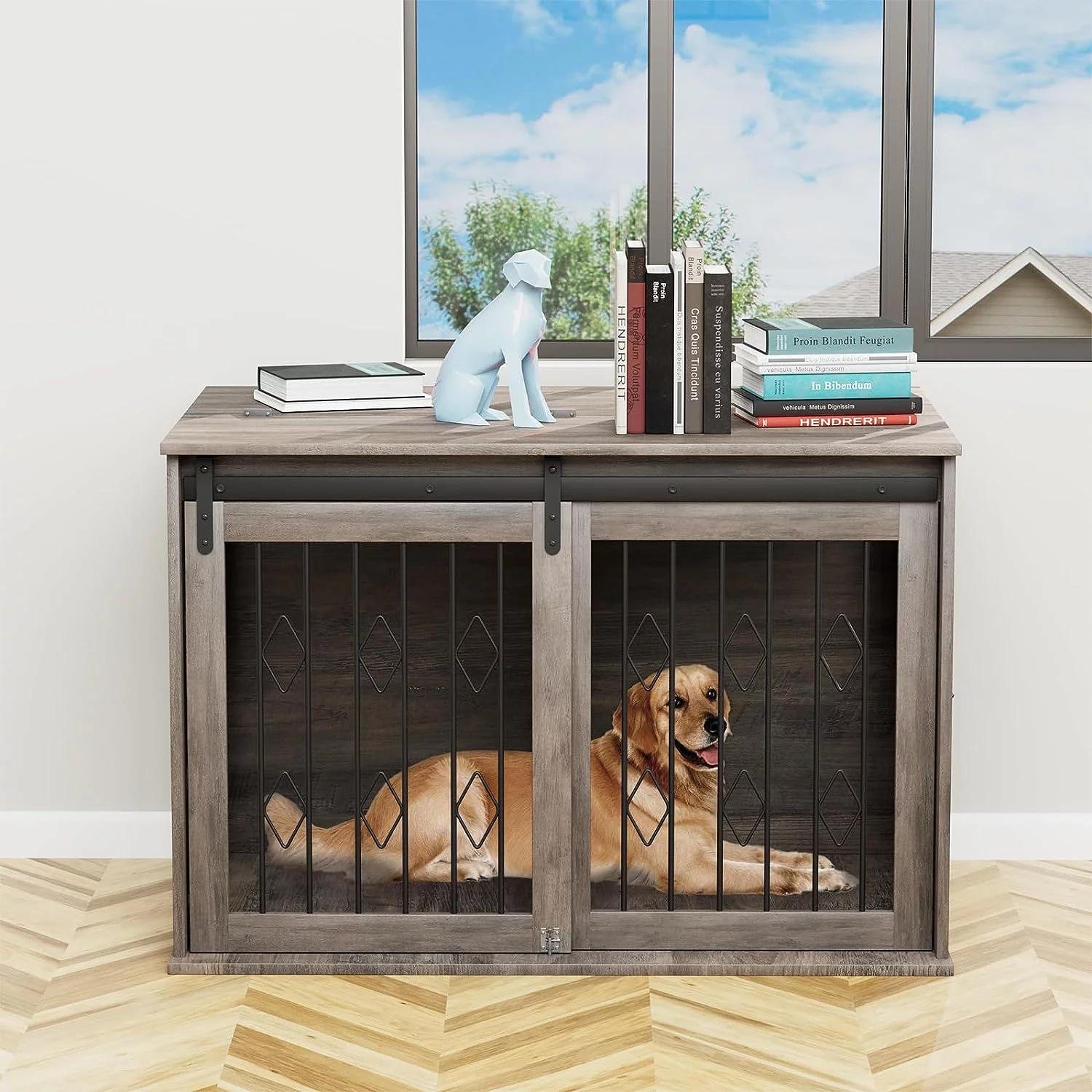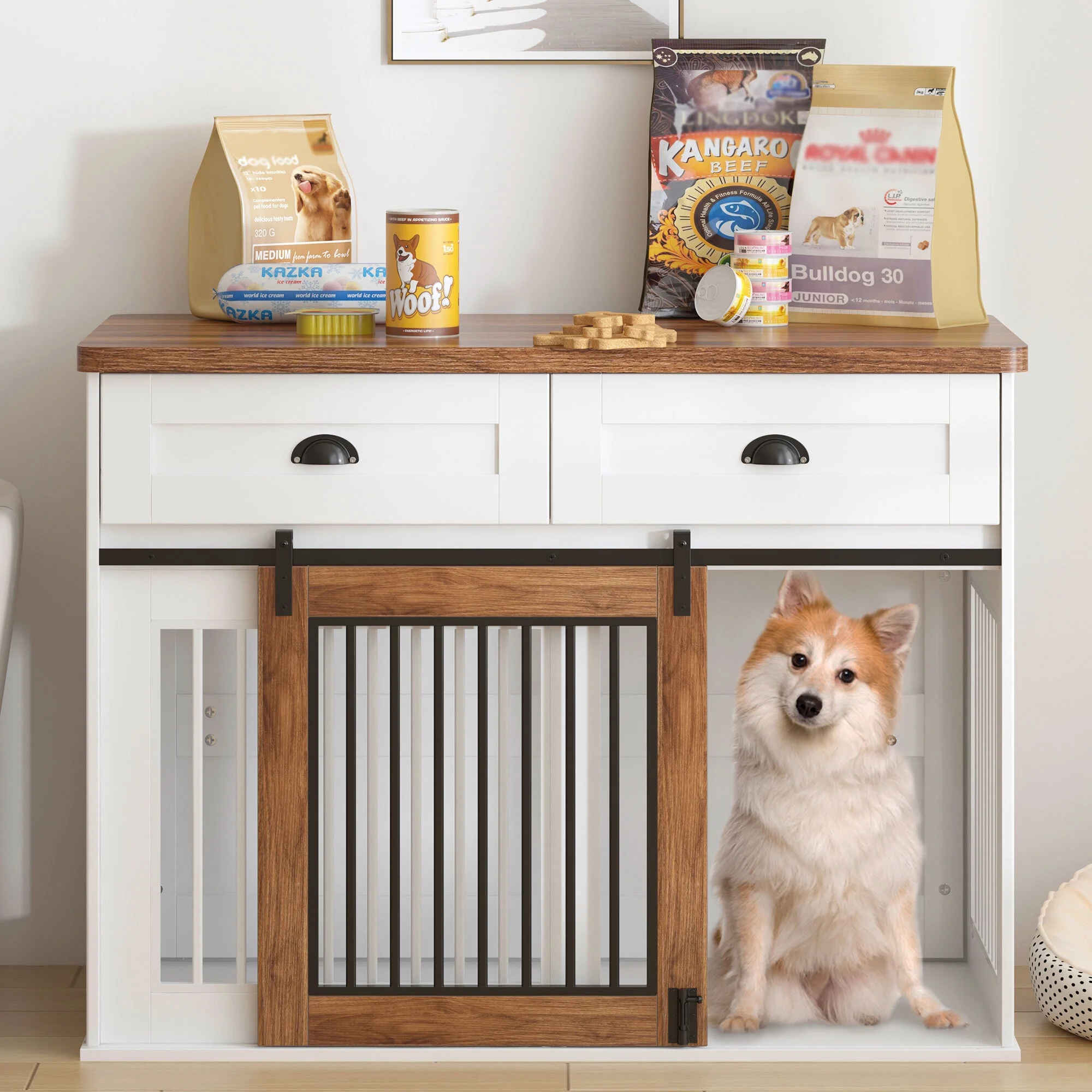 SogesPower 44"H Wooden Dog Crate with Sliding Barn Door Dog House for All Dogs