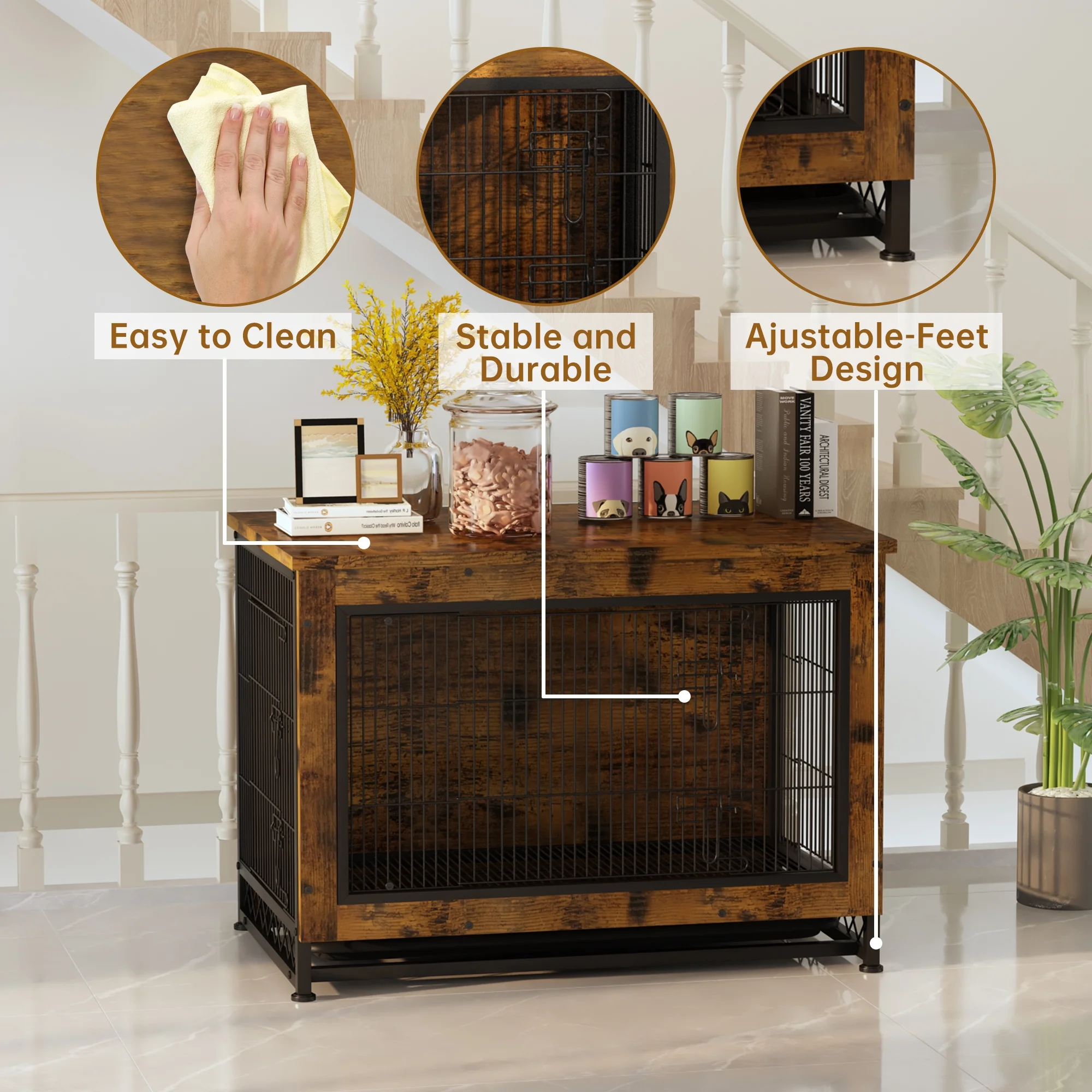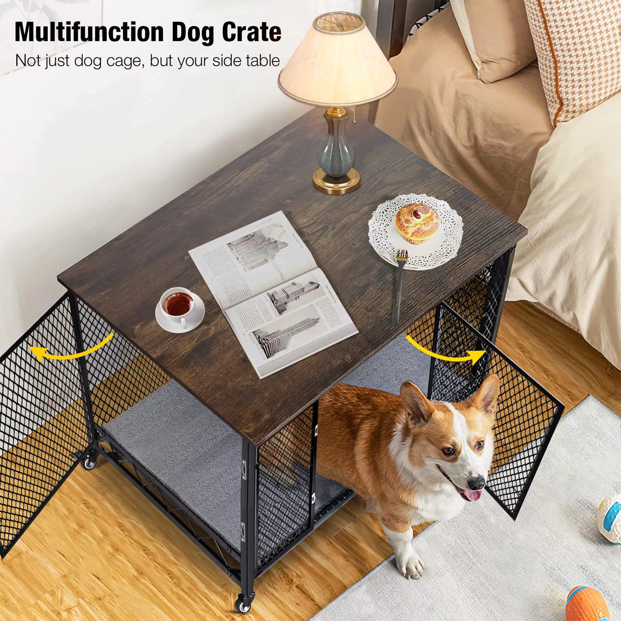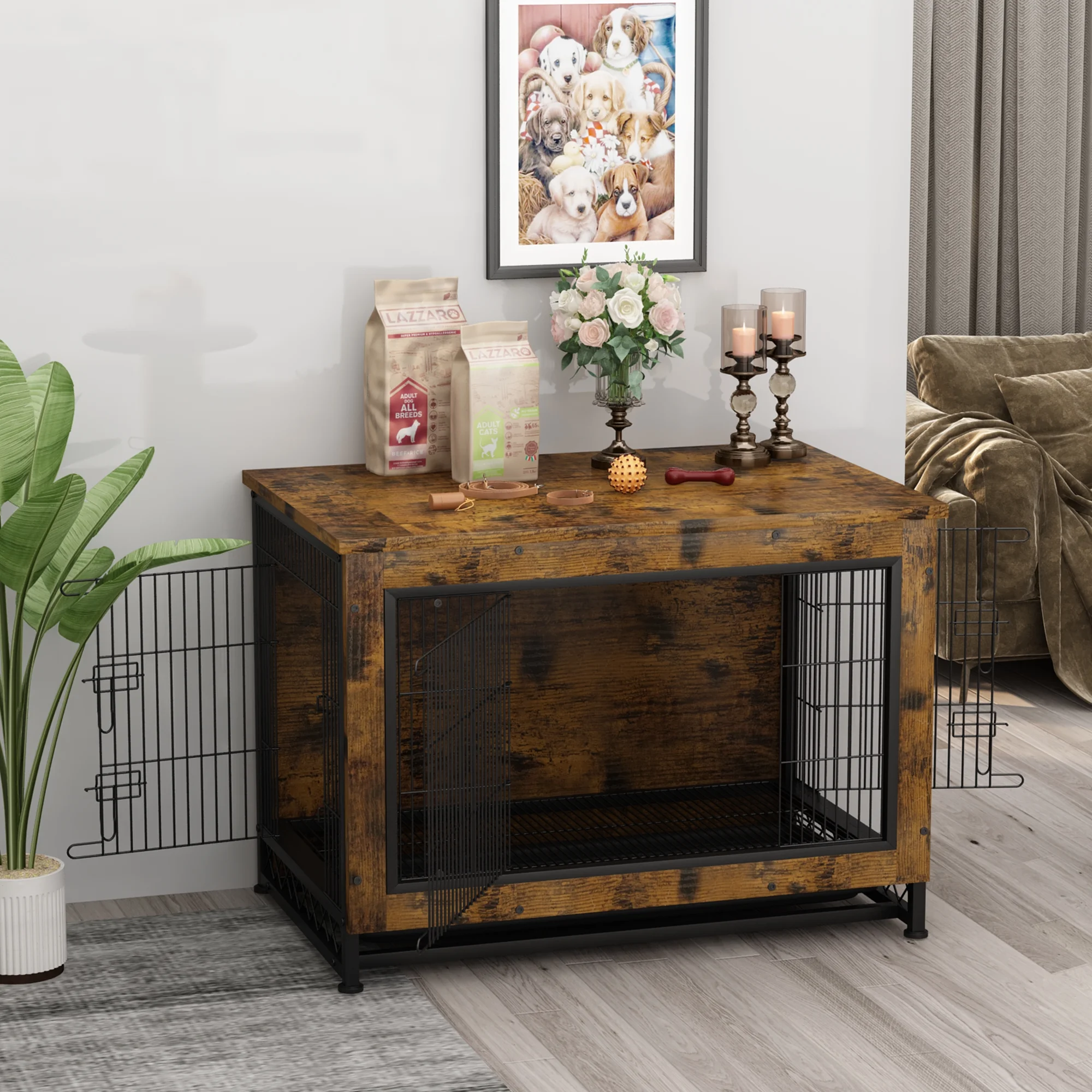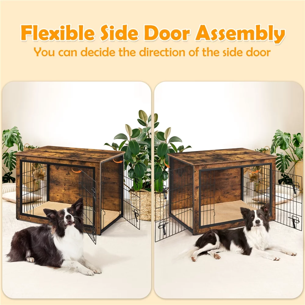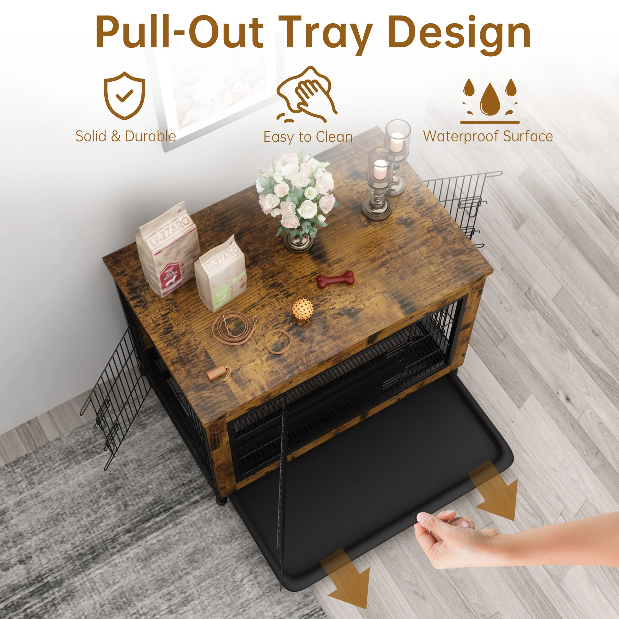 Morgete Dog Crate Furniture Wooden Dog House with Cushion, Tray for Small Medium Large Dogs
