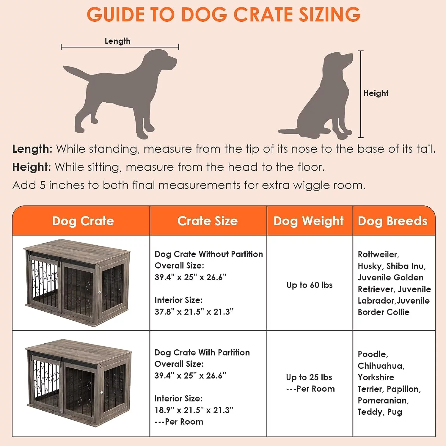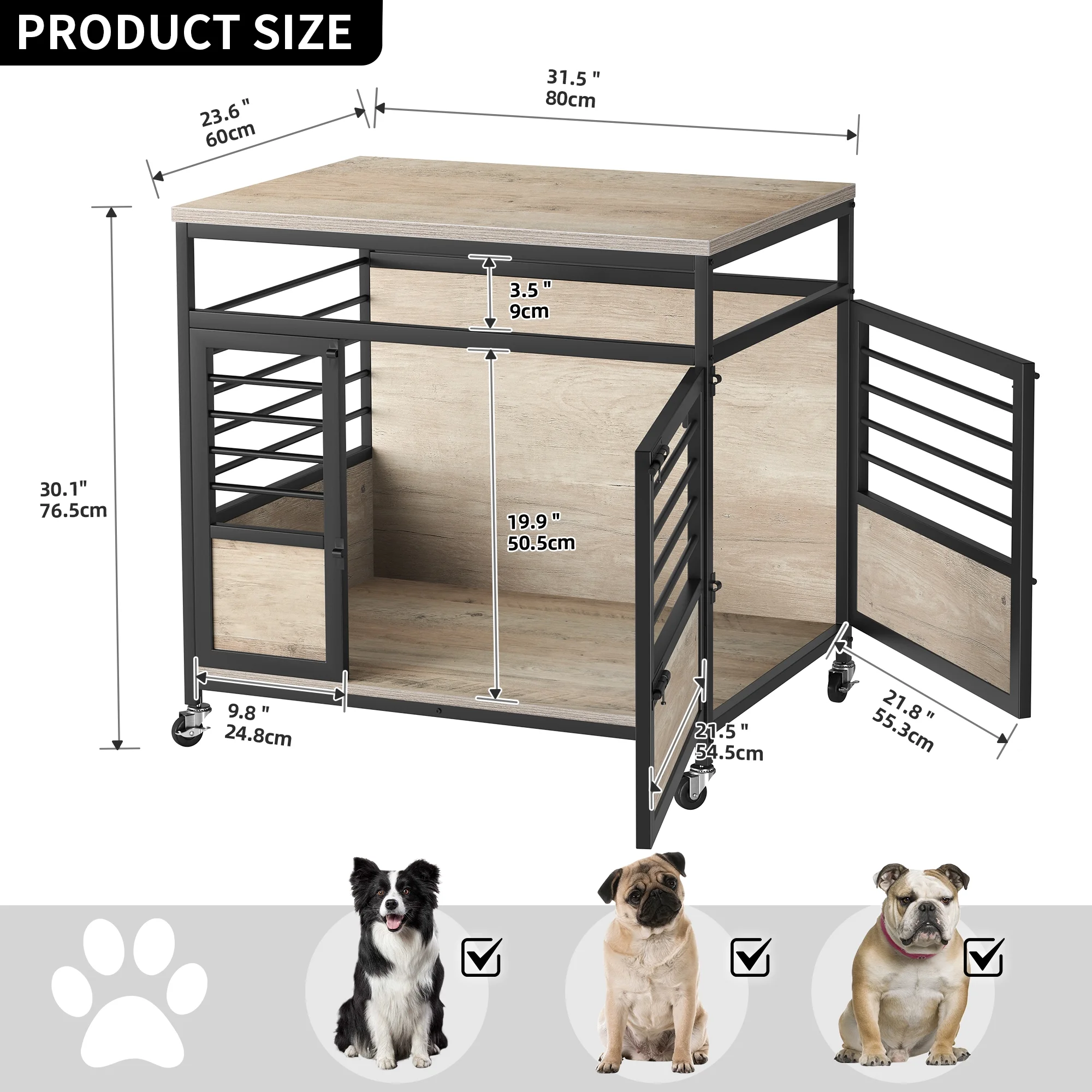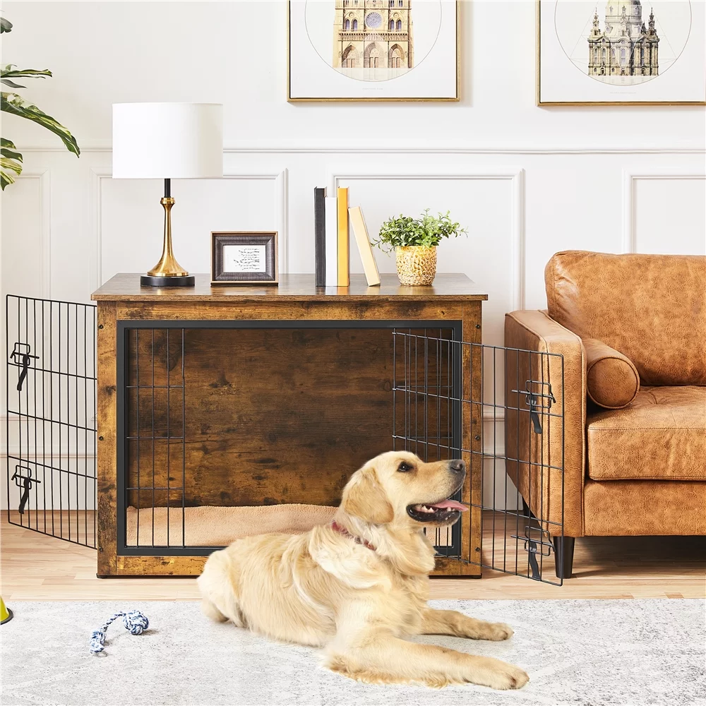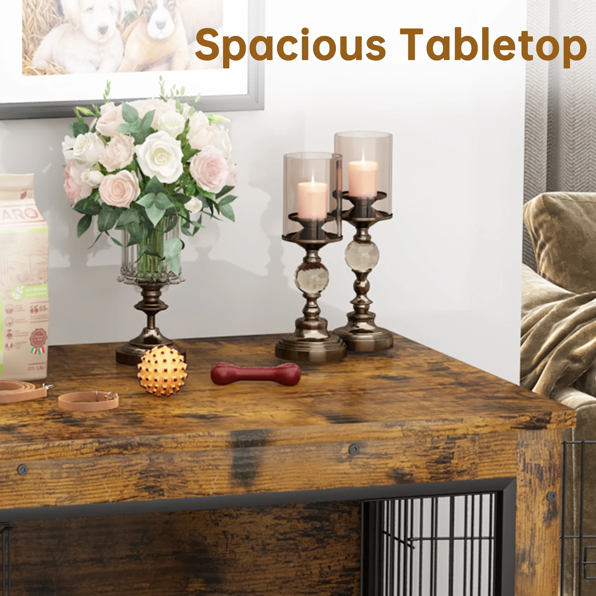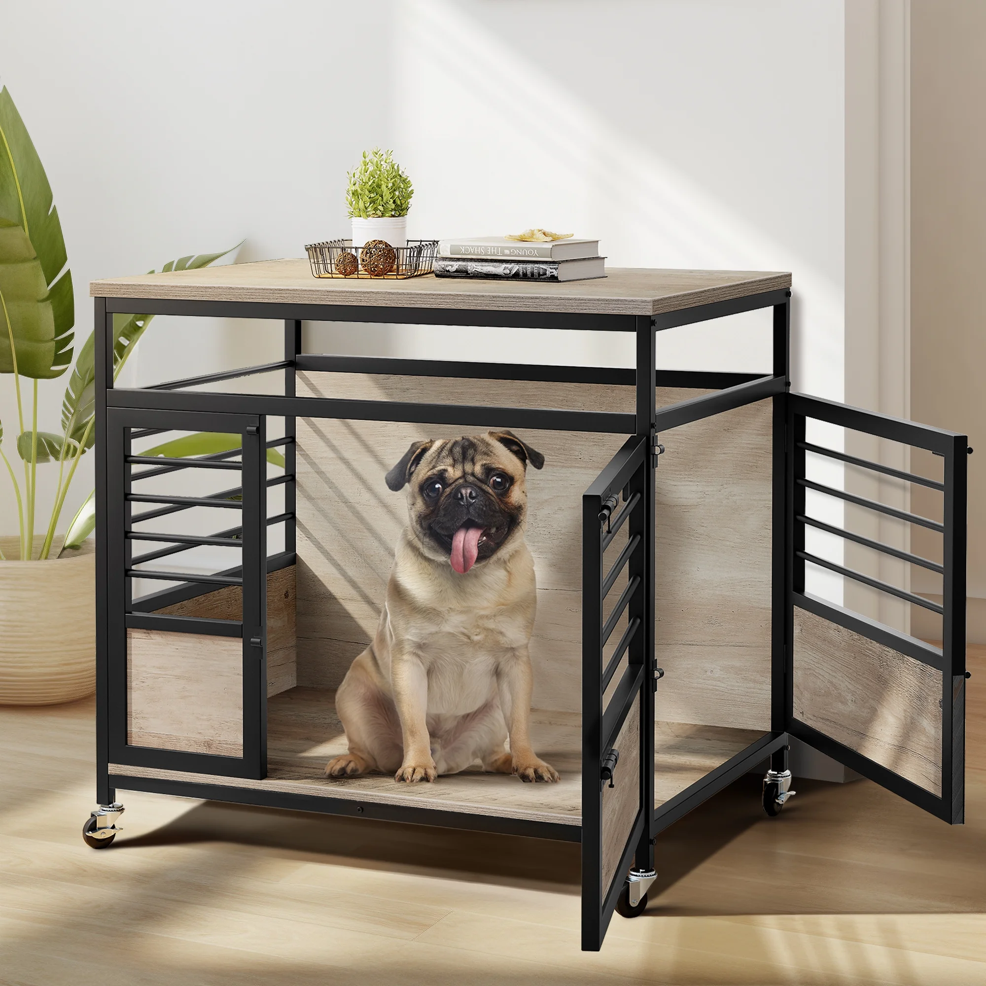 Morgete Dog Crate Furniture Wooden Dog House with Cushion, Tray for Small Medium Large Dogs