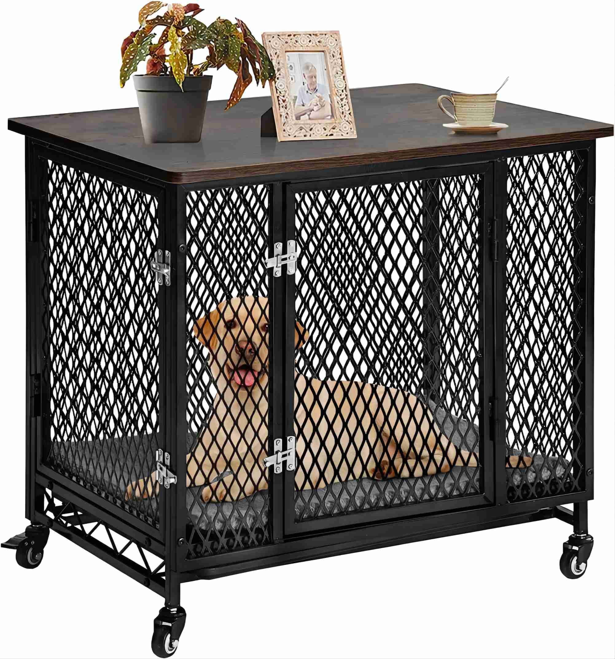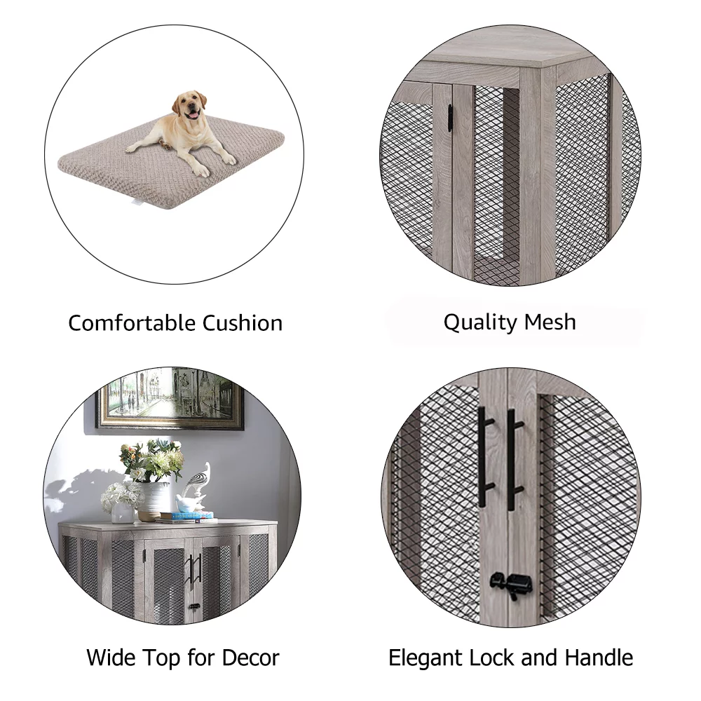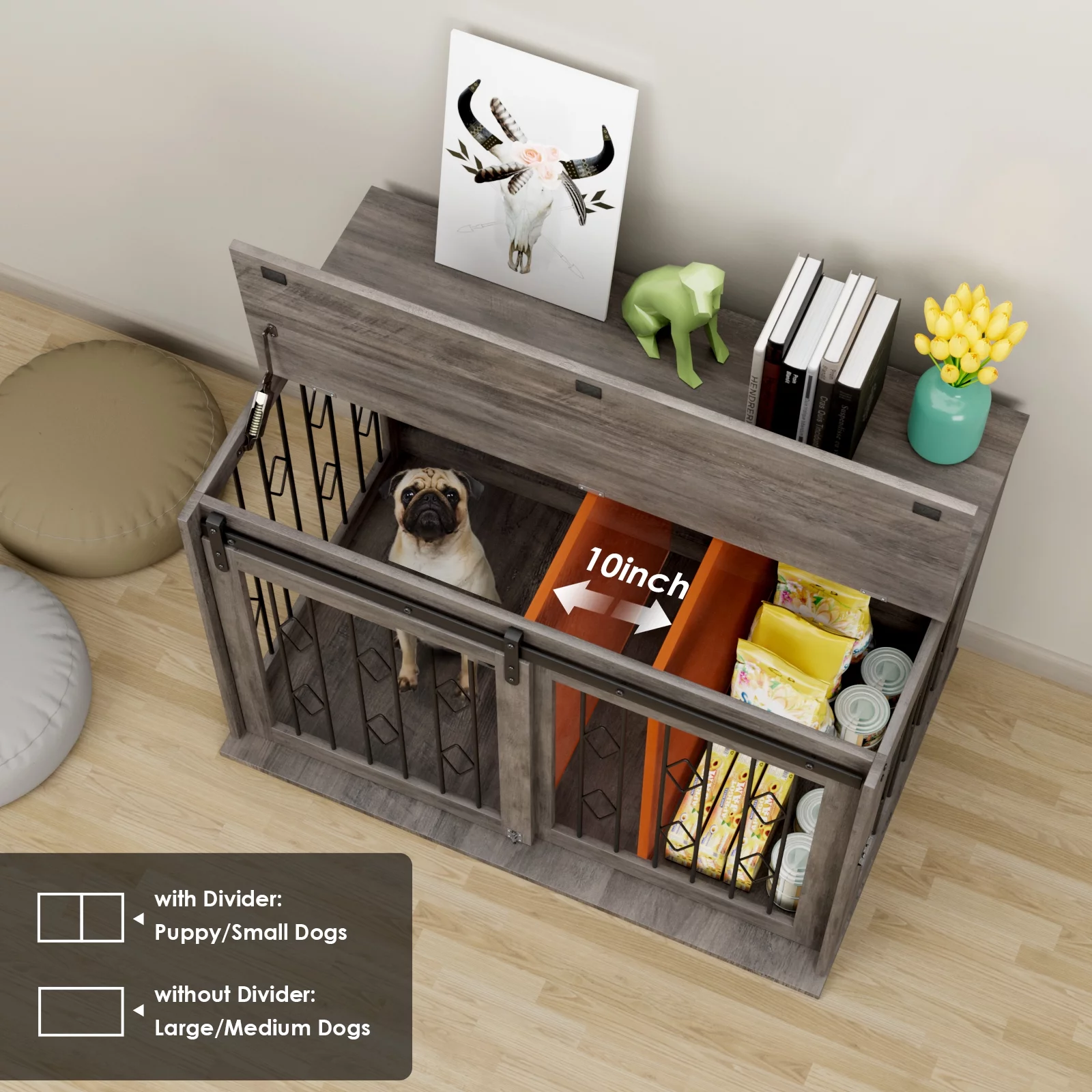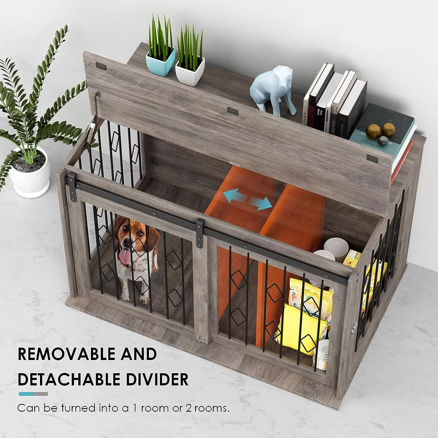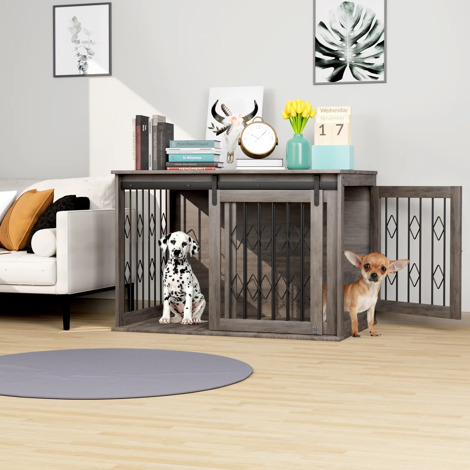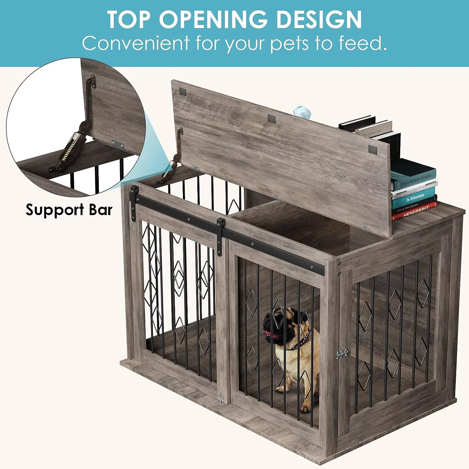 Morgete Dog Crate Furniture Wooden Dog House with Cushion, Tray for Small Medium Large Dogs