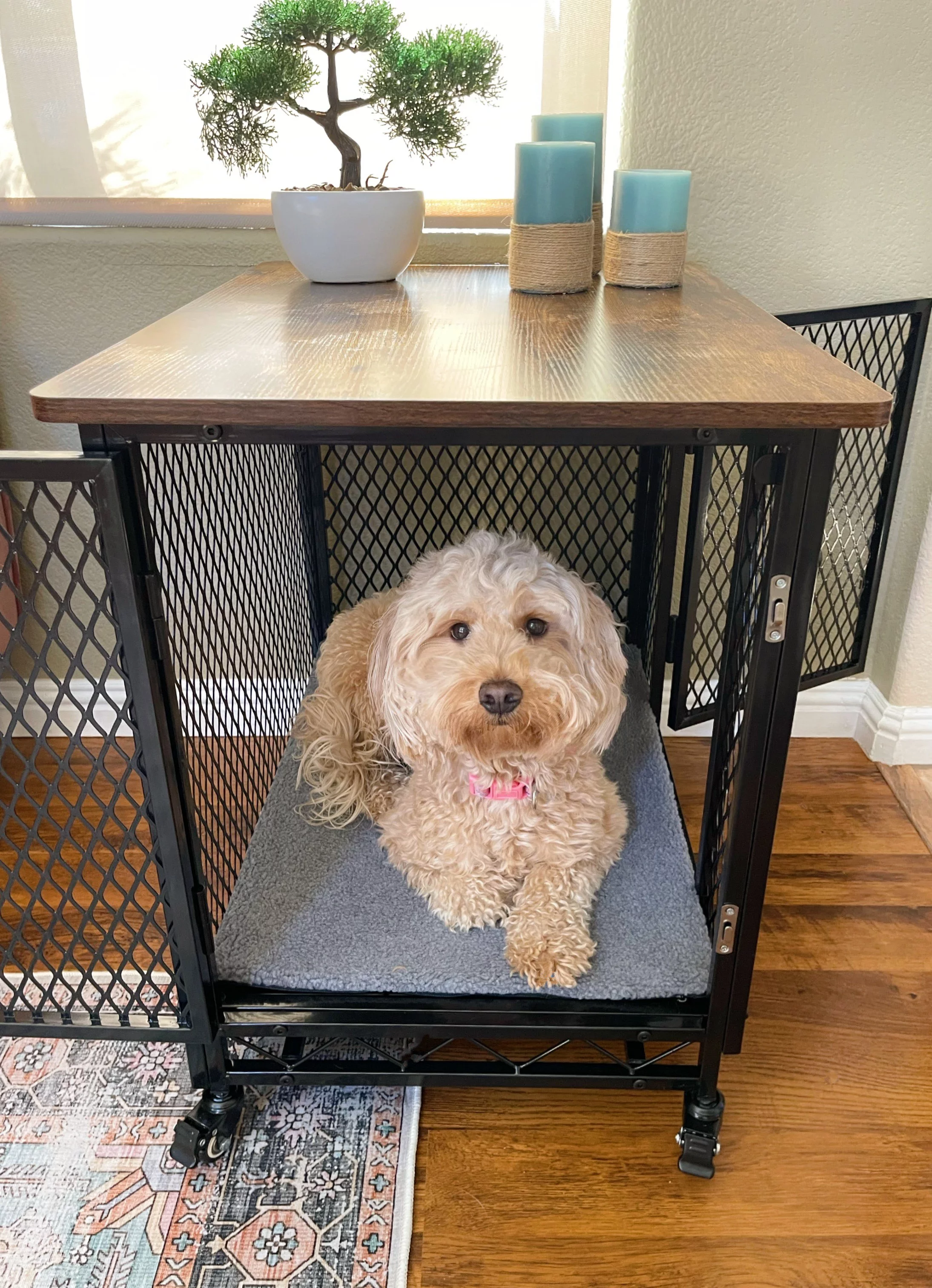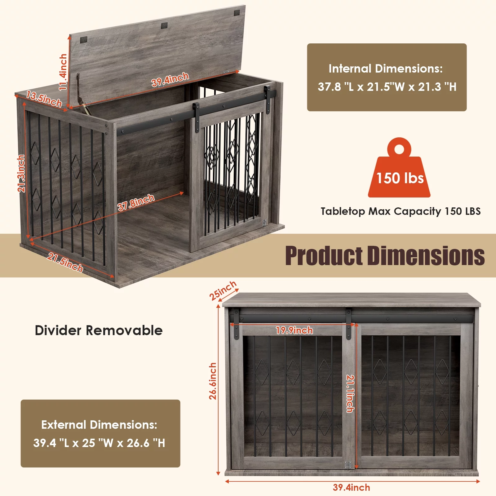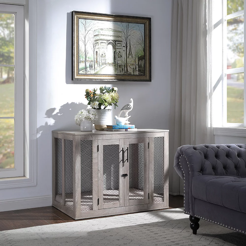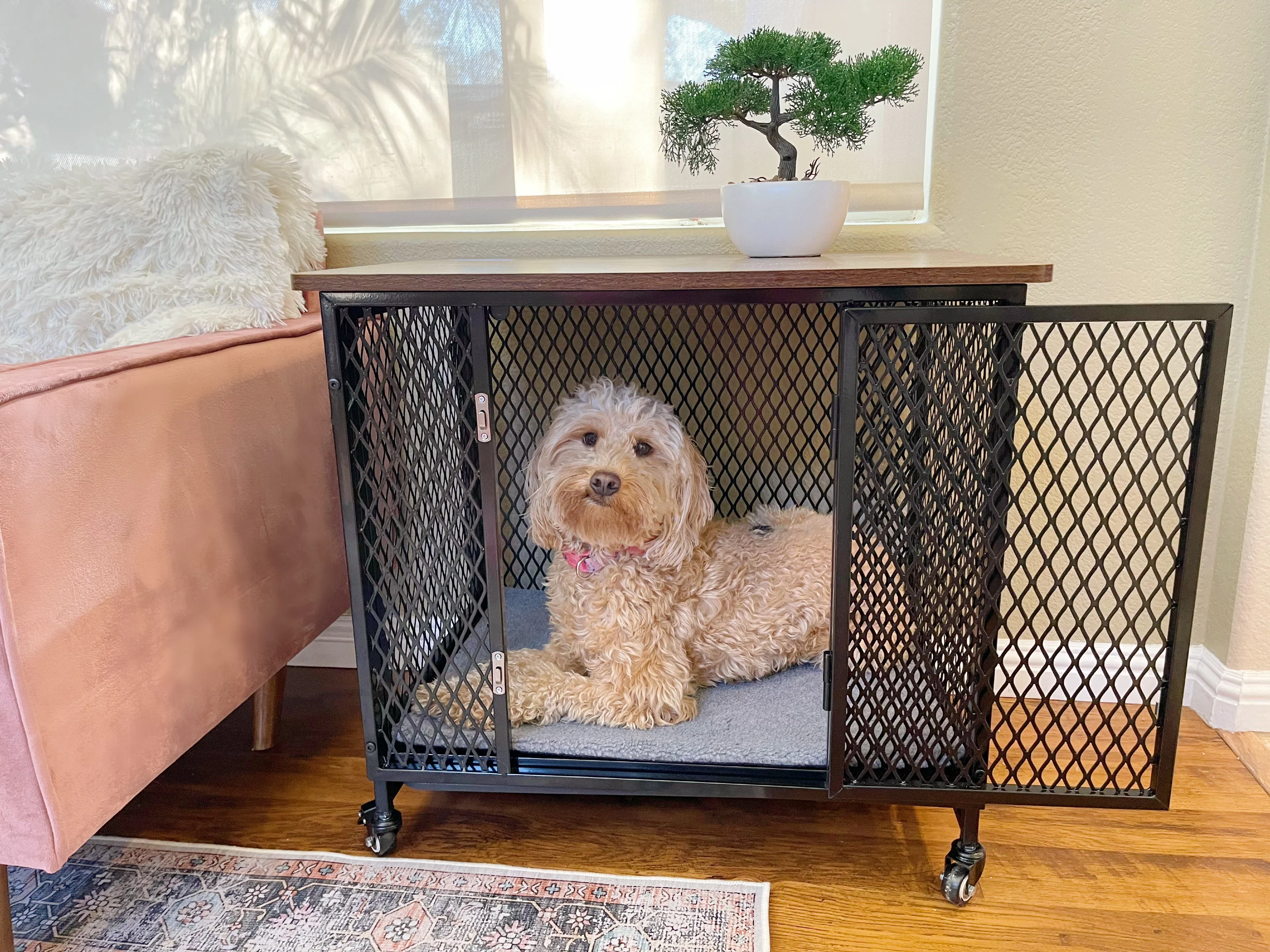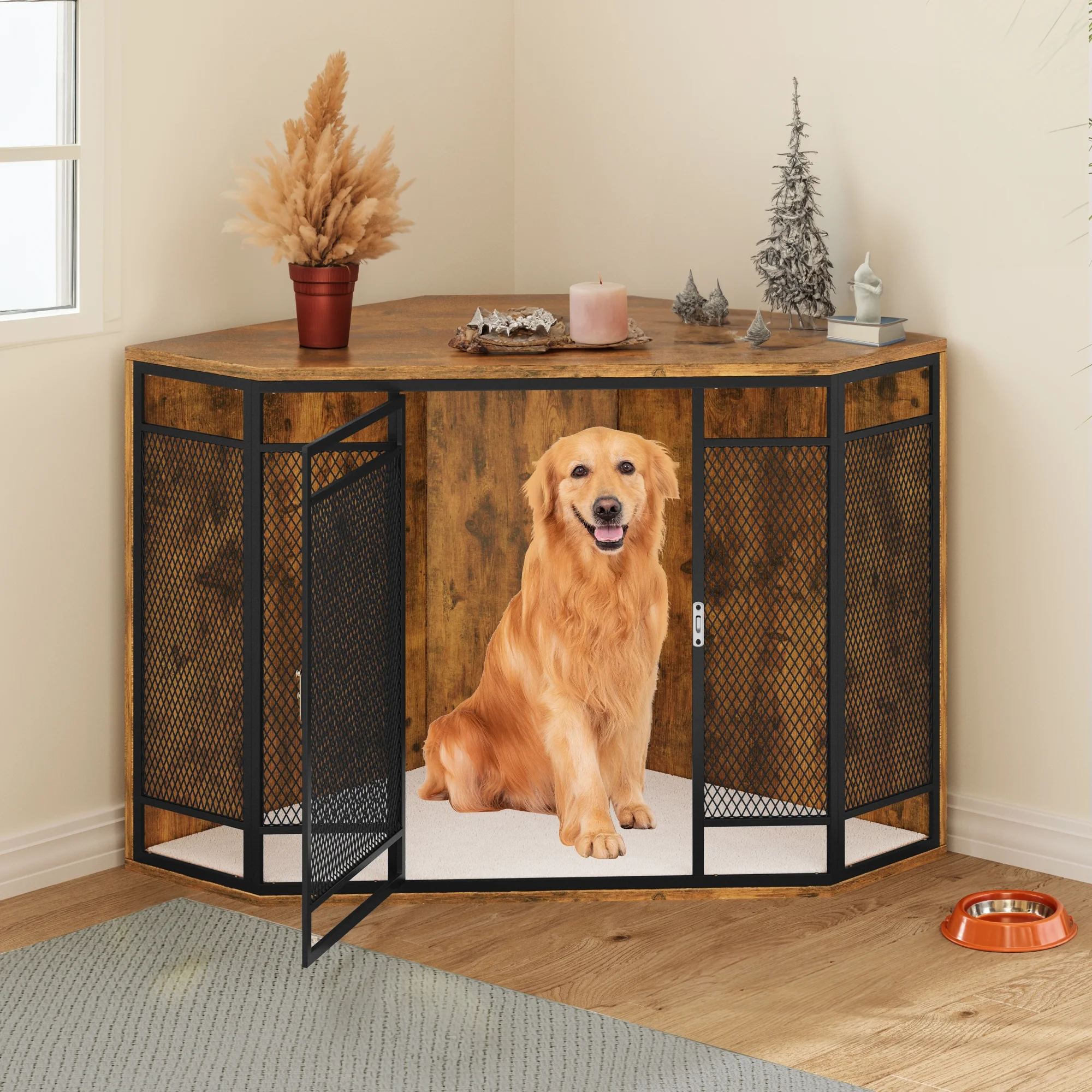Morgete Dog Crate Furniture Wooden Dog House with Cushion, Tray for Small Medium Large Dogs