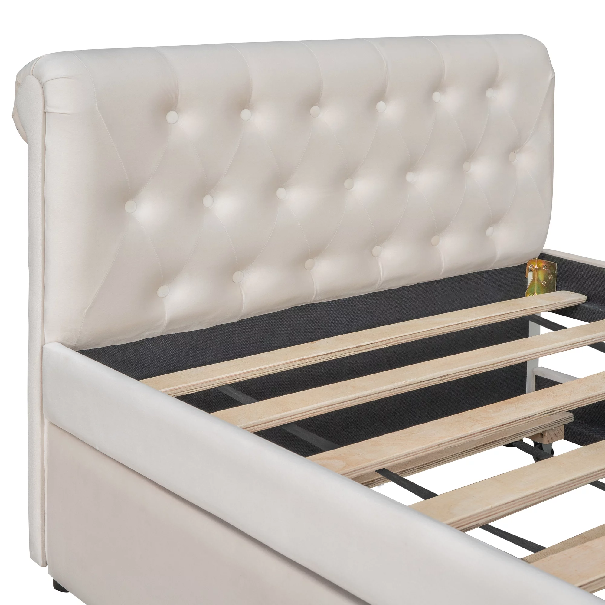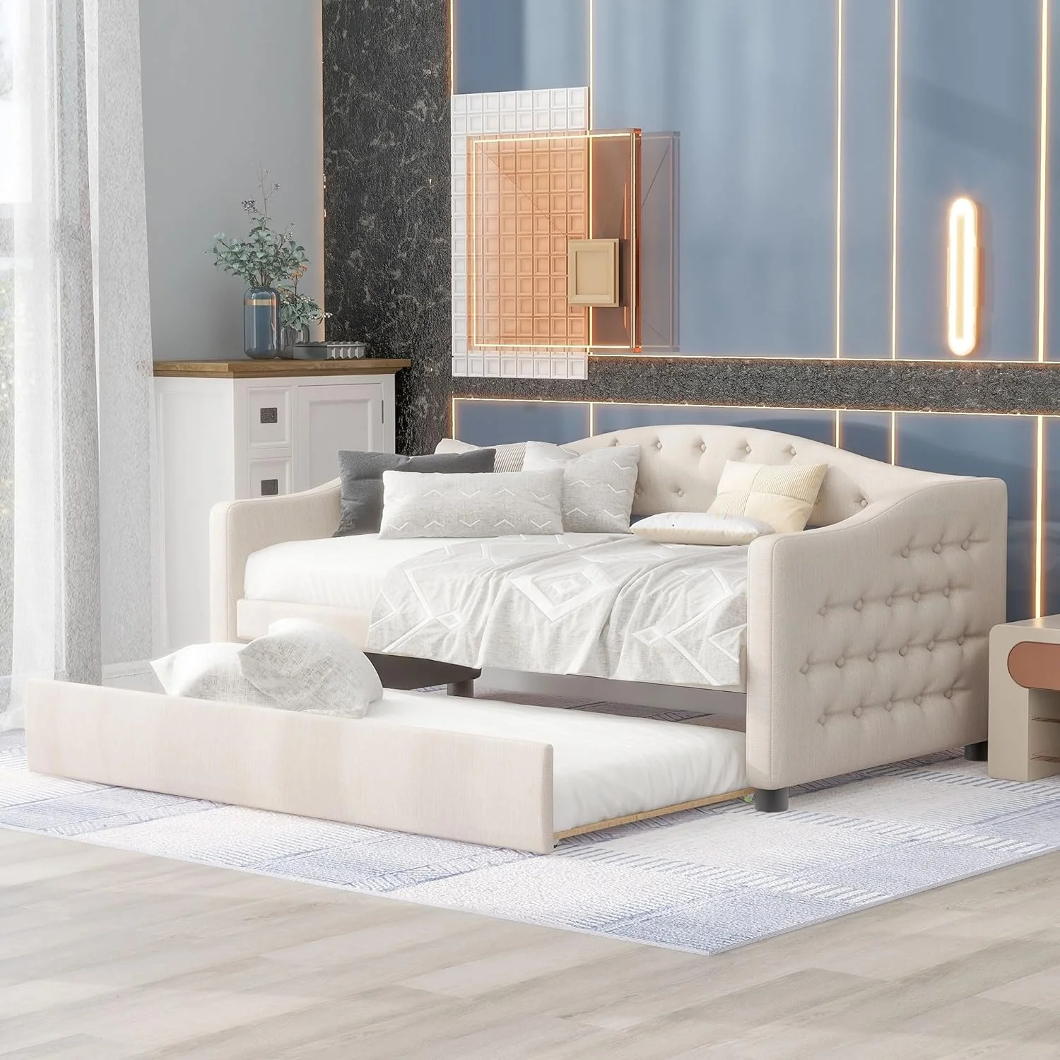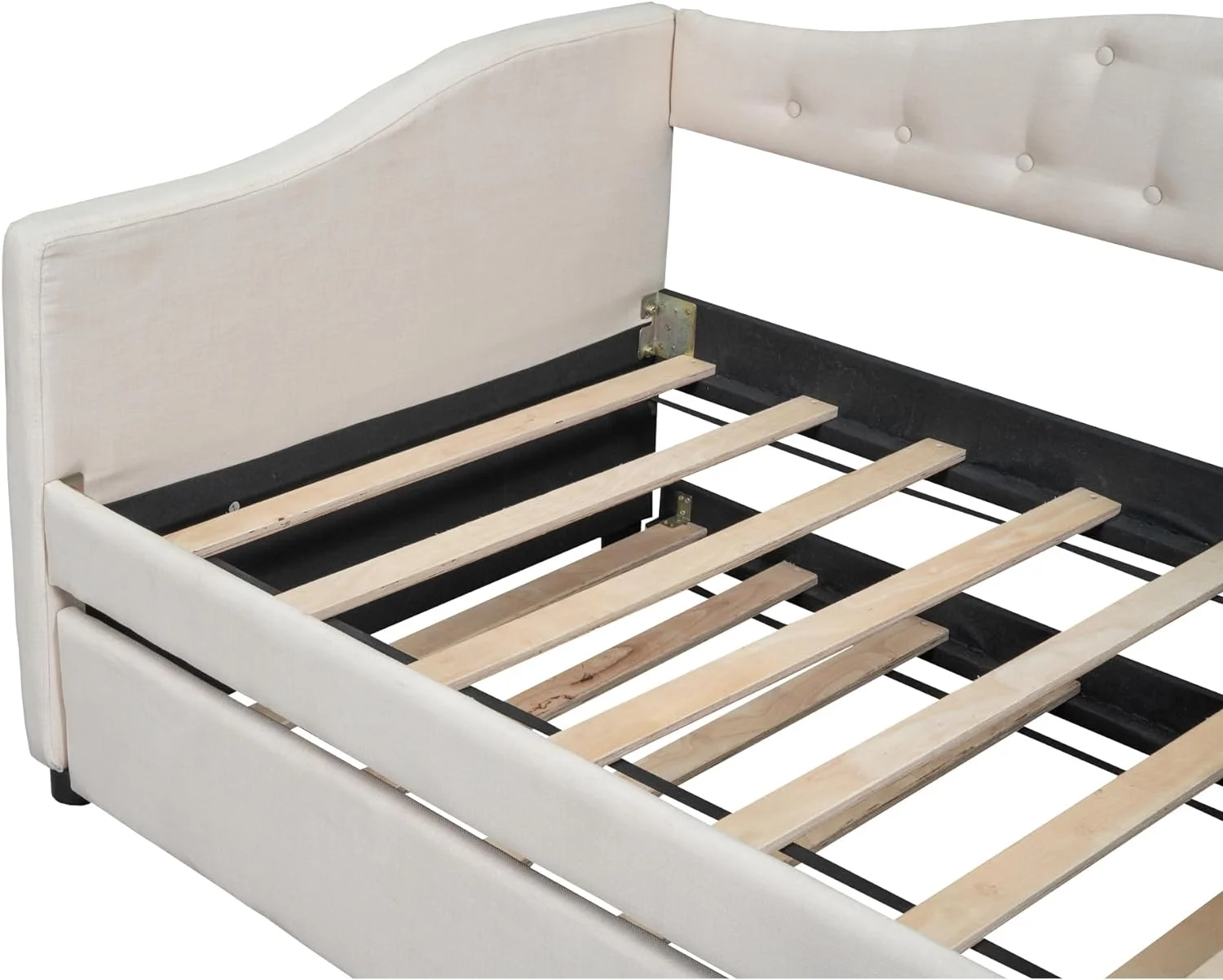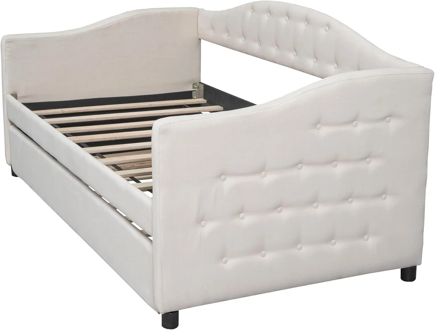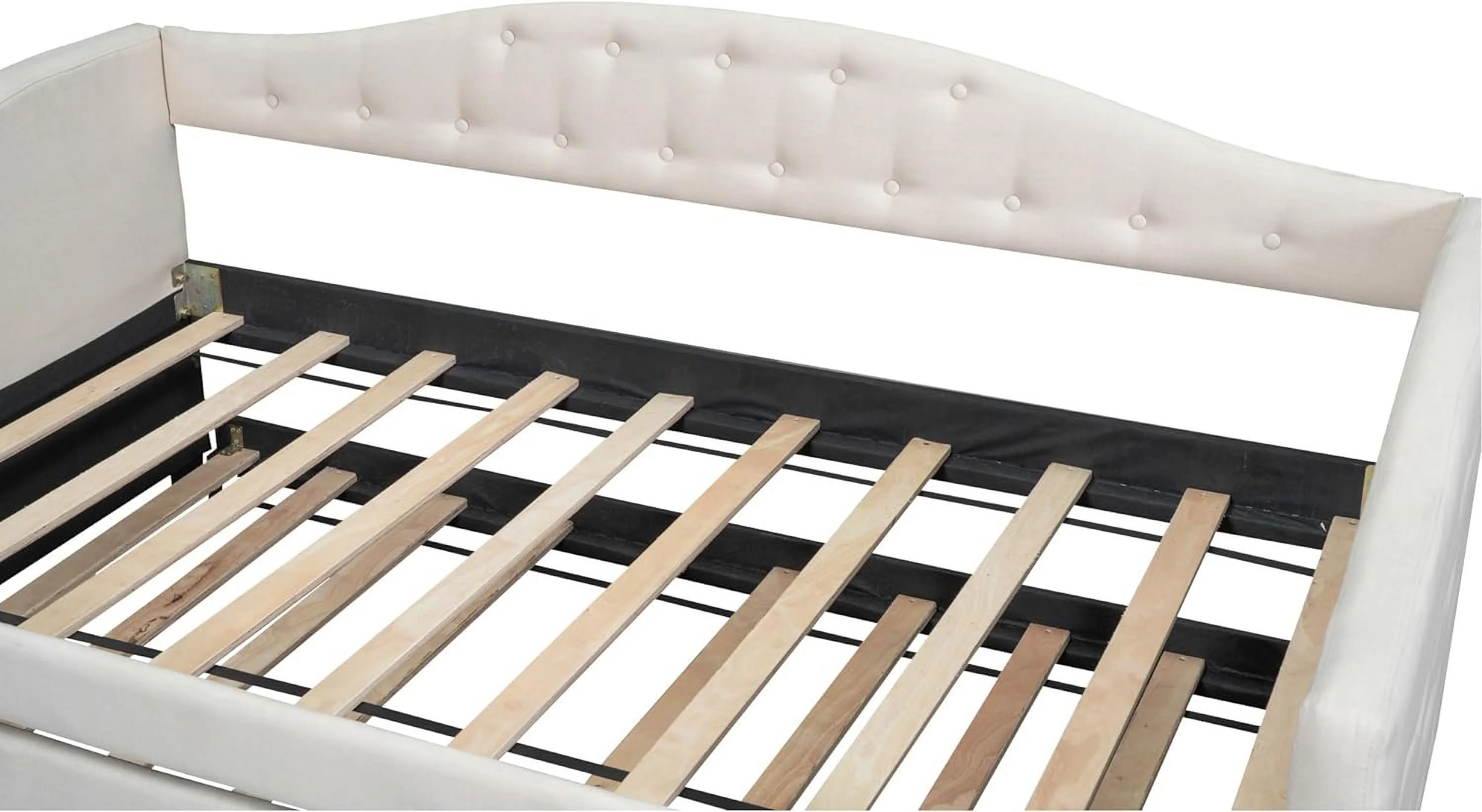 Upholstered Size Daybed Bed Frame For Boys Girls Kids Adults Toddler With Trundle, Beige