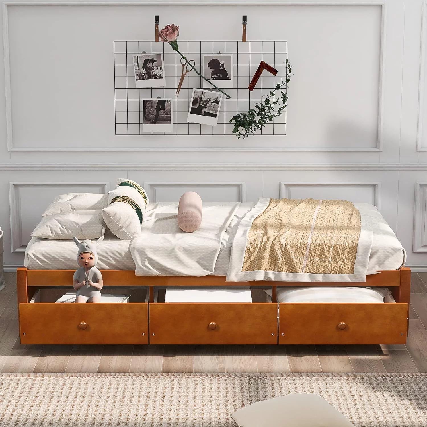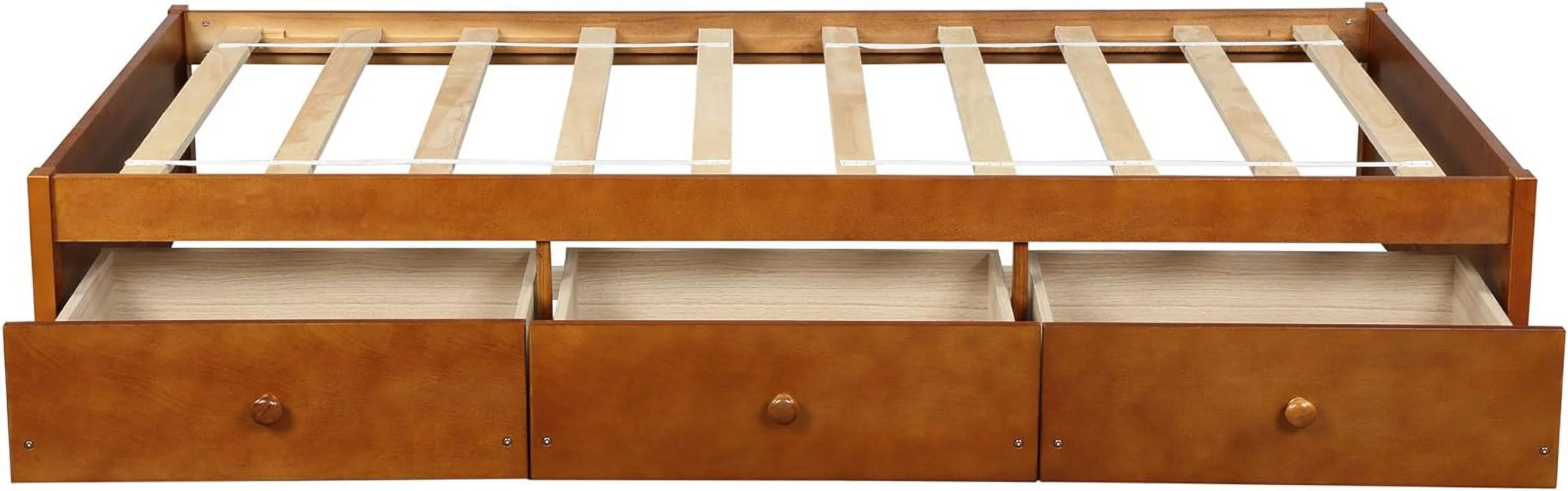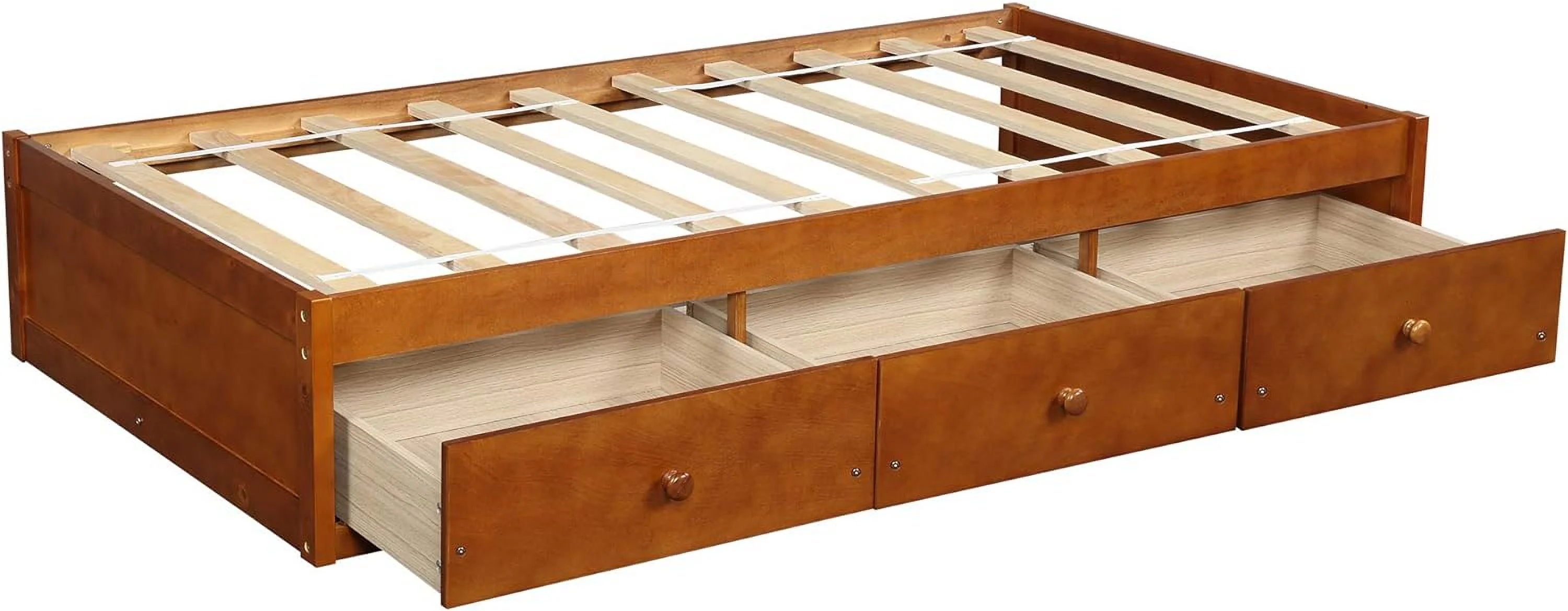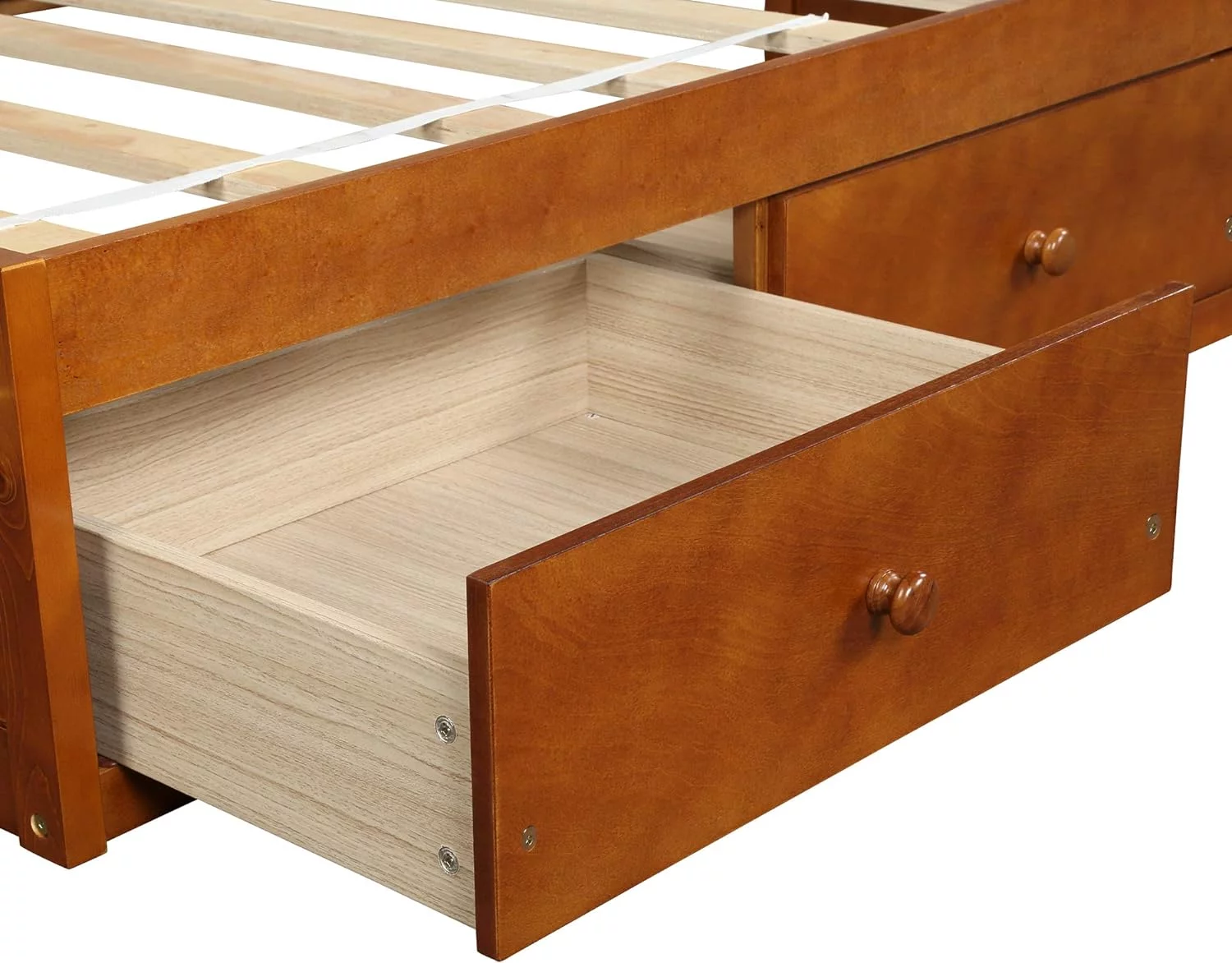 YGDU Wood Captain's Platform Storage Bed with 3 Drawers,Classic Bed Frame No Box Spring Needed Twin, Oak