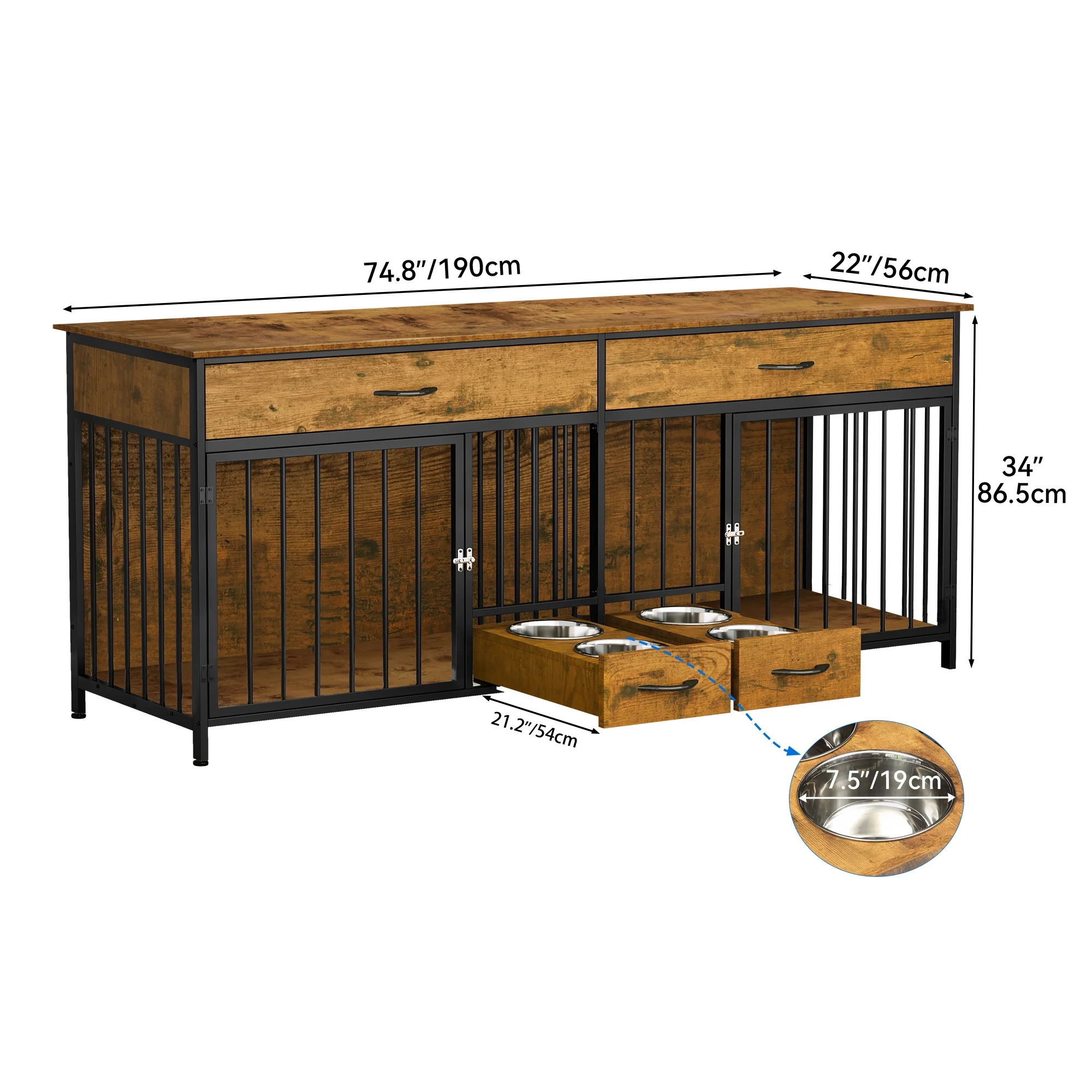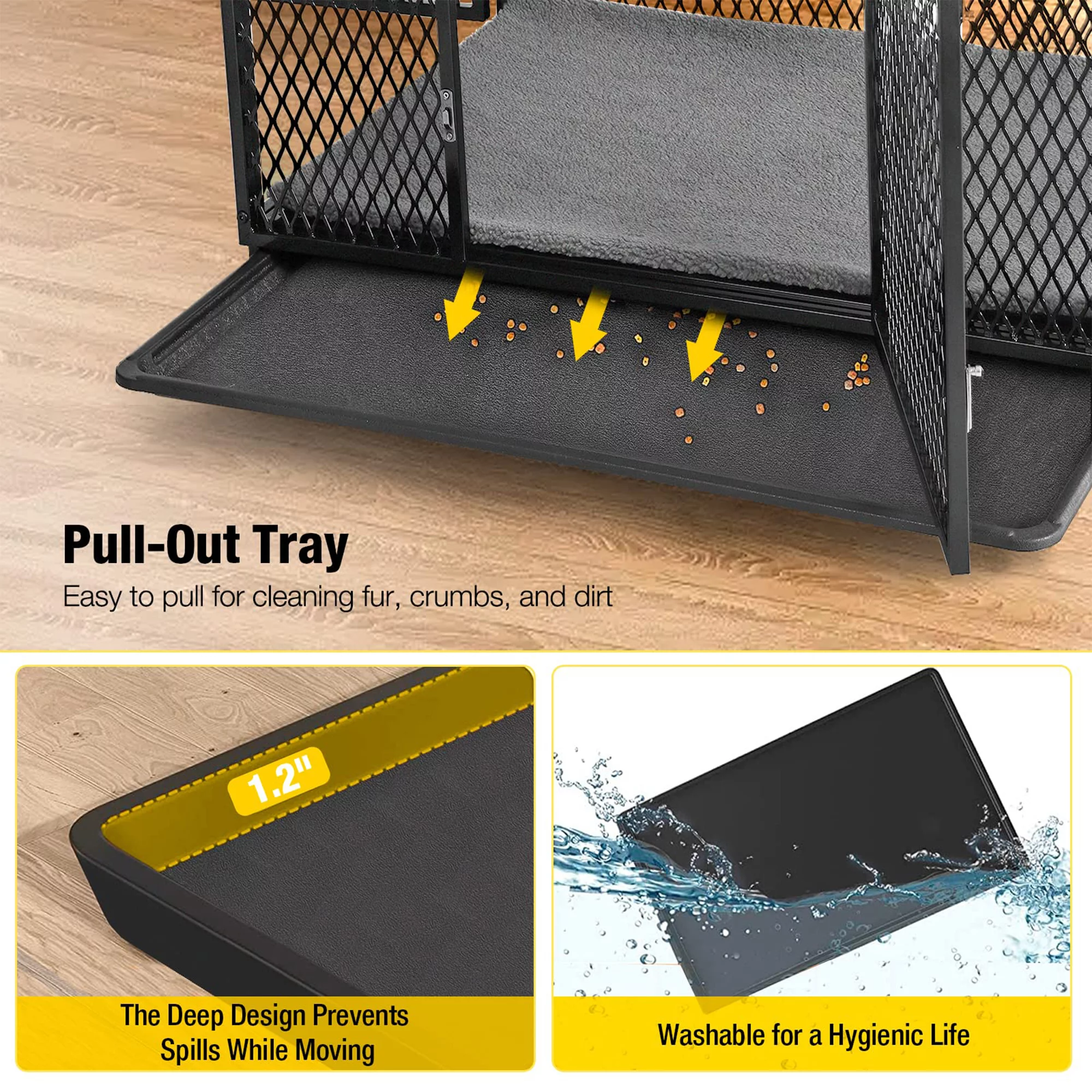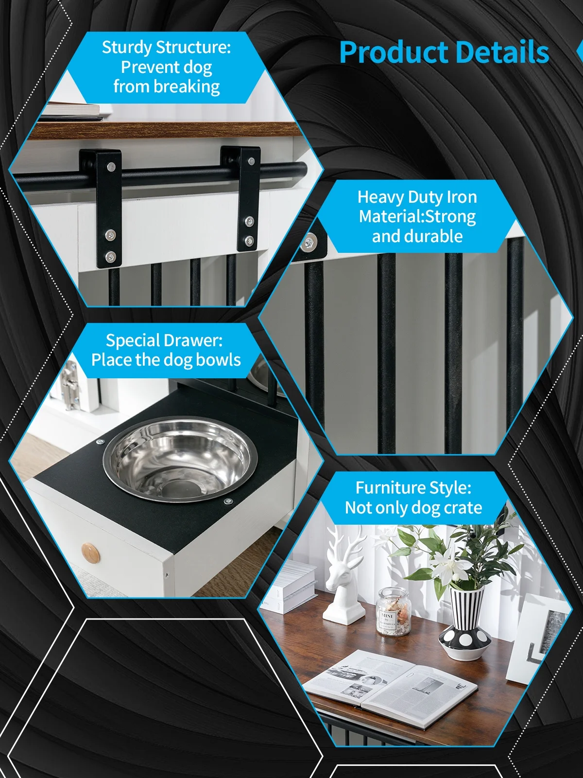 Pirecart 39.4in Wooden Dog Crate Furniture, Dog Kennels with Pull-Out Tray and 2 Bowls