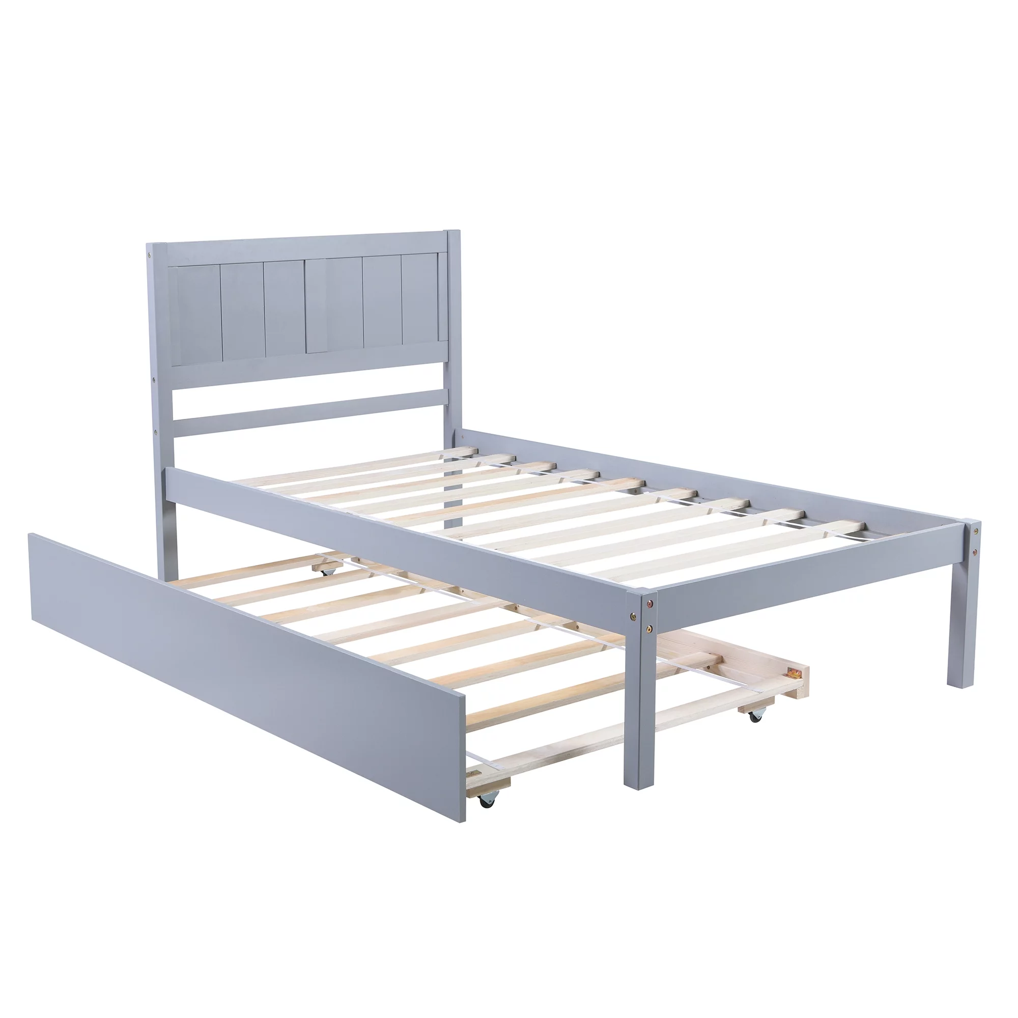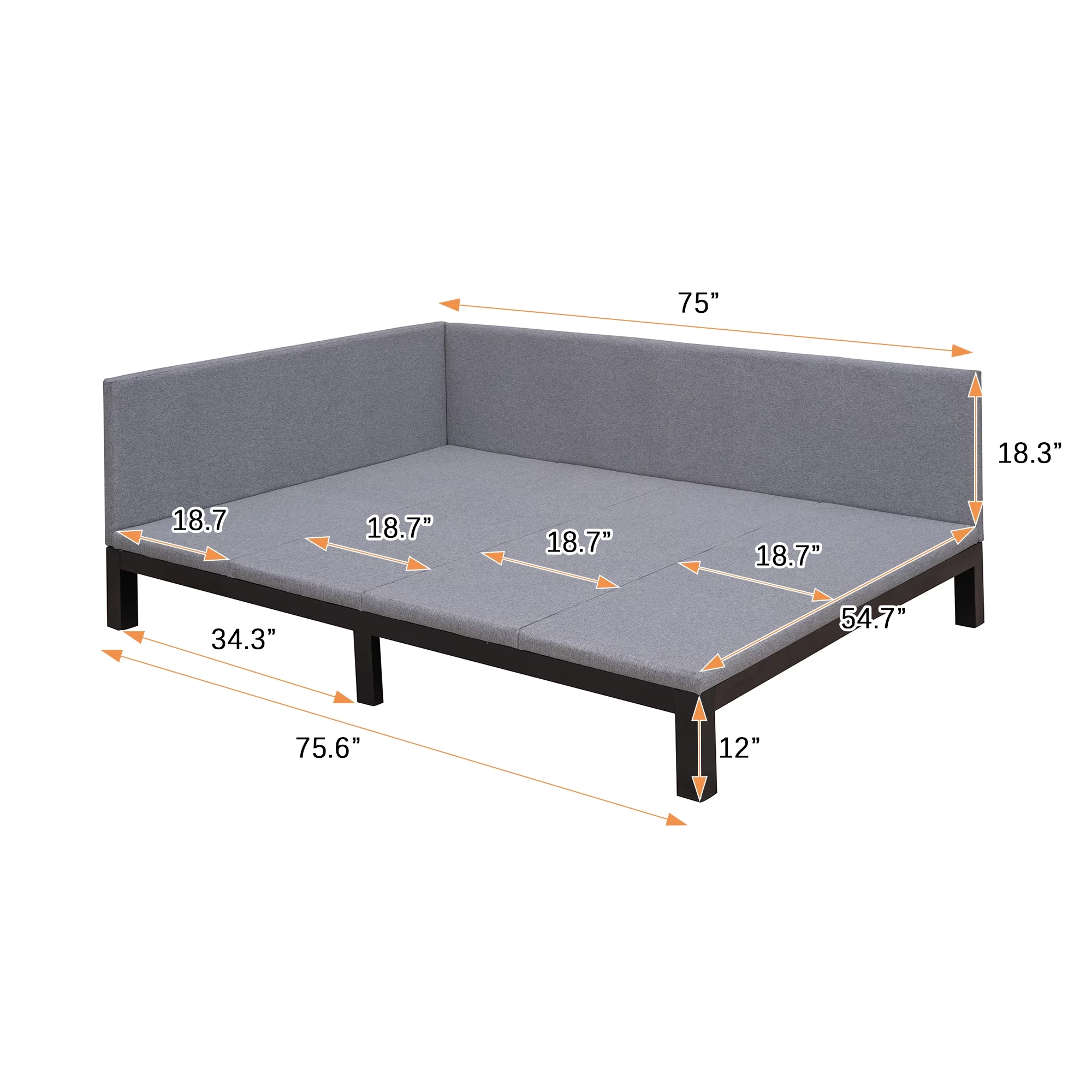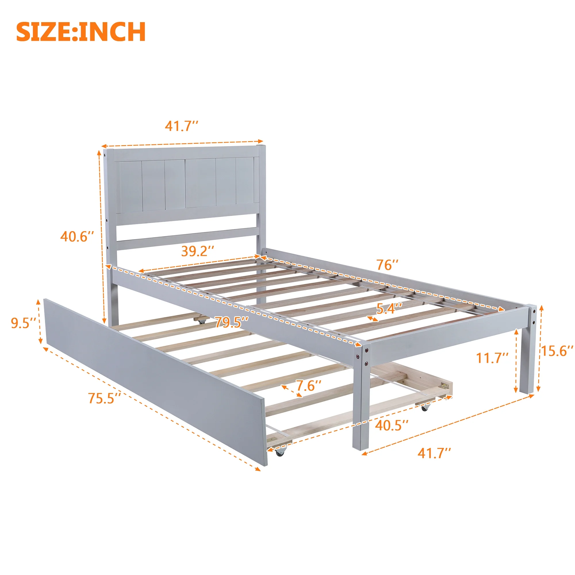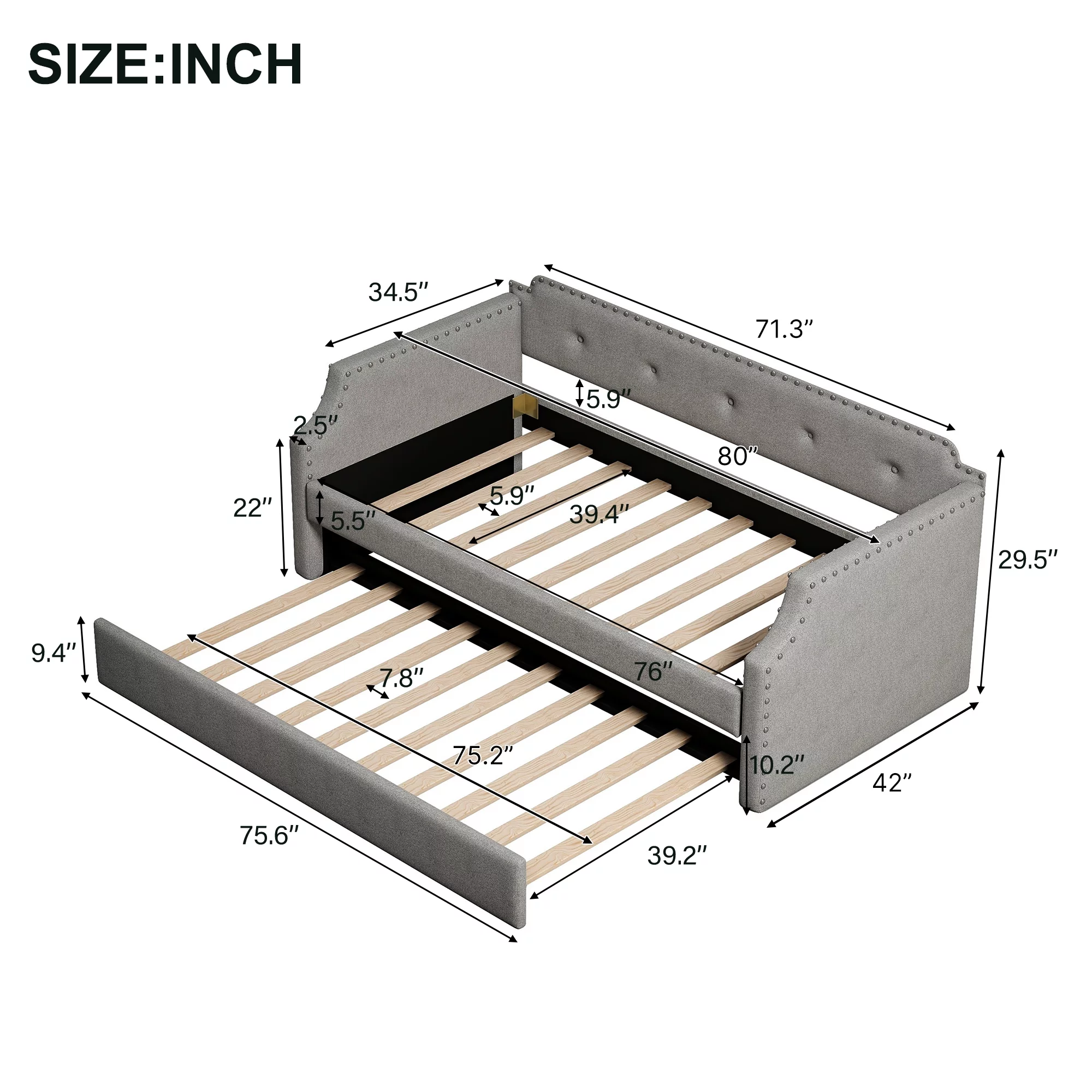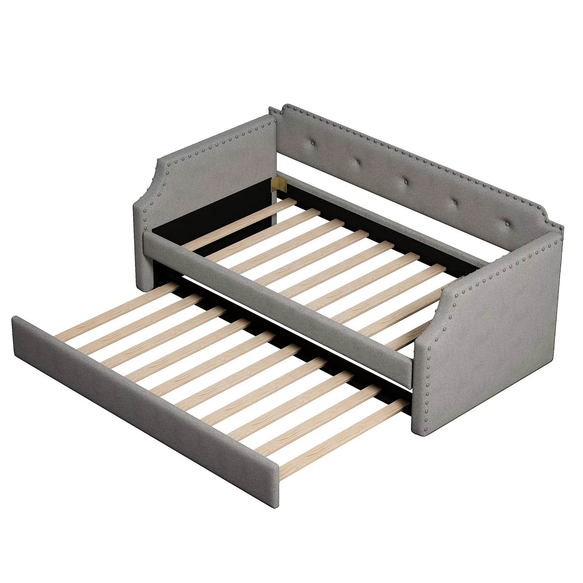 Upholstered Daybed with Trundle, Wood Slat Support,Upholstered Frame Sofa Bed , Twin,Gray