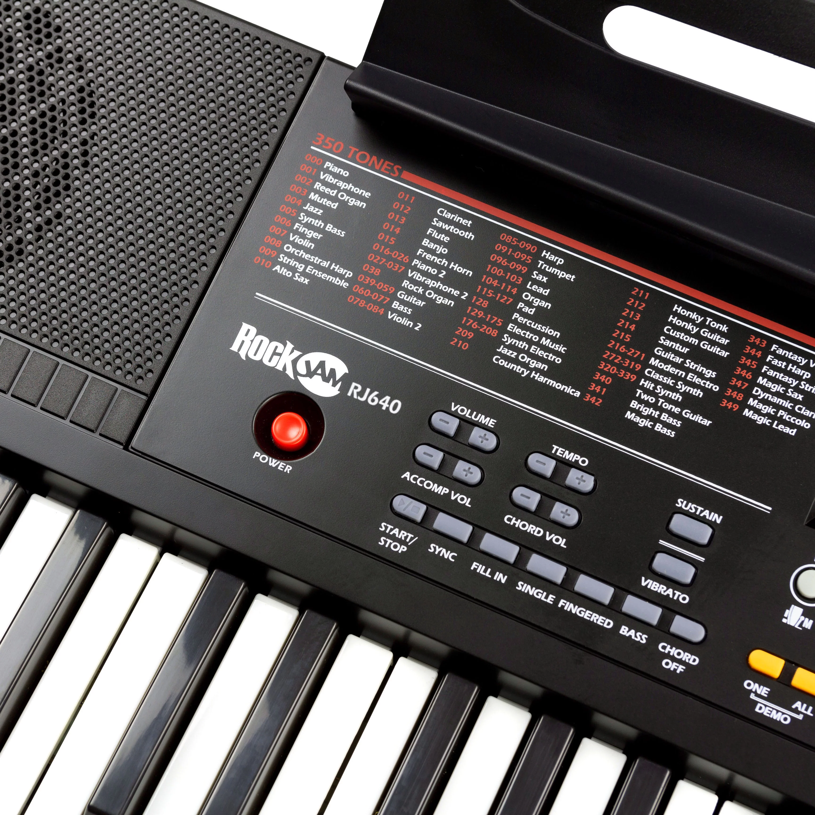 RockJam 61-Key Black Electronic Keyboard Piano with Sheet Music Rest, Piano Note Stickers & Lessons