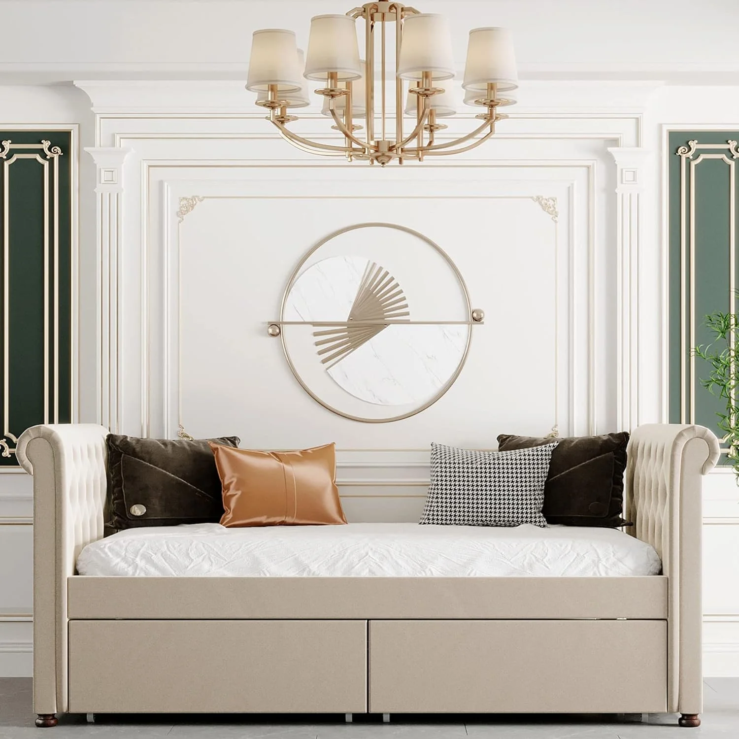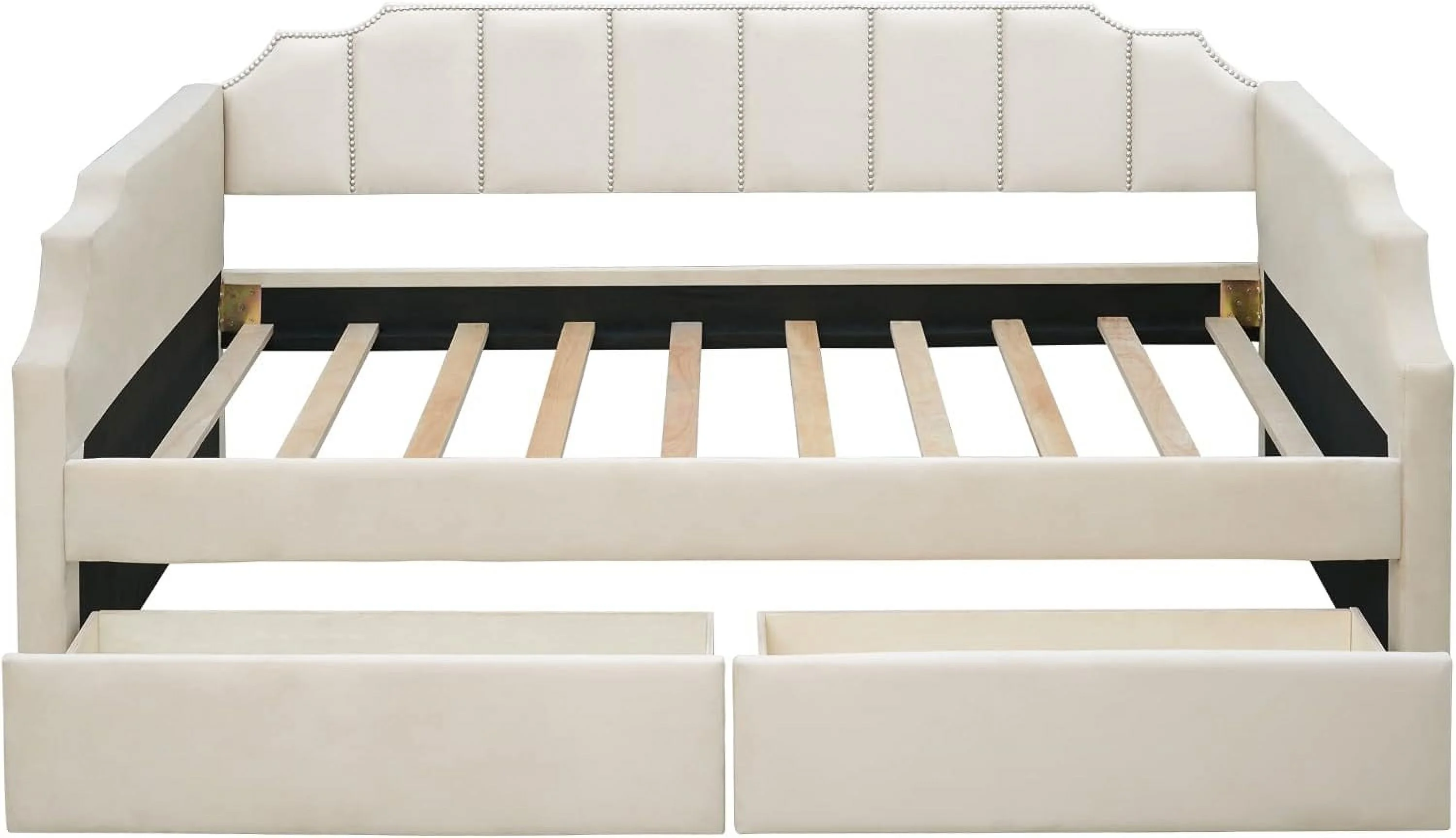 Size Upholstered Daybed With Storage Drawers, Daybed Frame, Classic Style Sofa Bed, No Box Spring Needed – Beige