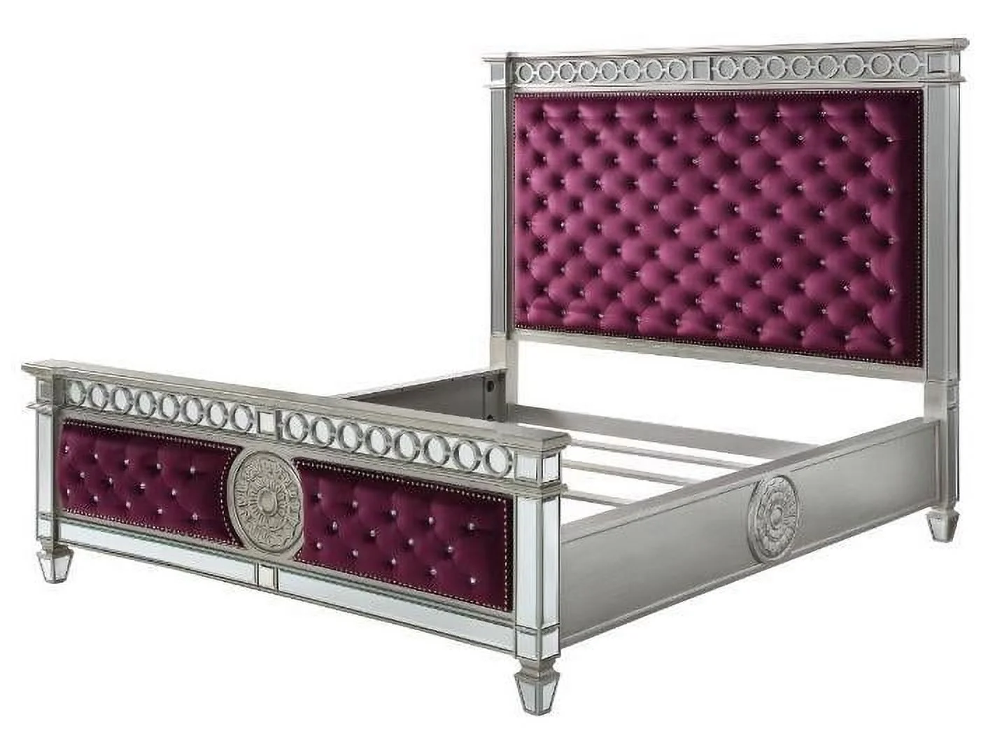Burgundy Velvet & Mirrored Eastern King Bed Bedroom Set Acme Varian 27367EK-3pcs