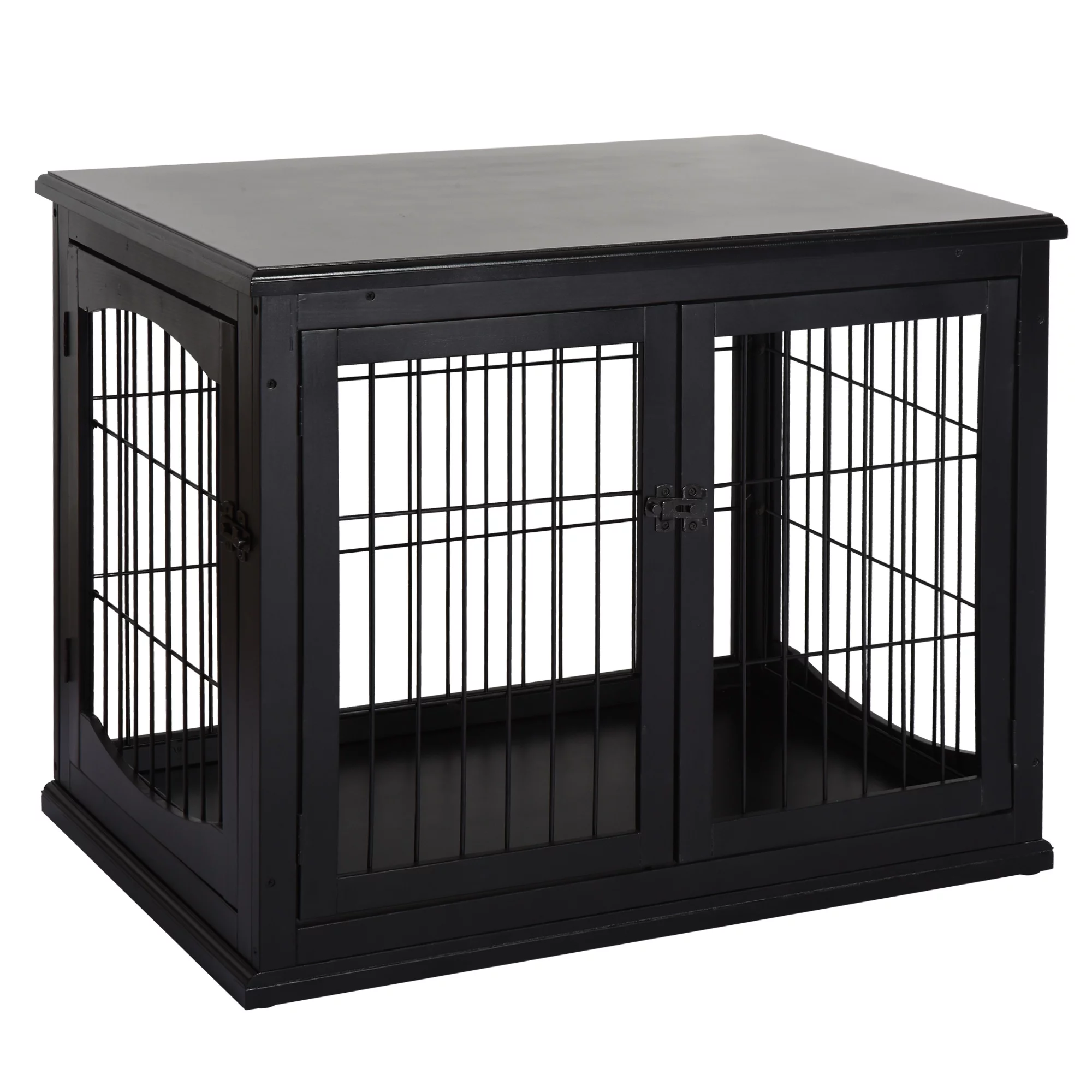 Pawhut Wooden Decorative Dog Cage Pet Crate Kennel with Double Door Entrance, Black, 26''