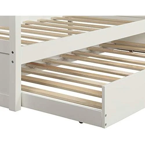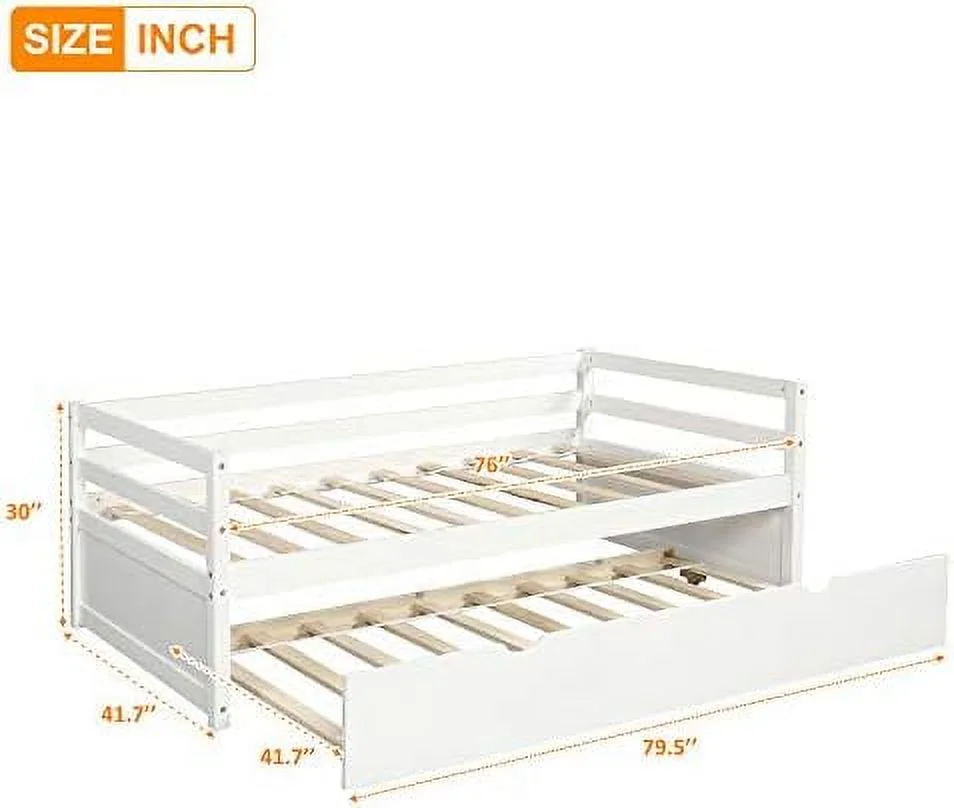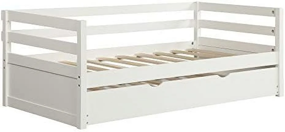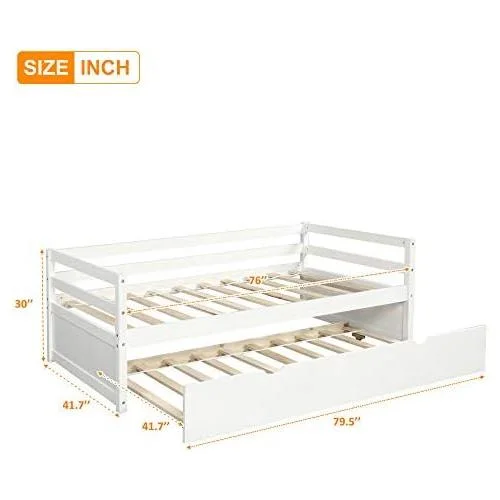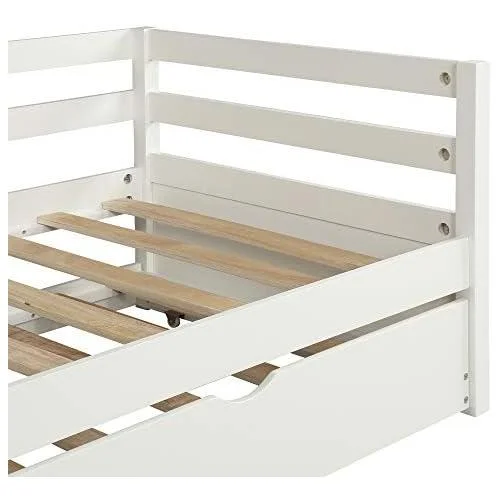 Daybed With Trundle, Solid Wood Captains Bed Size Sofa Bed Frame (White)