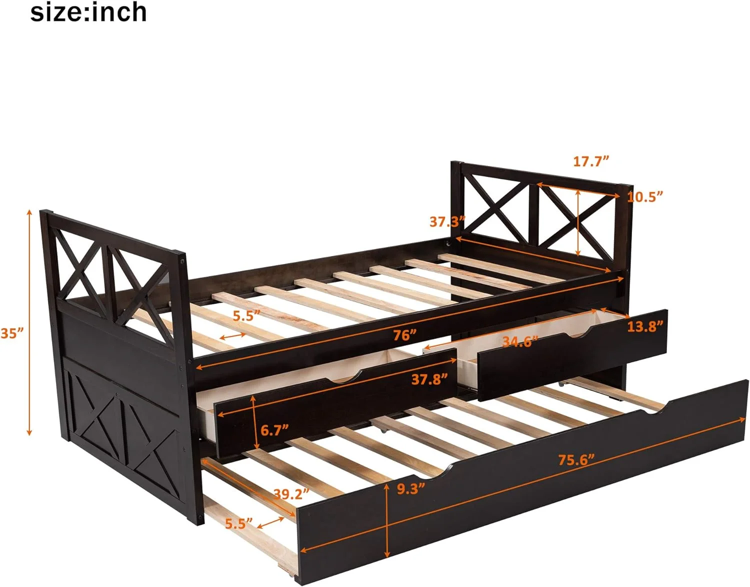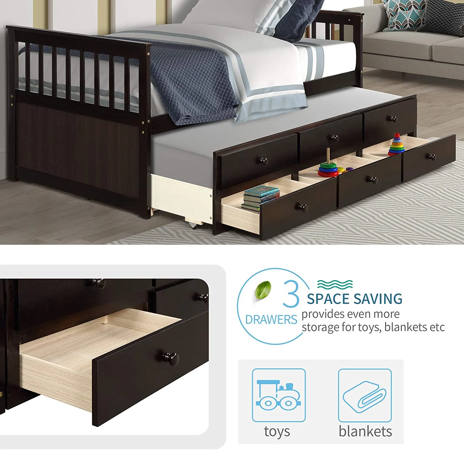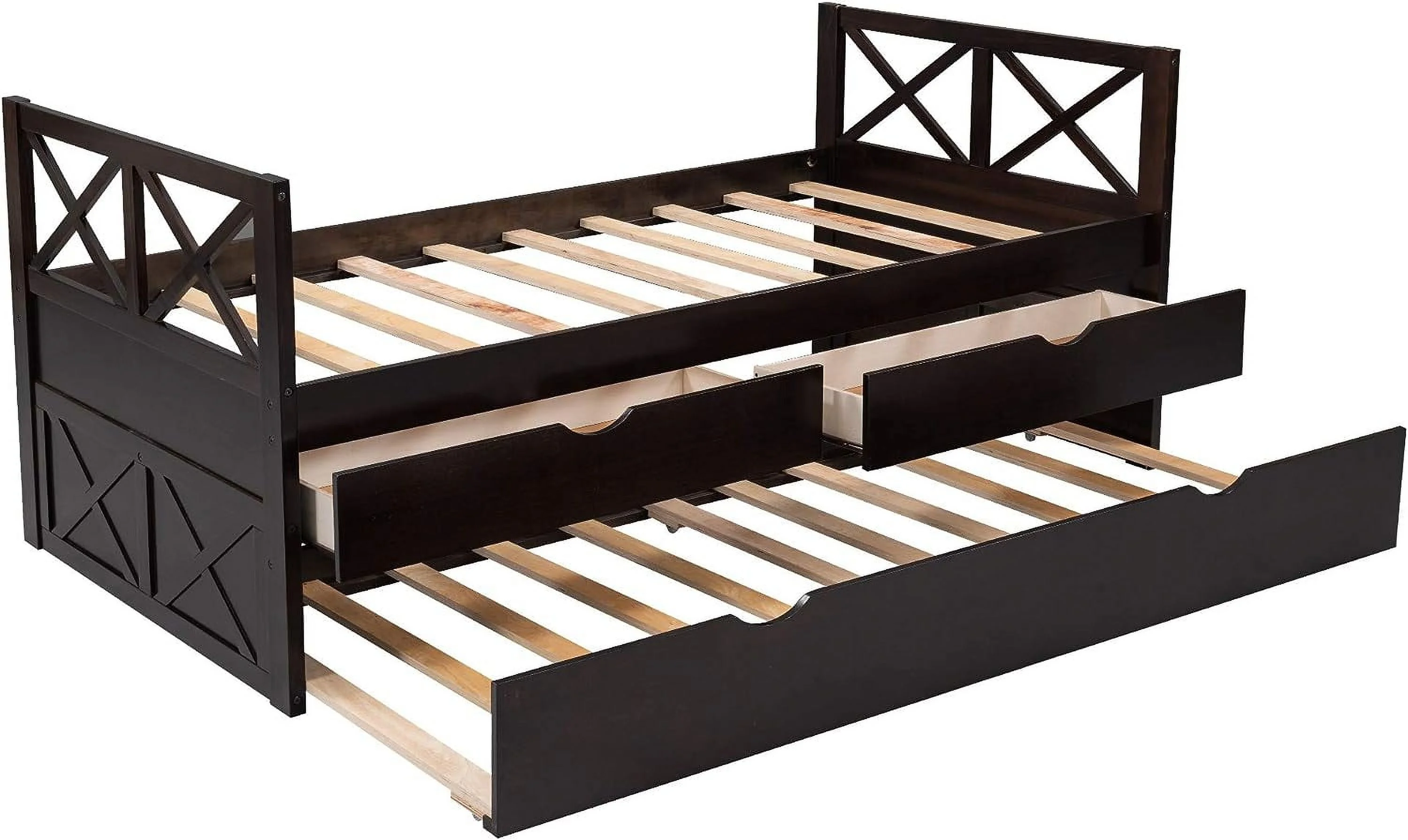 Captain\u2019s Bed Storage daybed with Trundle and Drawers for Kids Guests (Espresso)