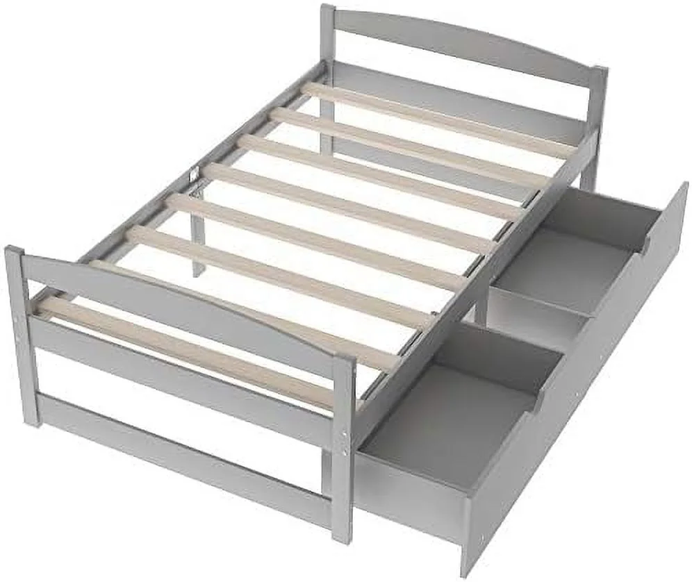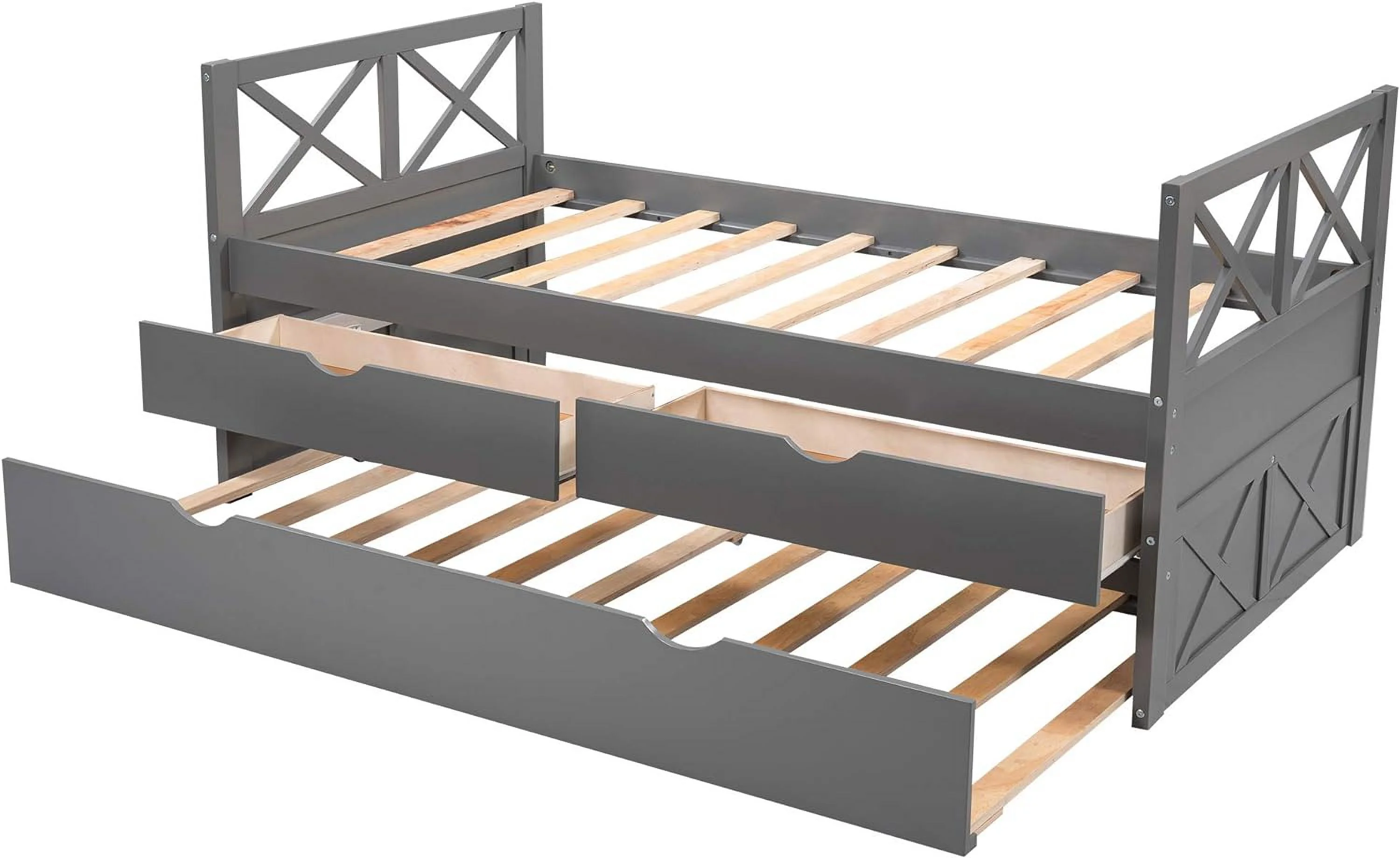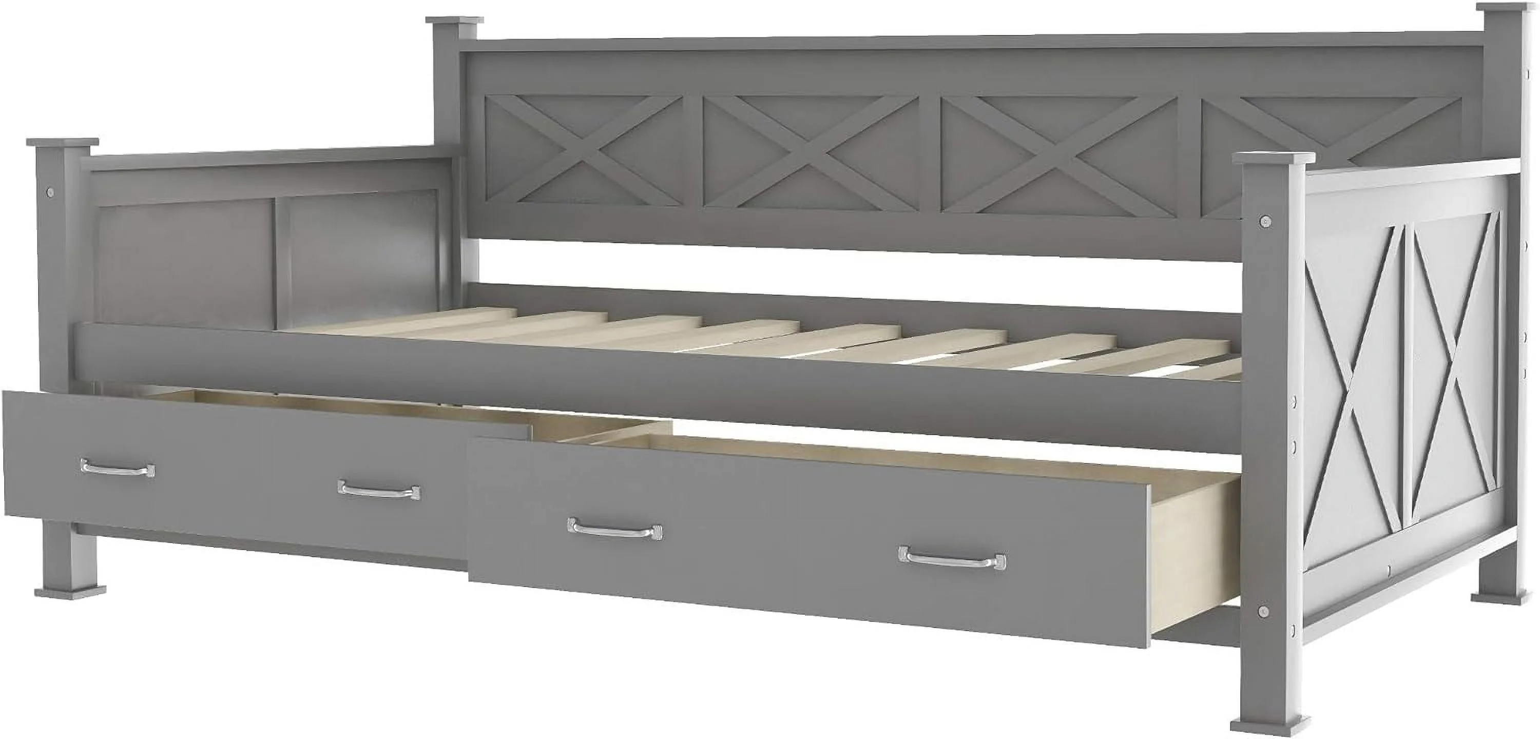 Size Daybed, Platform Bed With Drawers, Wood Bed Frame, Daybed Captains Bed For Bedroom, Gray