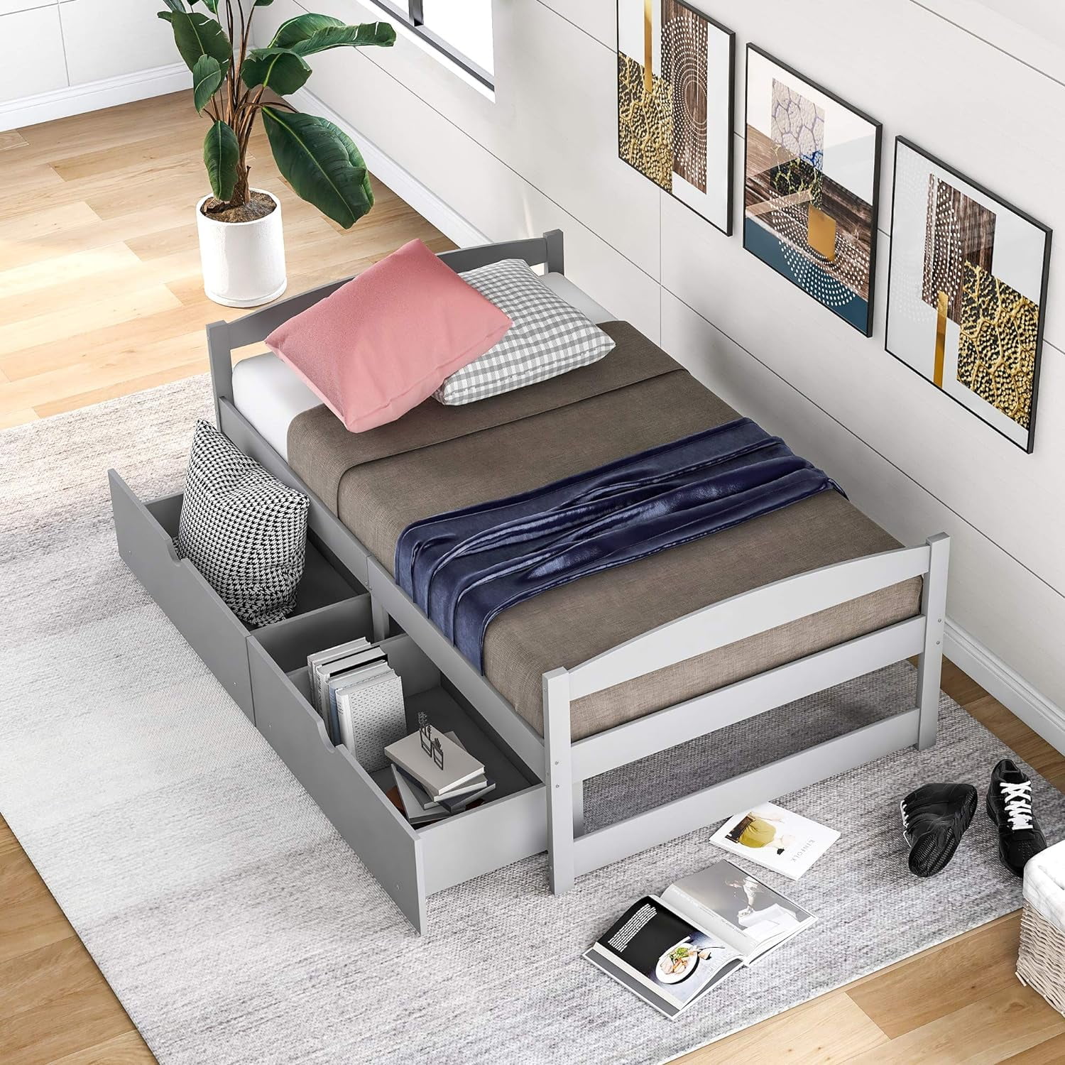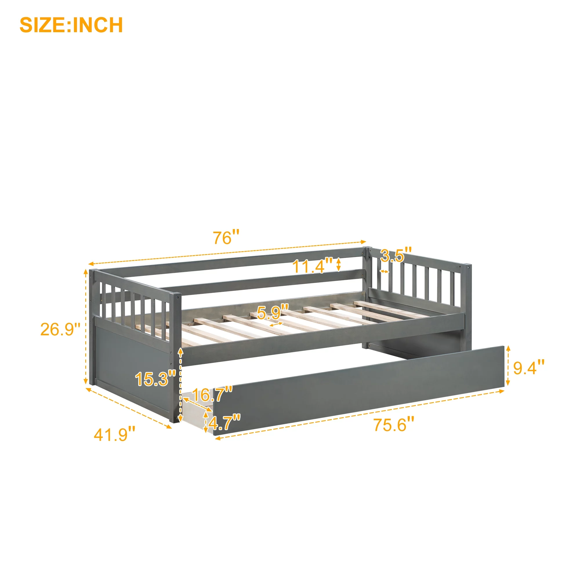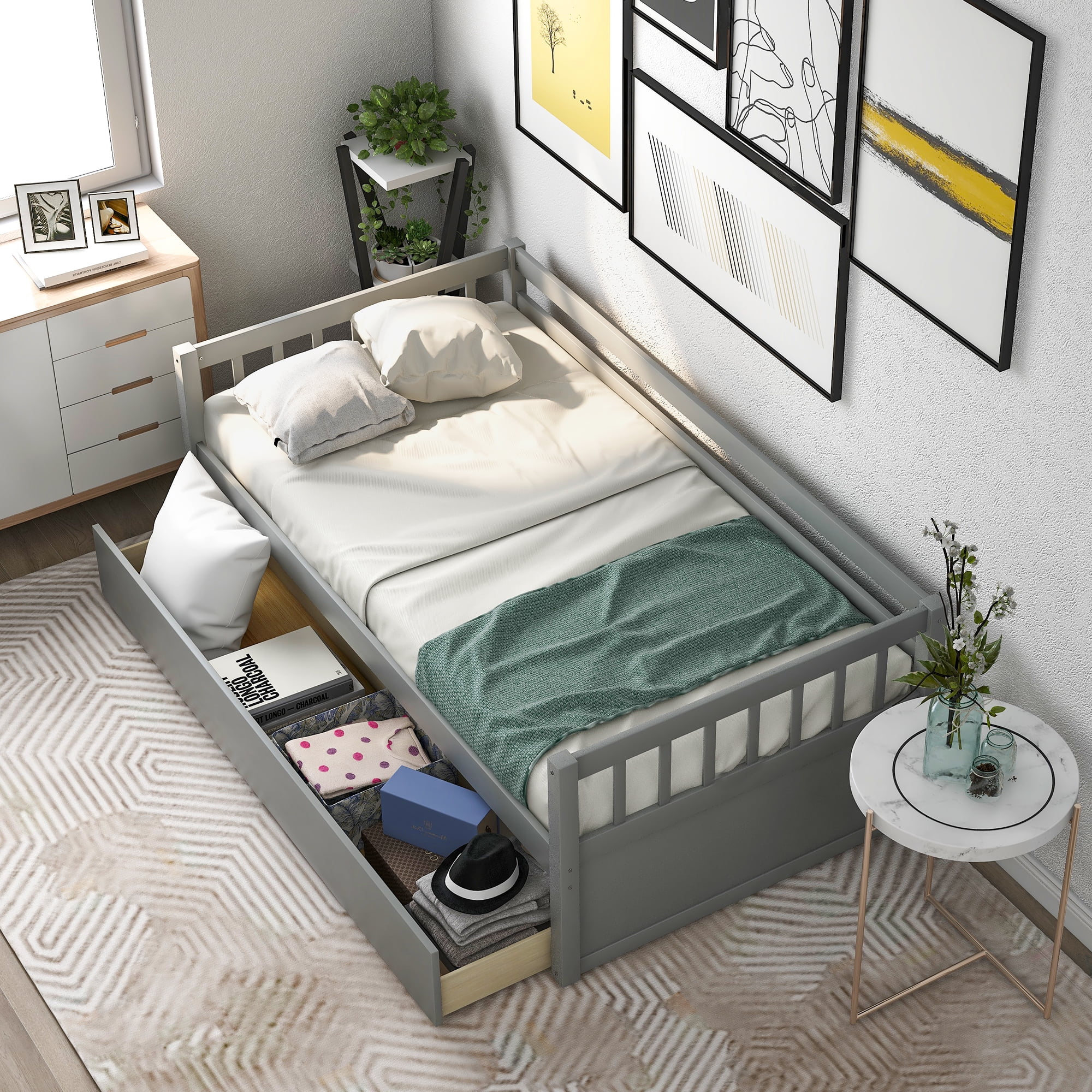Size Daybed, Platform Bed With Drawers, Wood Bed Frame, Daybed Captains Bed For Bedroom, Gray