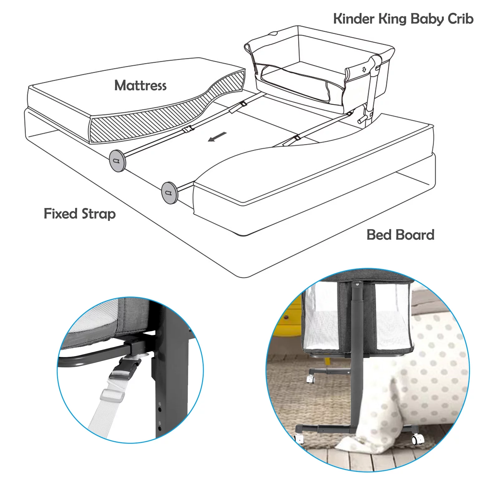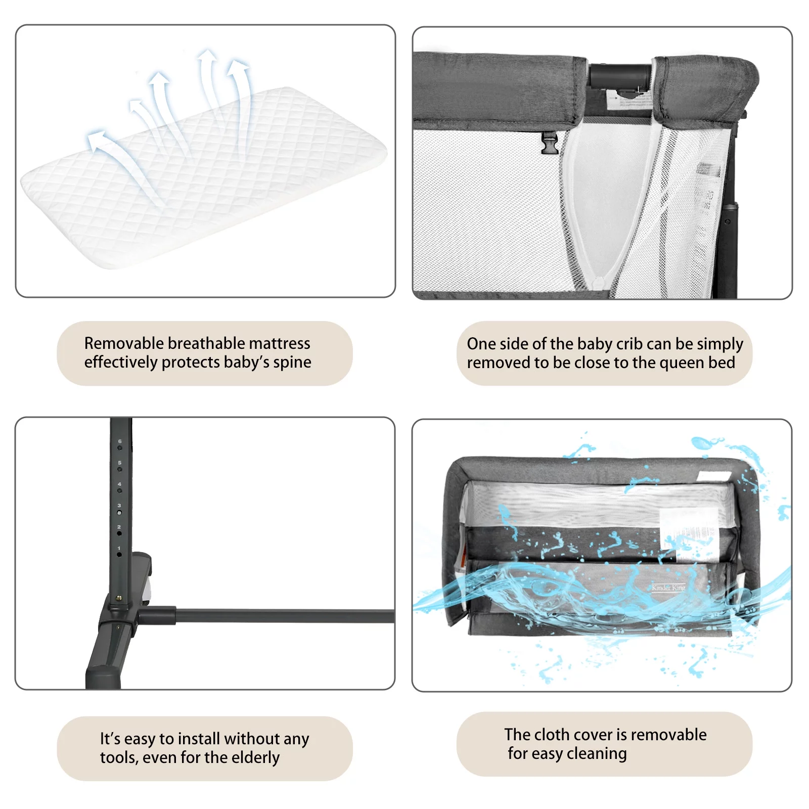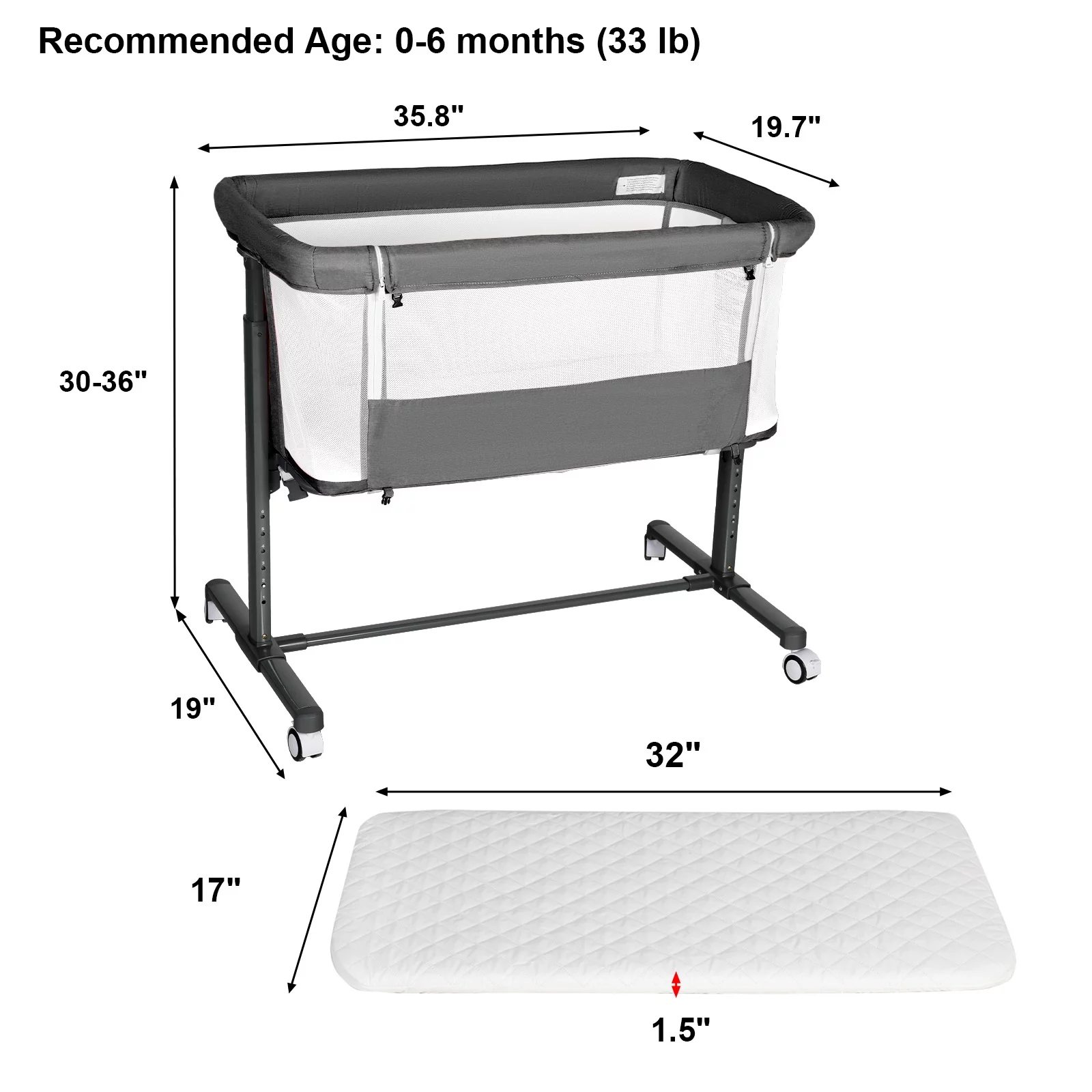 AILEEKISS Baby Bassinet with Wheels Adjustable Bedside Sleeper Bassinet Newborn Baby Crib, Grey