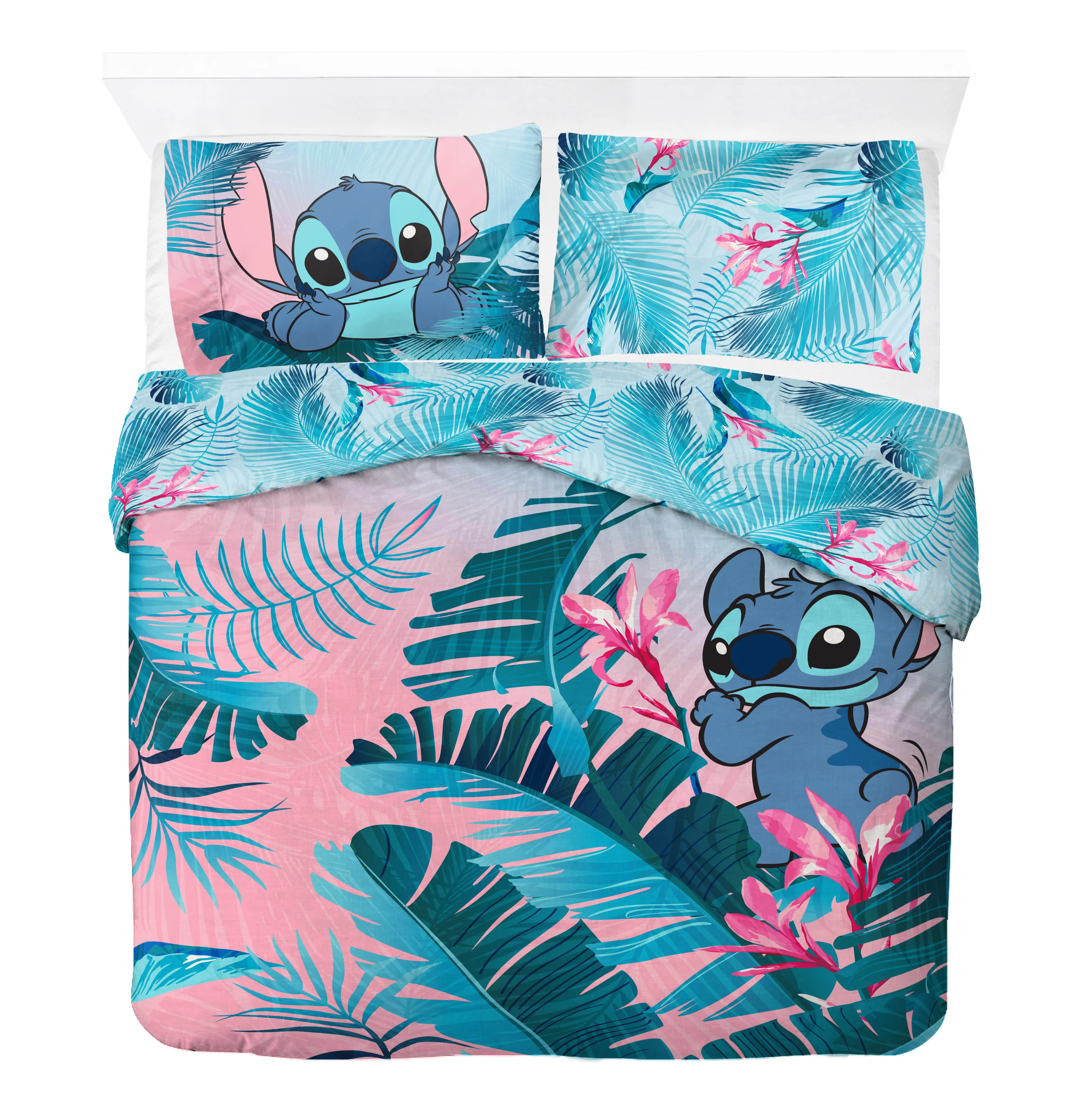 Lilo & Stitch Tropical Flowers Kids Queen Bed in a Bag Bedding Set w/ Reversible Comforter