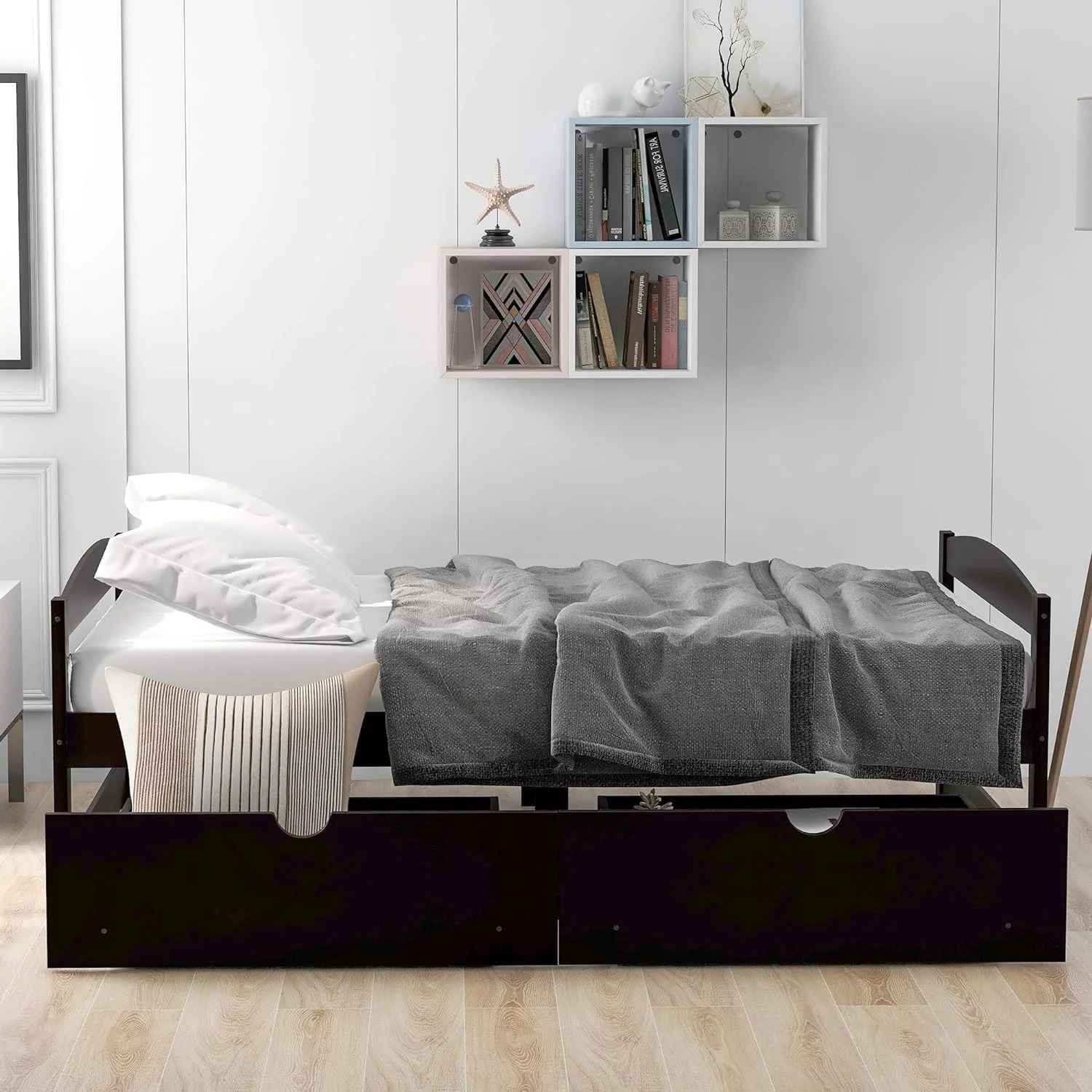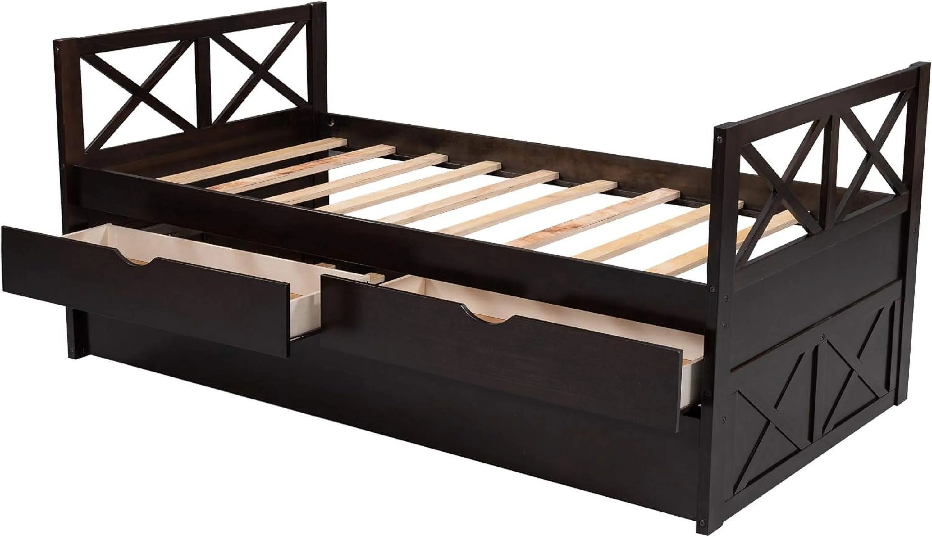 Size Daybed, Platform Bed With Drawers, Wood Bed Frame, Daybed Captains Bed For Bedroom, Espresso