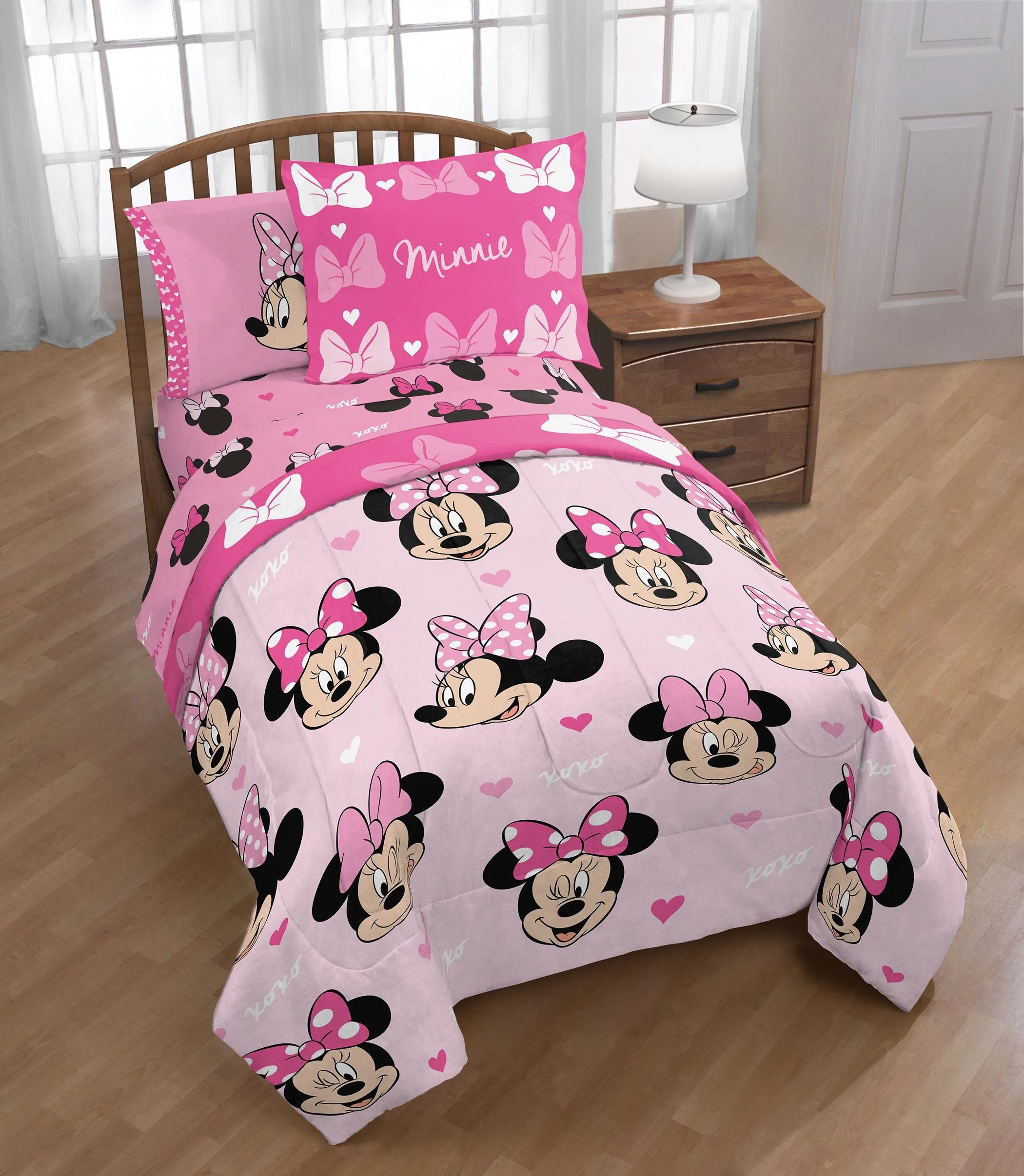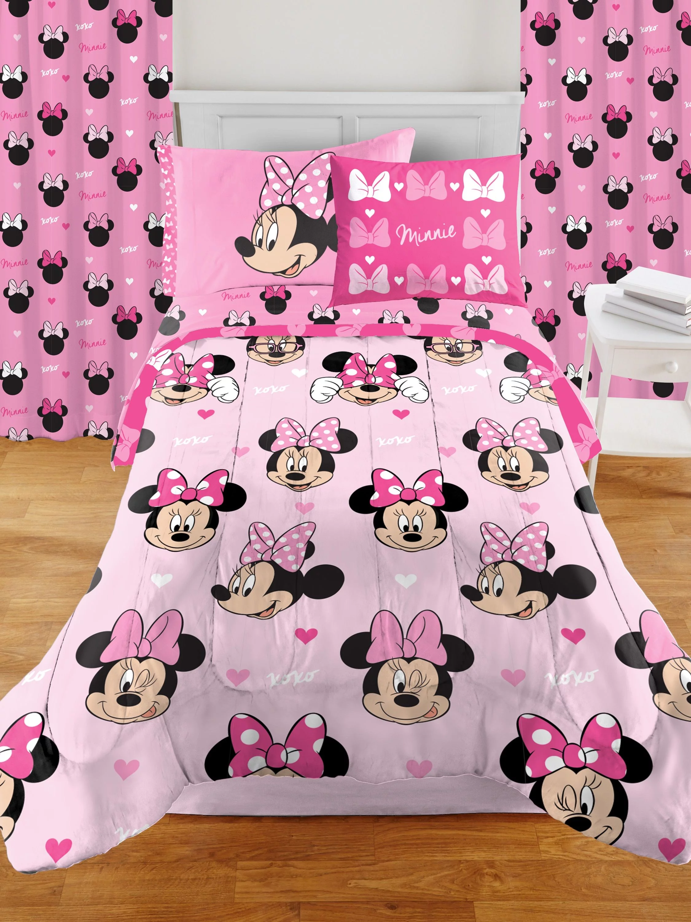 Minnie Mouse Cartoon 9 Pieces Comforter Sets, With Shams Pillowcases Flat Sheet Fitted Sheet Window panels