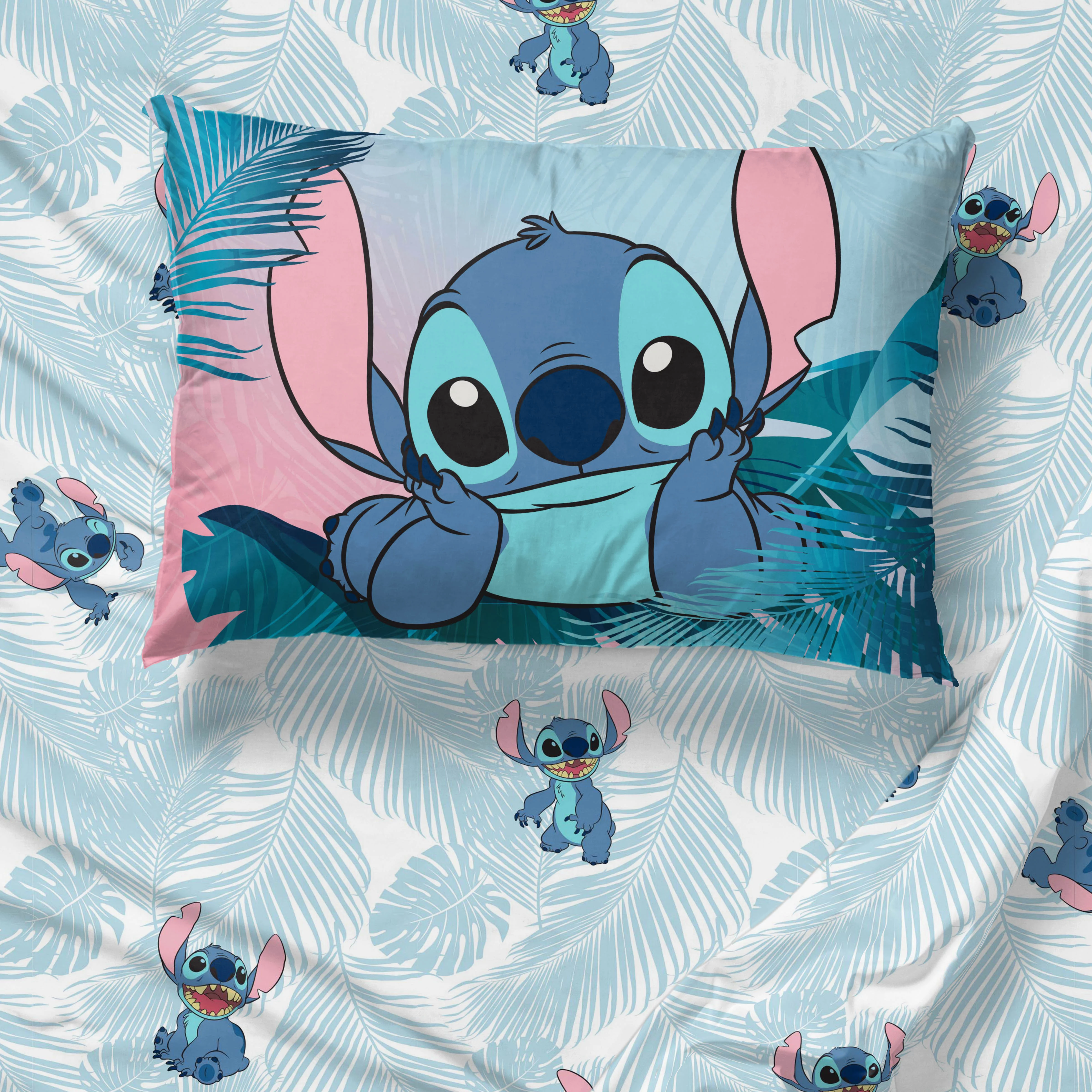 Disney Lilo and Stitch Pastel Blue 5 Piece Queen Bed Set W/Tote Bag, 100% Microfiber, Novelty