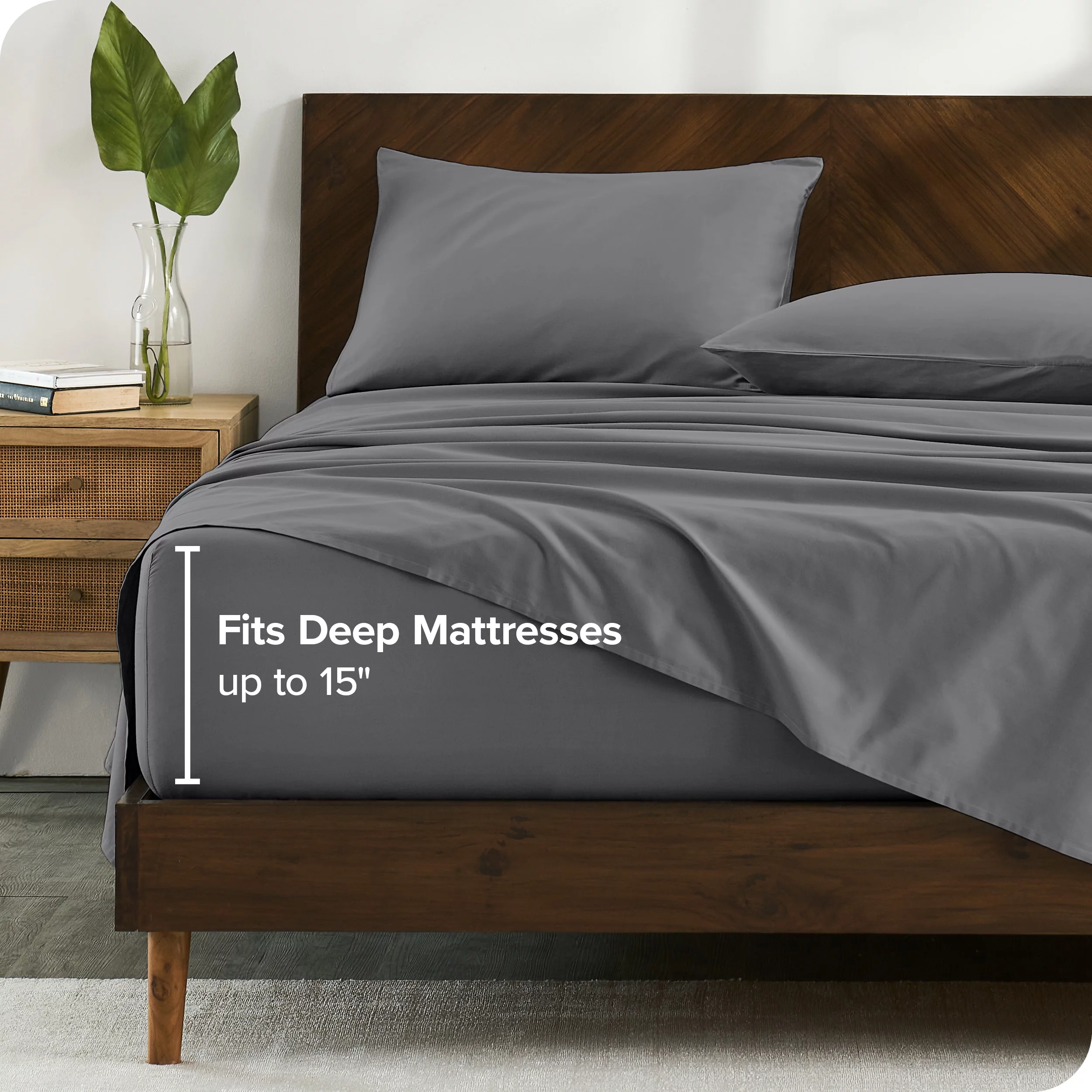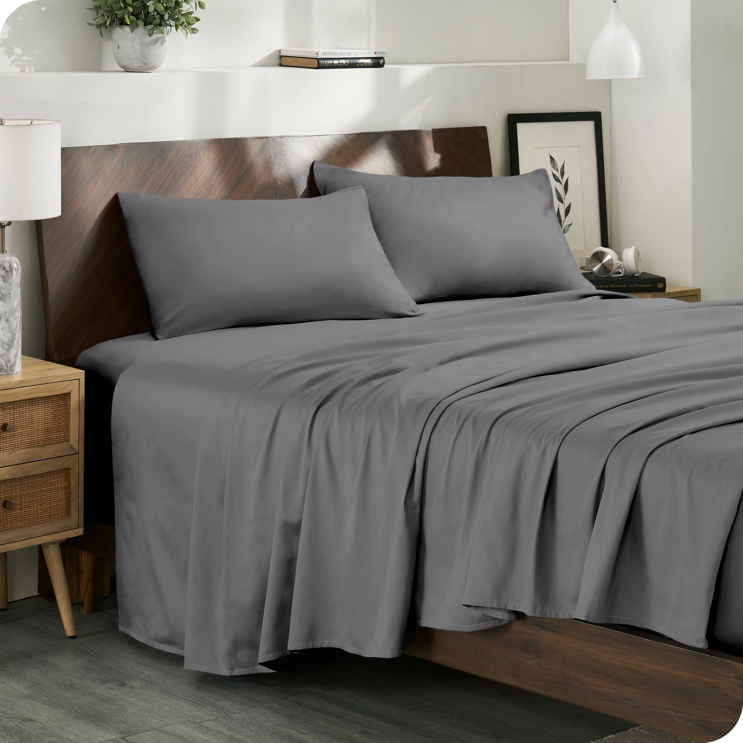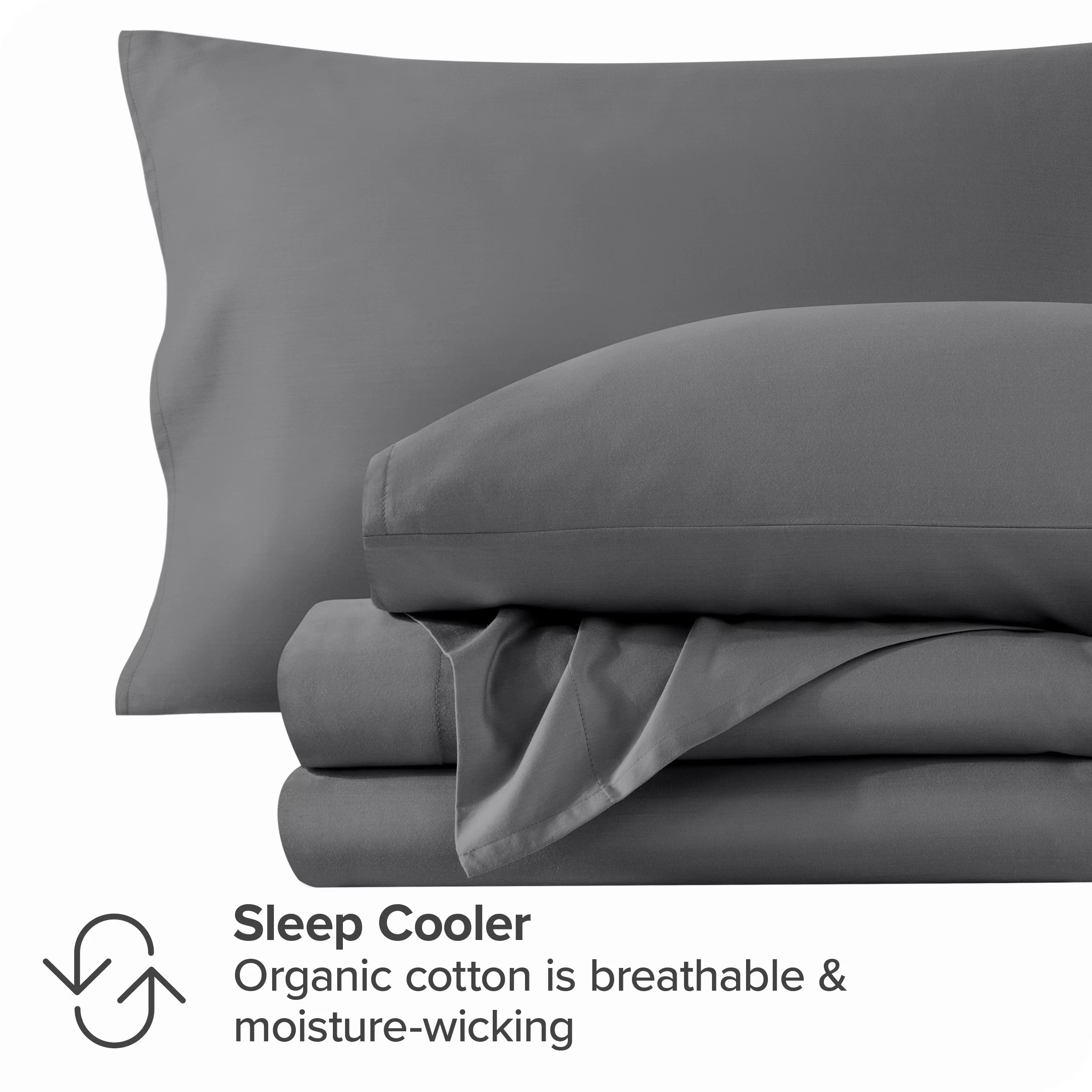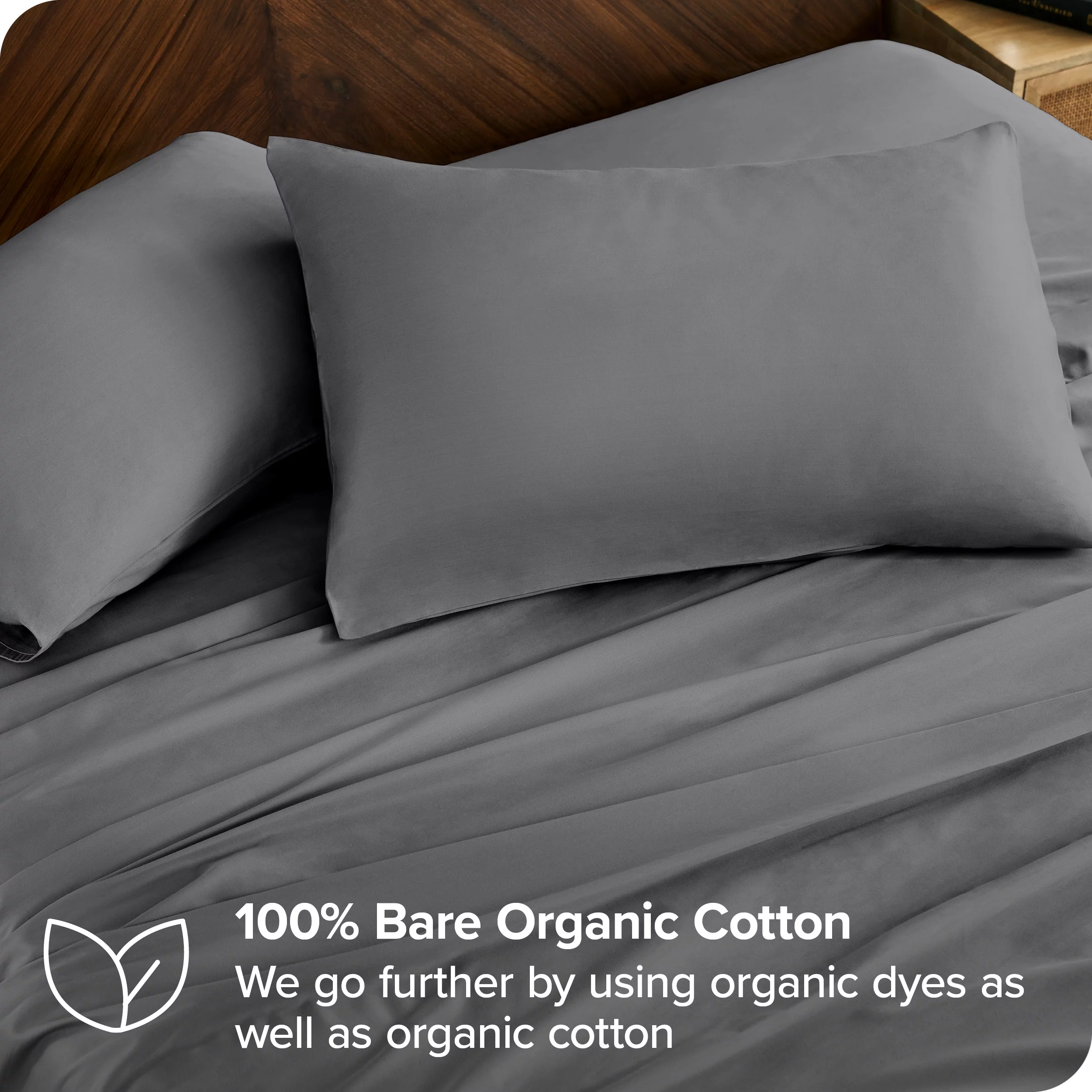 Bare Home Organic Sateen Sheet Set - 400 Thread Count - 100% Organic Cotton - 4 Piece - Queen, Gray