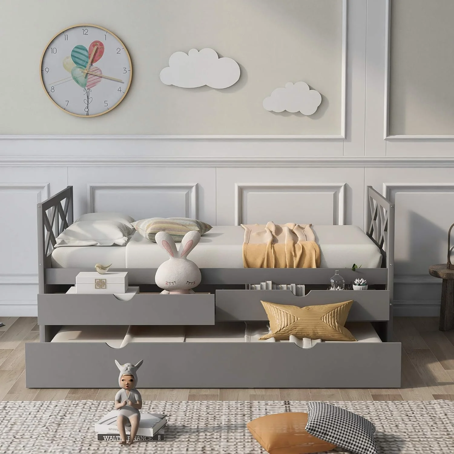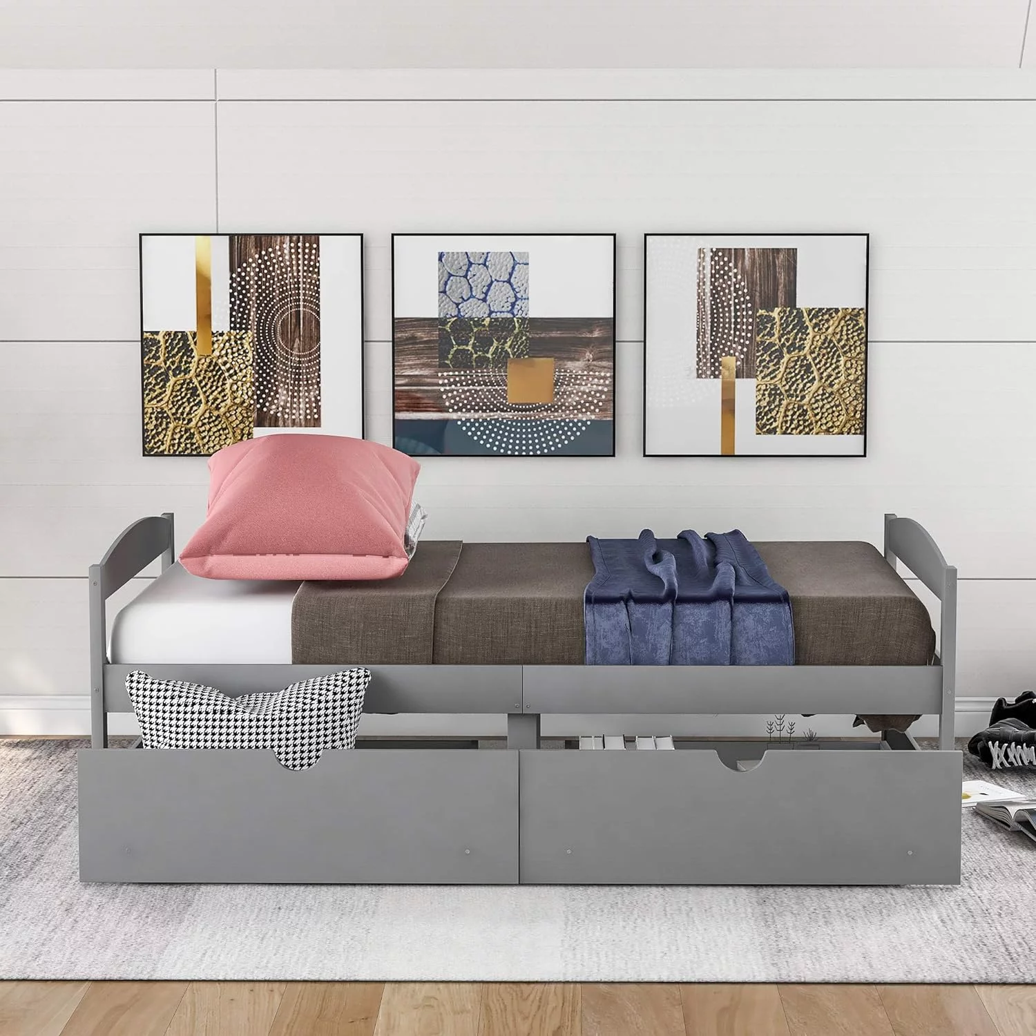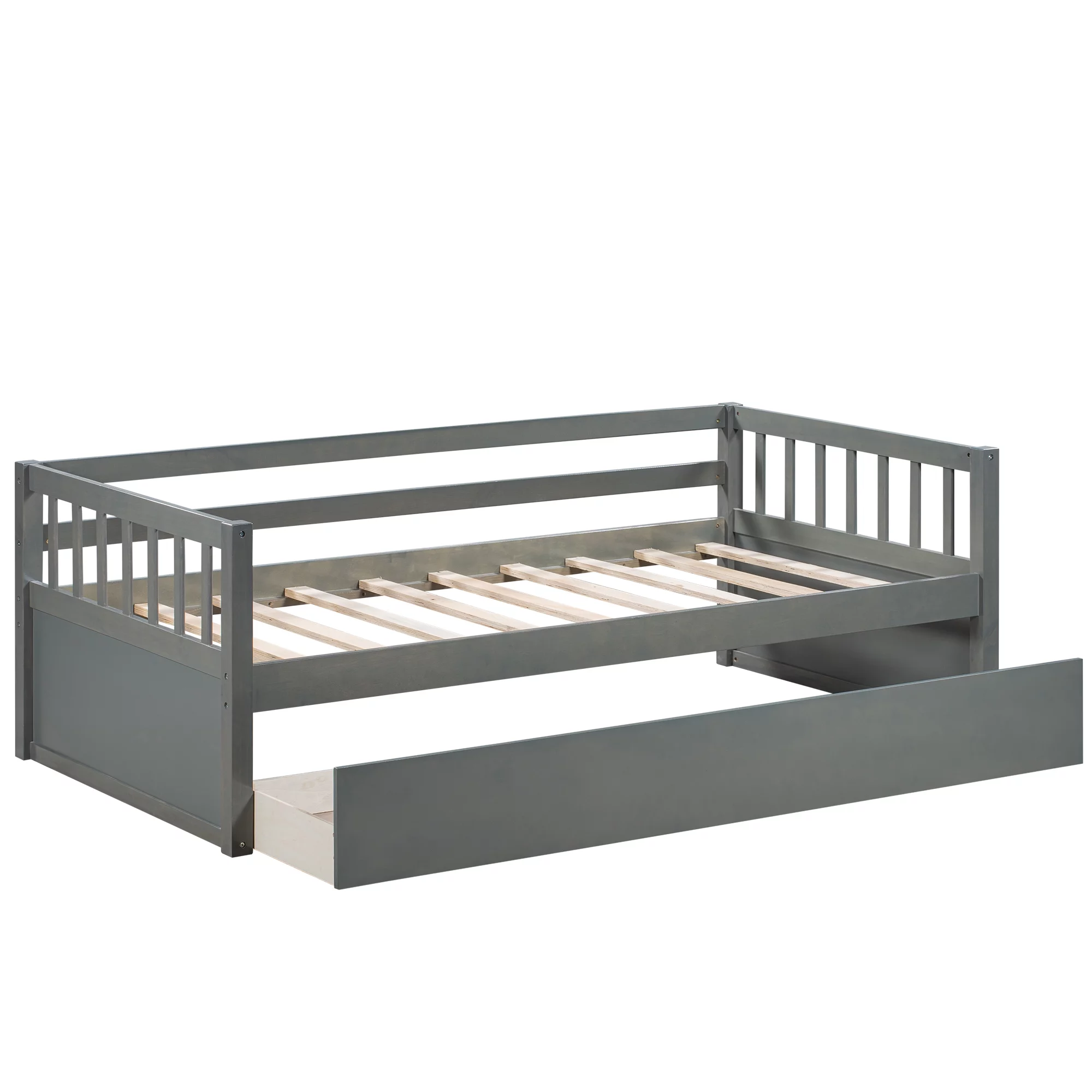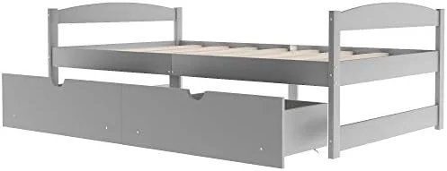 Daybed Frame With Drawer, Wood Daybed With Storage Drawers, Captain Sofa Bed For Kids(Grey)